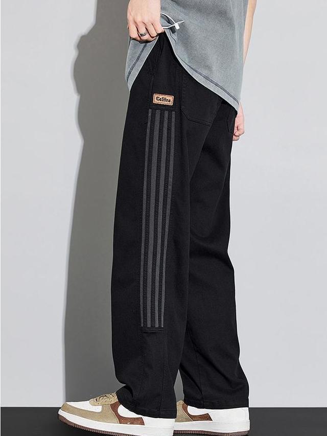 미국 줄무늬 스포츠 캐주얼 바지 남자 봄과 여름 새로운 얇은 유행 브랜드 느슨한 스트레이트 올 매치 바지