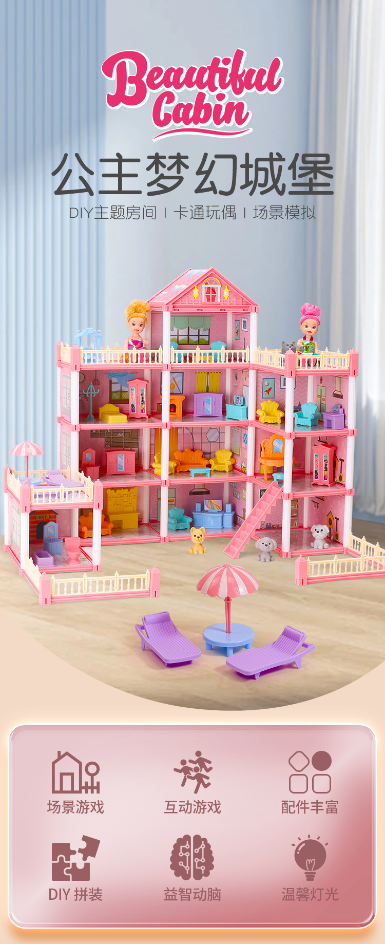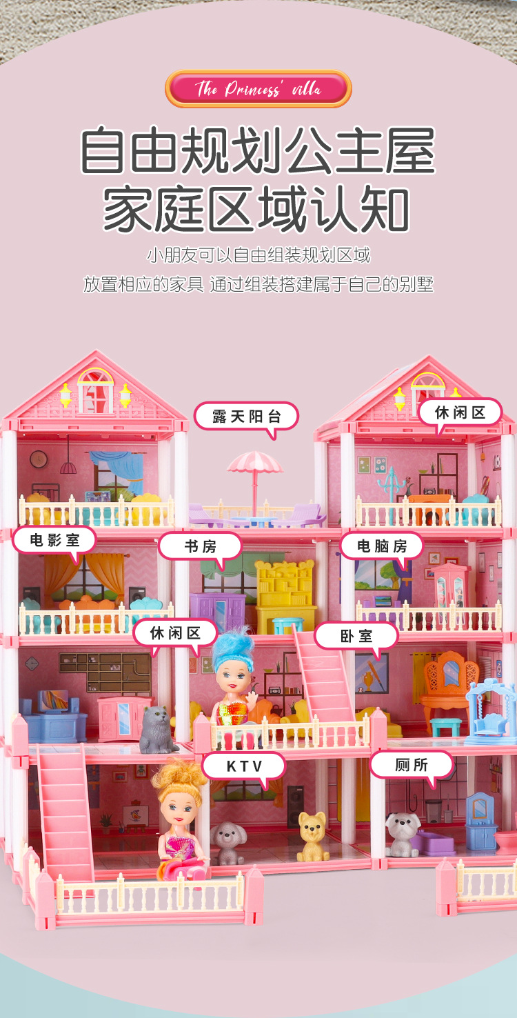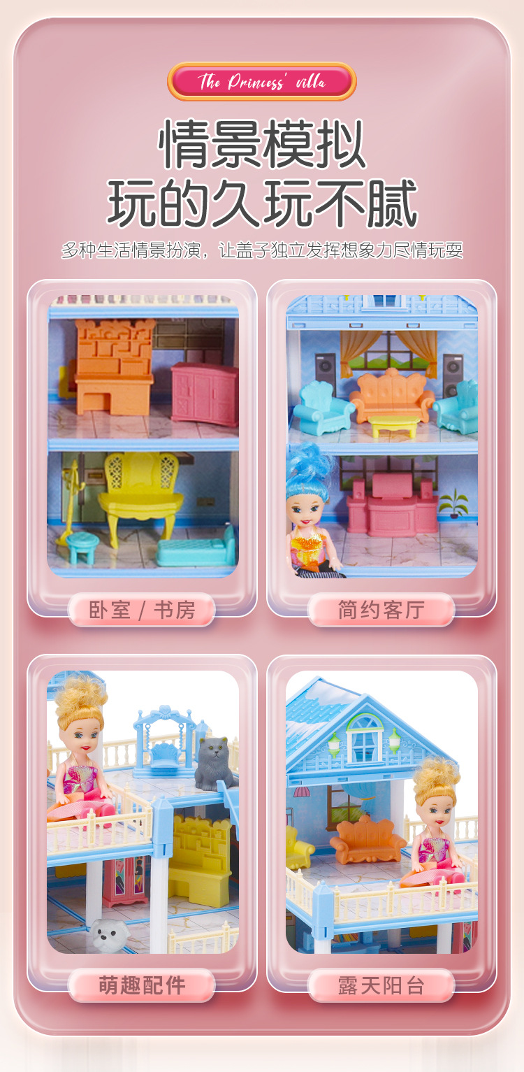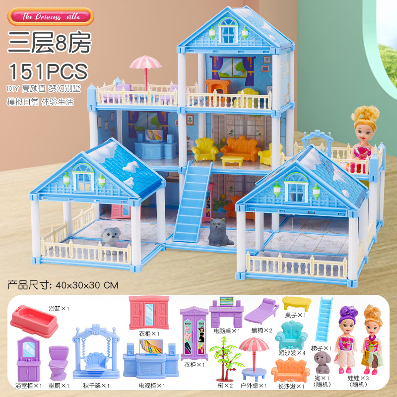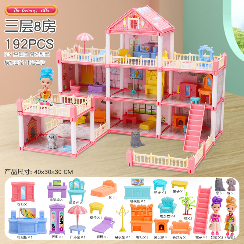 새로운 DIY 프린세스 하우스 소녀 플레이 하우스 장난감 인형 하우스 캐슬 빌라 소녀 조립 하우스 생일 선물스토어 가기