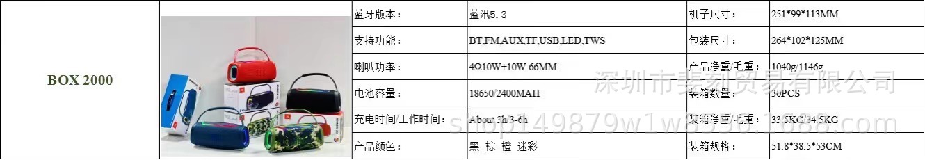 새로운 국경 BOOMBOX2000 블루투스 야외 오디오 휴대용 자동차 서브 우퍼 휴대용 20W 블루투스 스피커