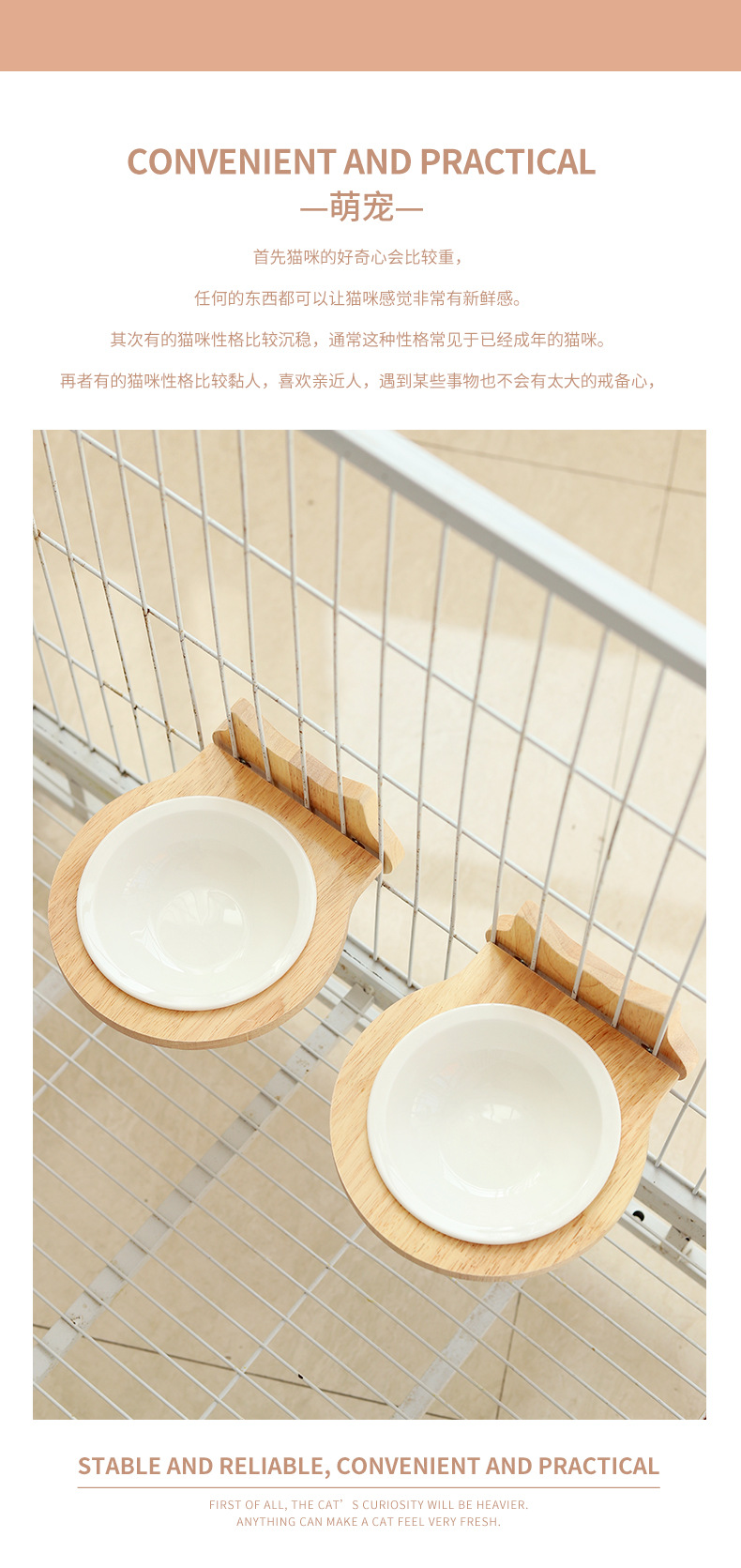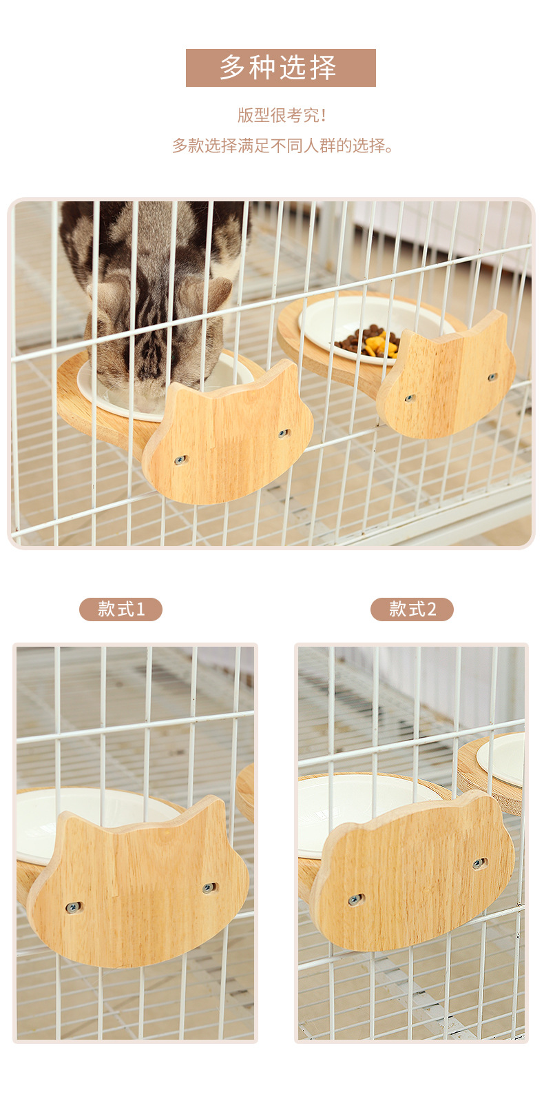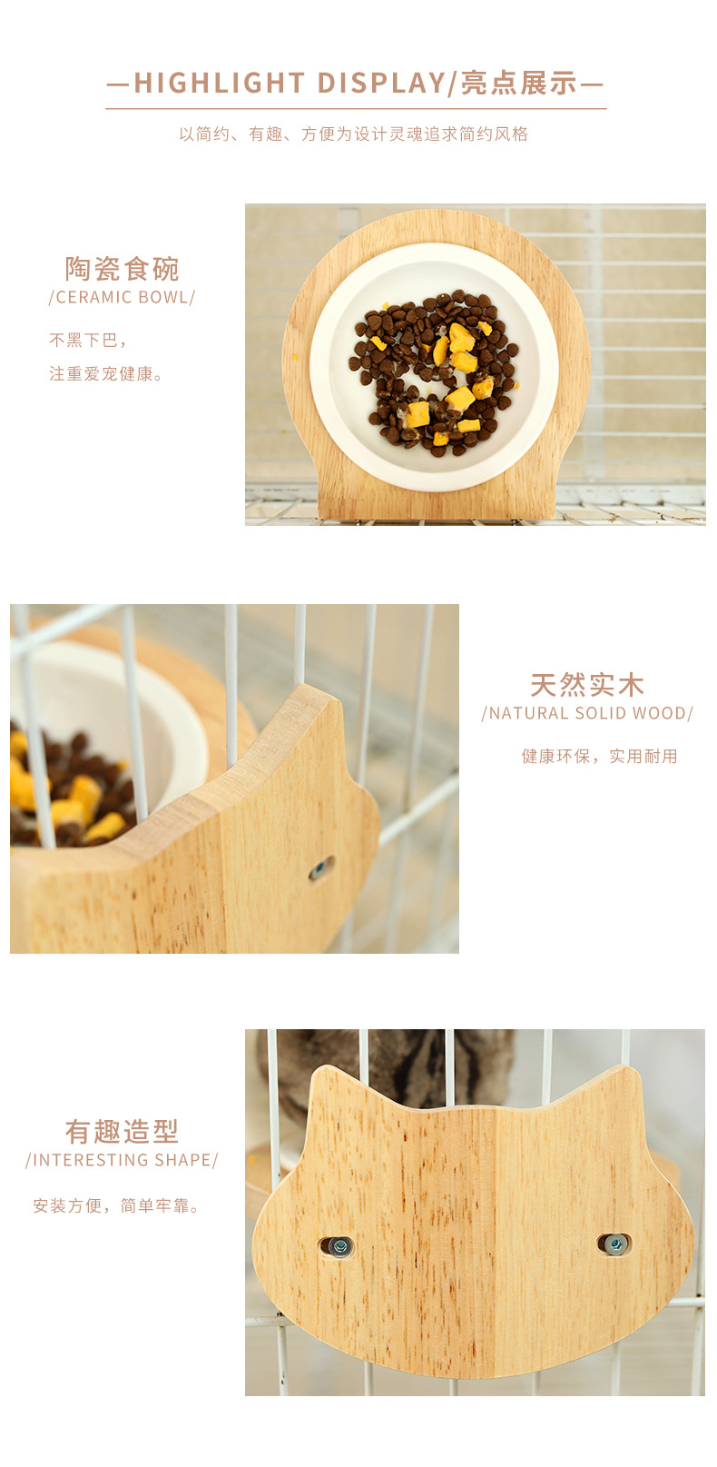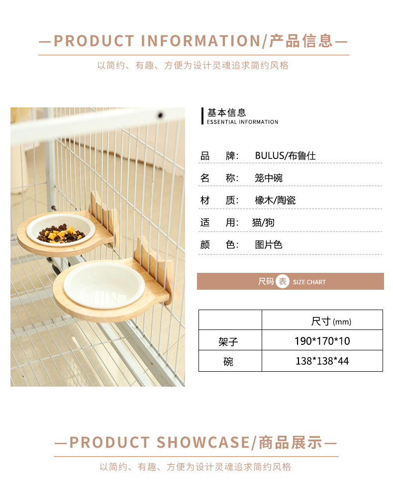 고양이 밥그릇 급식기 고양이 그릇 세라믹 고양이 및 강아지 식기 케이지 내 원목 프레임 넘어짐 방지 걸이식 그릇 애완동물 고양이용