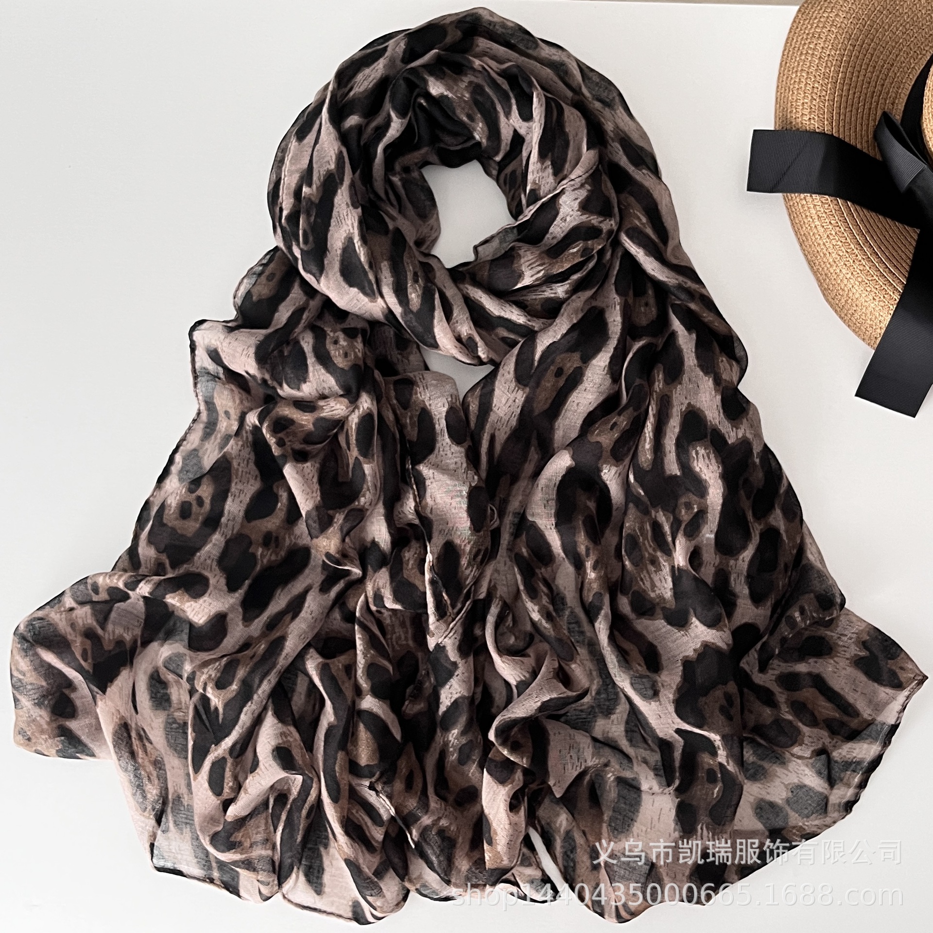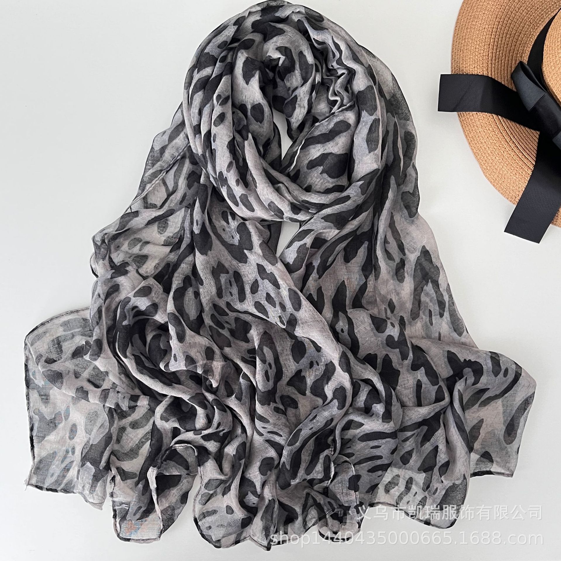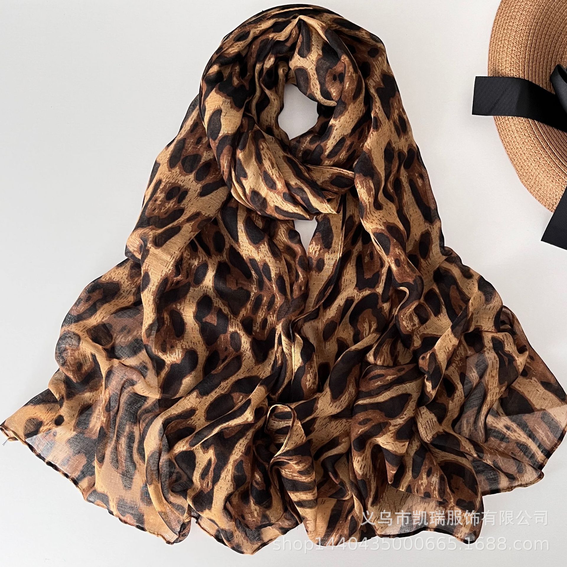 2024 가을 뜨거운 판매 레오파드 무늬 얇은 긴 스카프 스카프 긴 발리 원사 대외 무역 모든 경기 여자 스카프