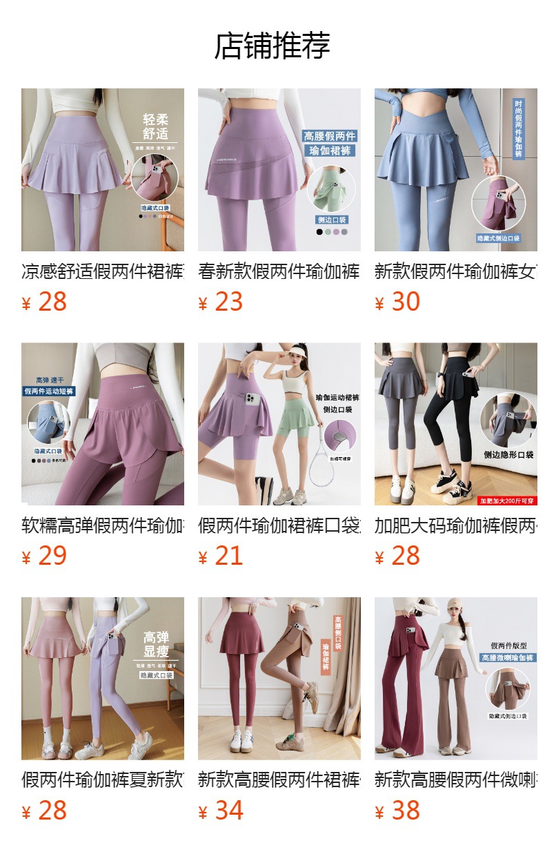 새로운 스타일의 투피스 스커트 팬츠, 포켓이 있는 나인포인트 샤크 팬츠, 외출용 요가 팬츠, 여성용 빅사이즈 레깅스, 동남아시아 해외 직구스토어 가기