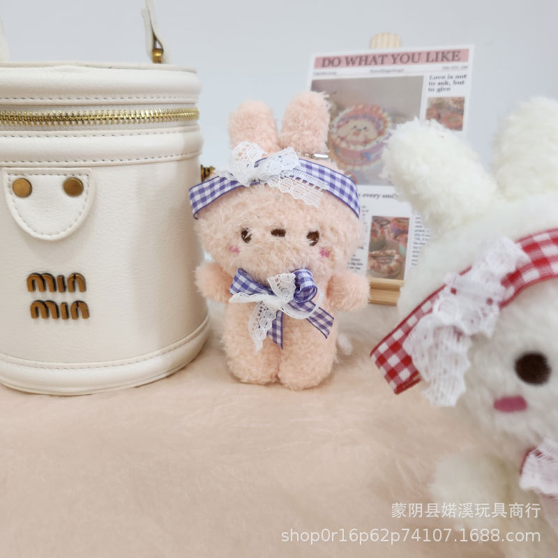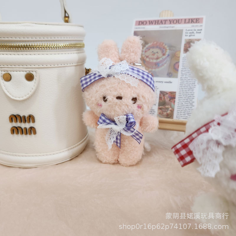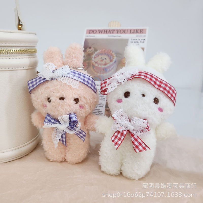 도매 만화 귀여운 나비 넥타이 토끼 인형 어린이 장난감 봉제 펜던트 배낭 키 체인 토끼 인형스토어 가기