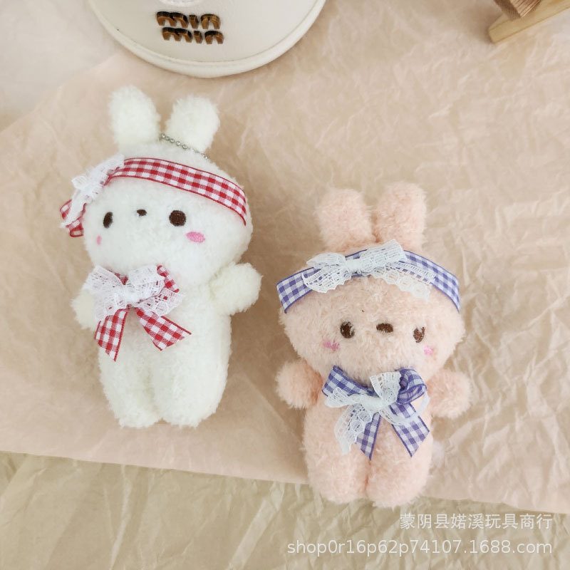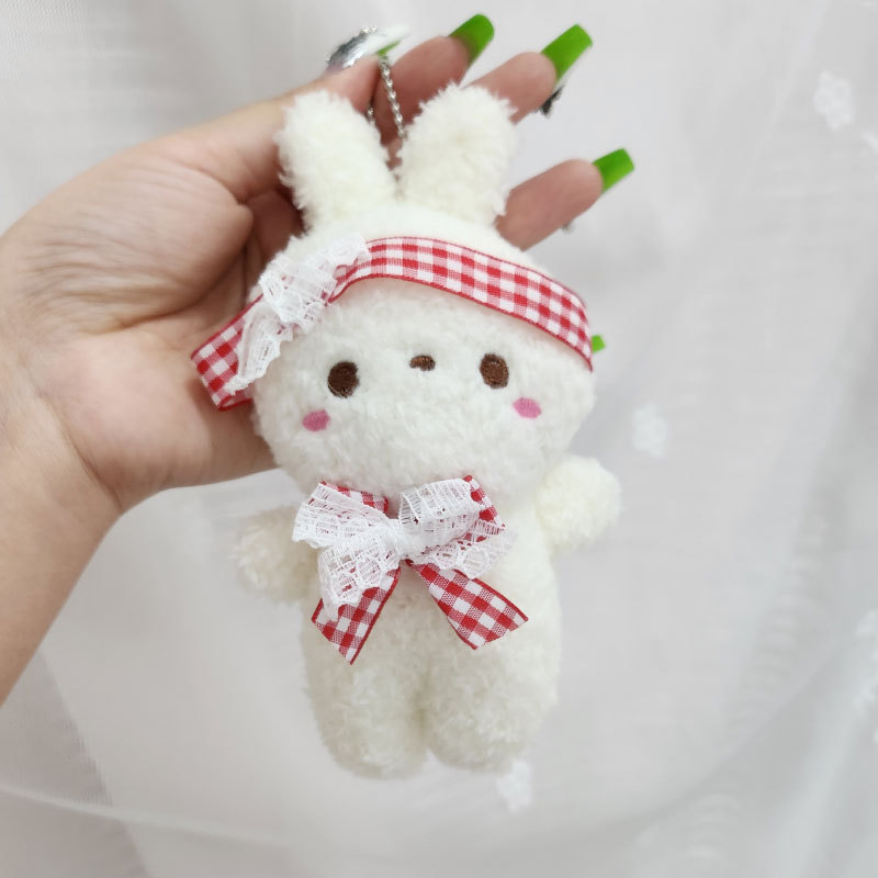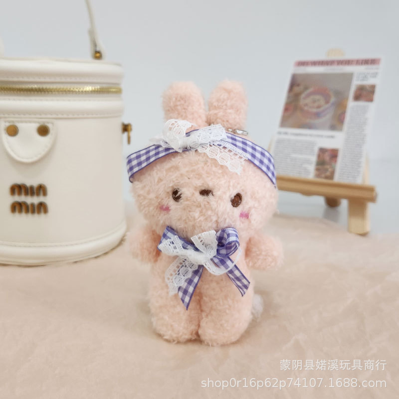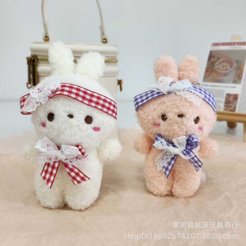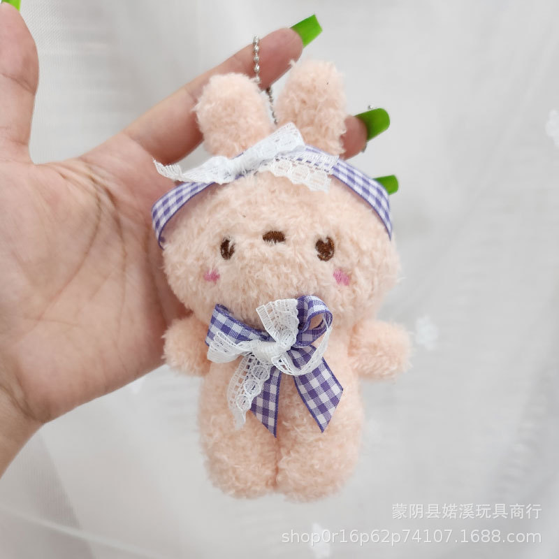 도매 만화 귀여운 나비 넥타이 토끼 인형 어린이 장난감 봉제 펜던트 배낭 키 체인 토끼 인형