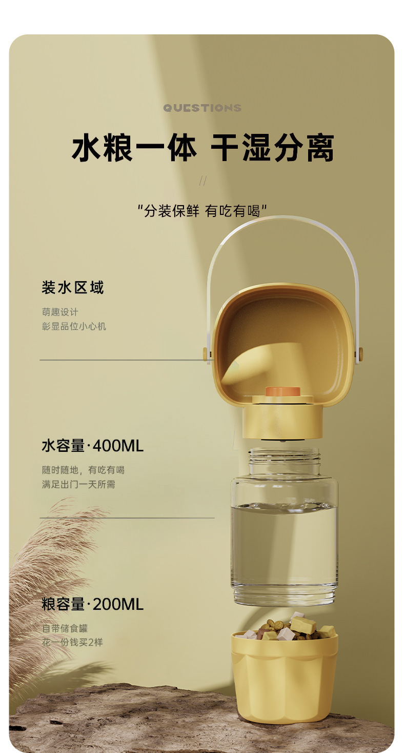 휴대용 야외 개 스포츠 주전자 애완 동물 동반 컵 물 음식 하위 포장 이중 사용 개 물 컵 고양이 마시는 그릇