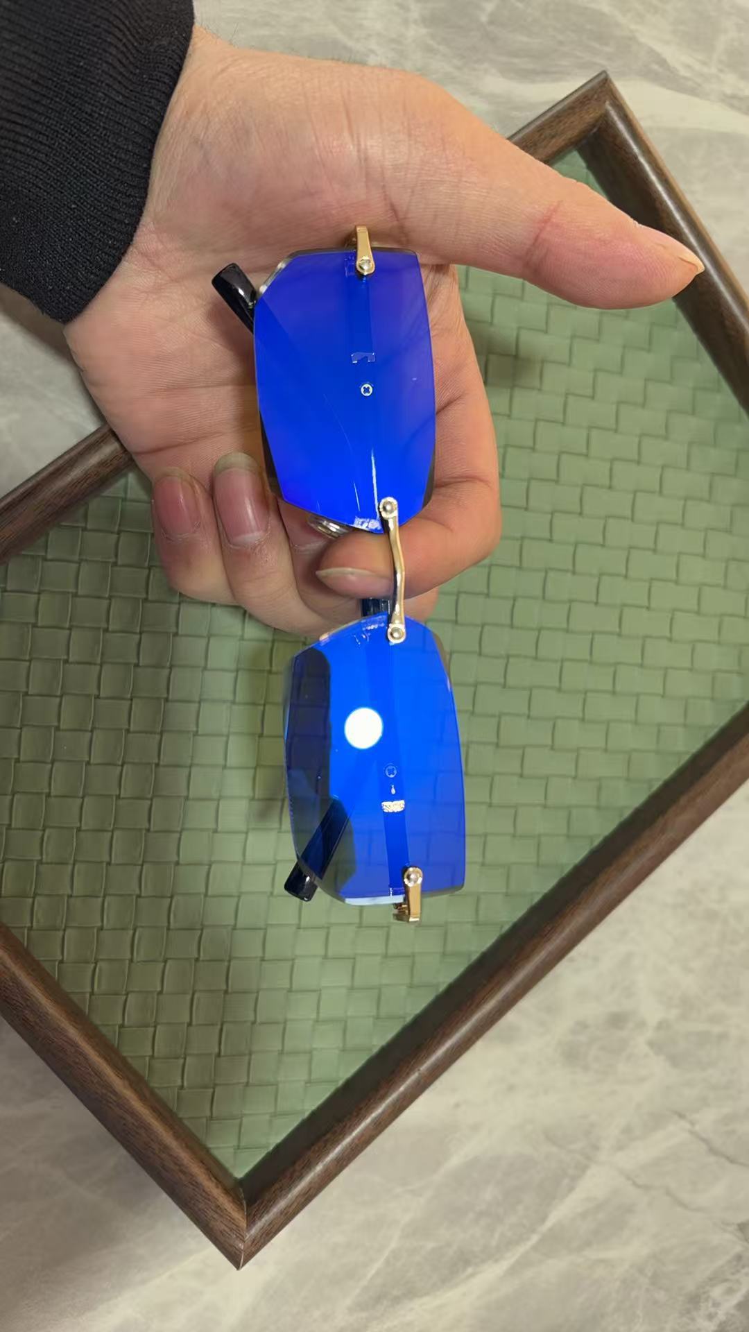 새로운 프레임리스 패션 선글라스 유럽과 미국의 금속 트림 선글라스 성격 젤리 컬러 선글라스 제조 업체 도매스토어 가기