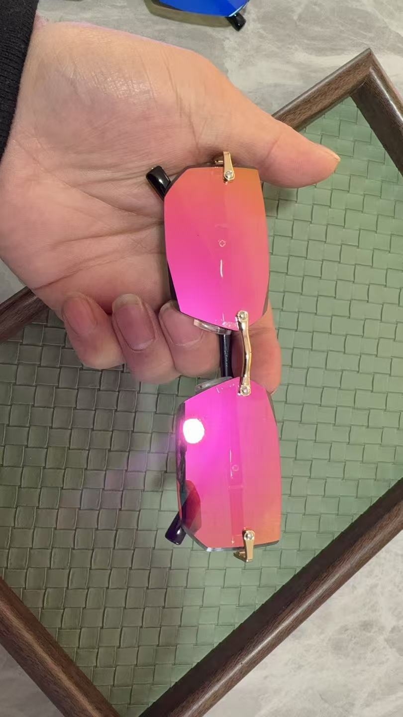 새로운 프레임리스 패션 선글라스 유럽과 미국의 금속 트림 선글라스 성격 젤리 컬러 선글라스 제조 업체 도매