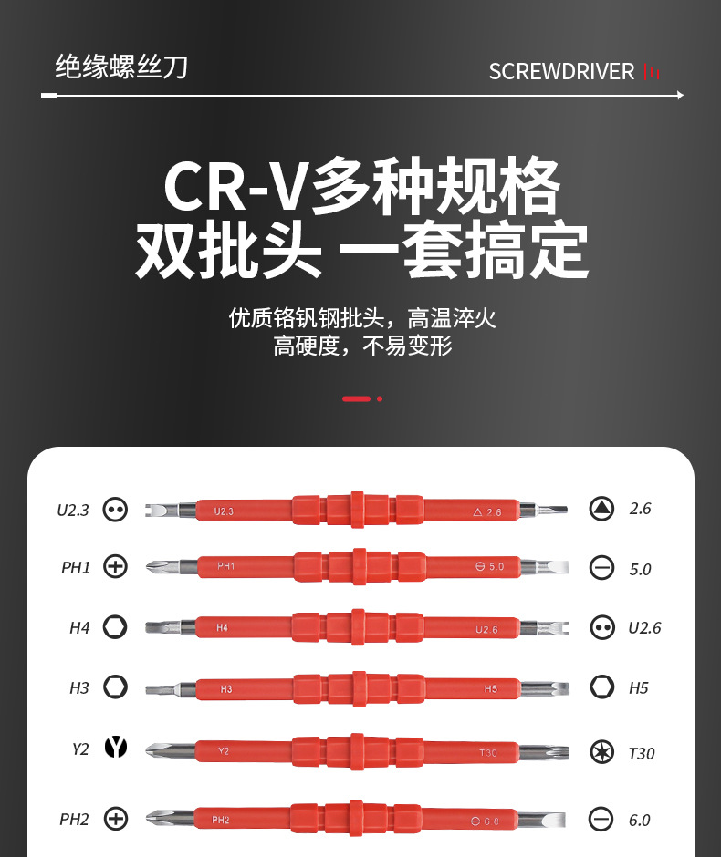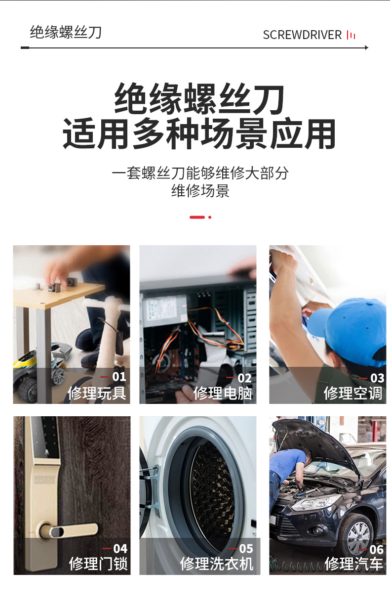 절연 스크루 드라이버 세트 높은 경도 CR-V 자기 헤드 가정용 스크루 드라이버 조합 고전압 전기 도구스토어 가기