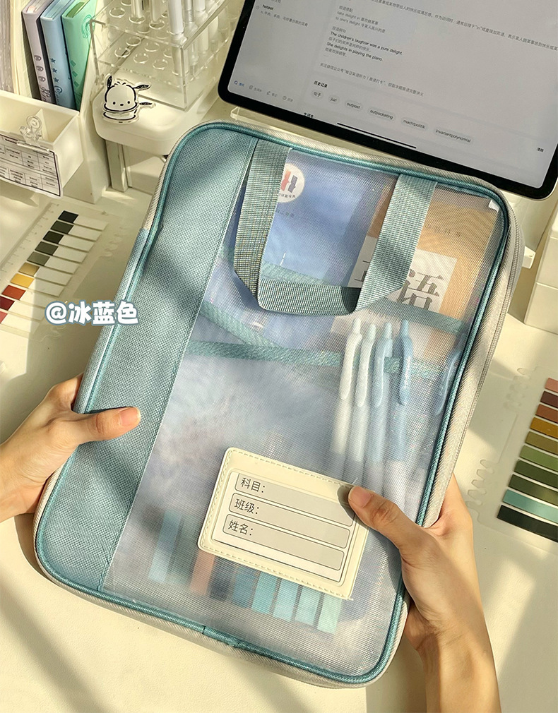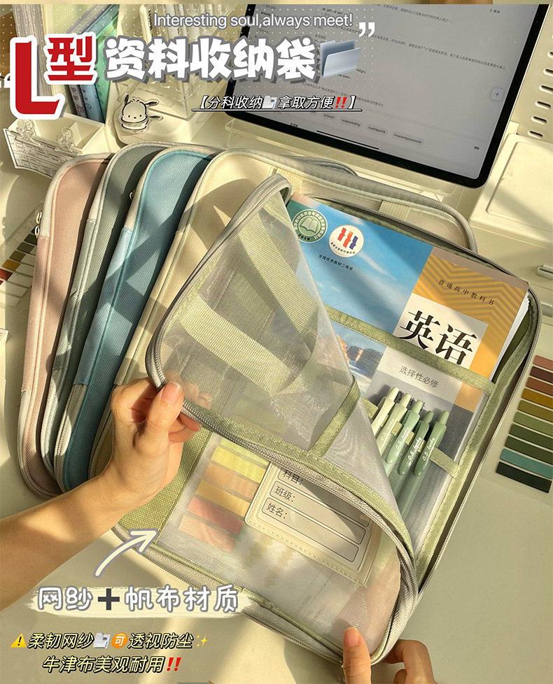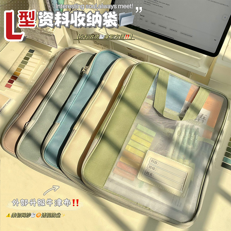 L 자형 데이터 저장 가방 업그레이드 A4 계층 두꺼운 메쉬 파일 가방 업그레이드 옥스포드 천 방수 소재스토어 가기