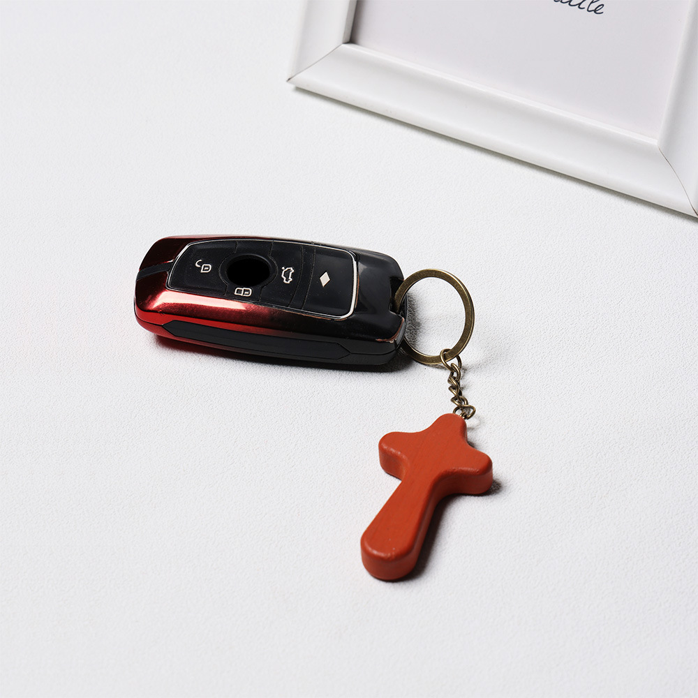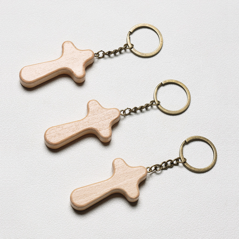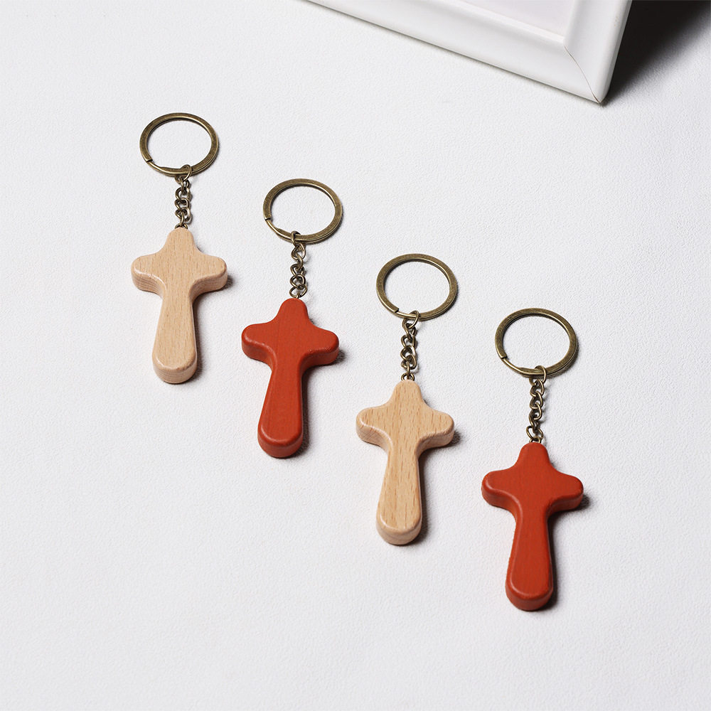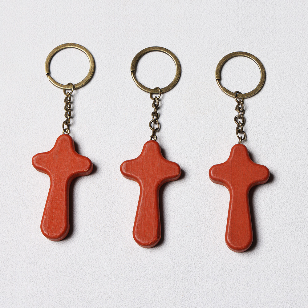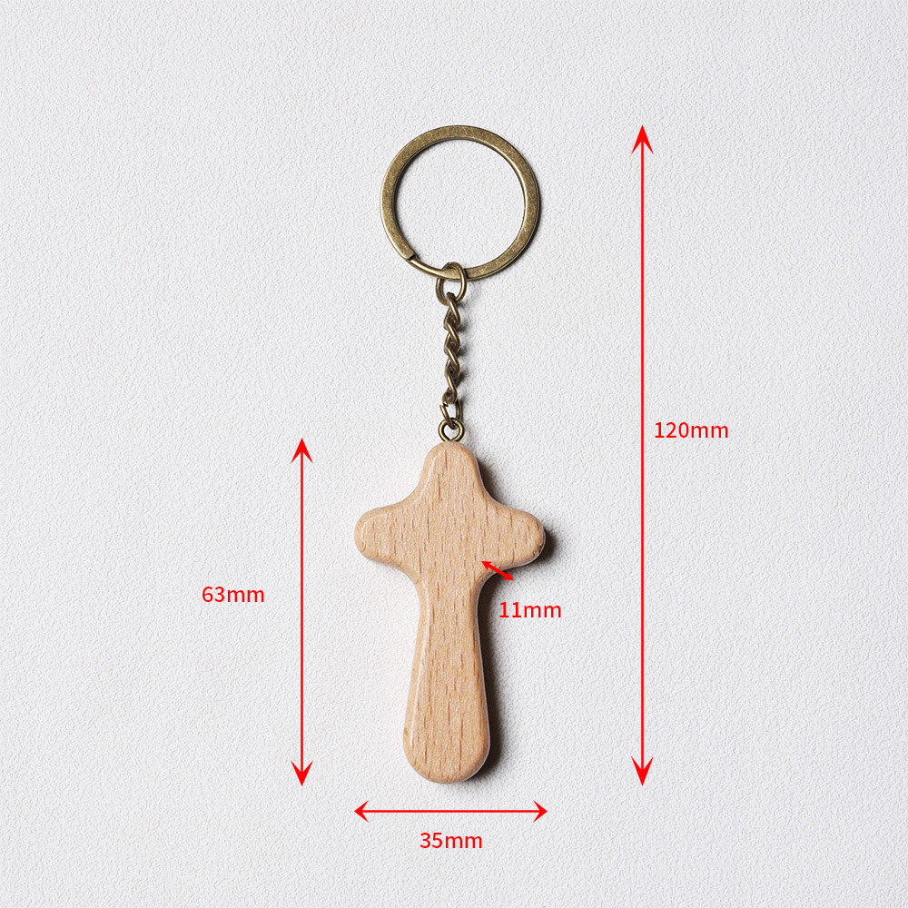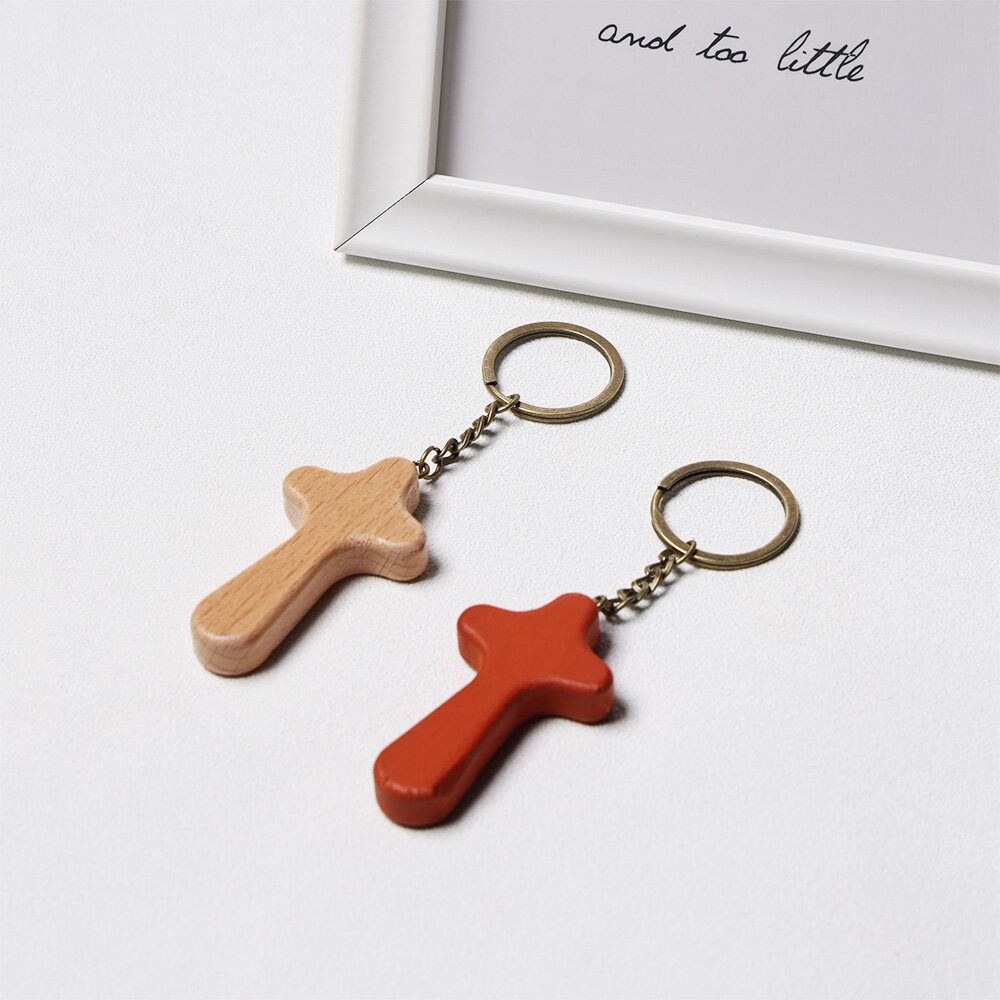 나무 십자가 손으로 만든 나무 교수형 나무 공예 소나무 손 크로스 키 체인