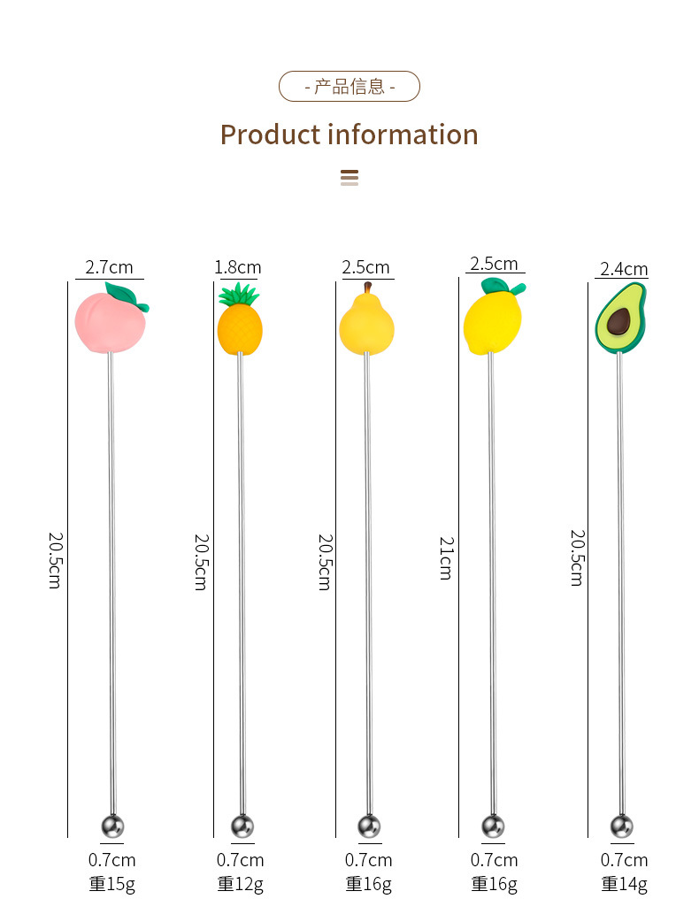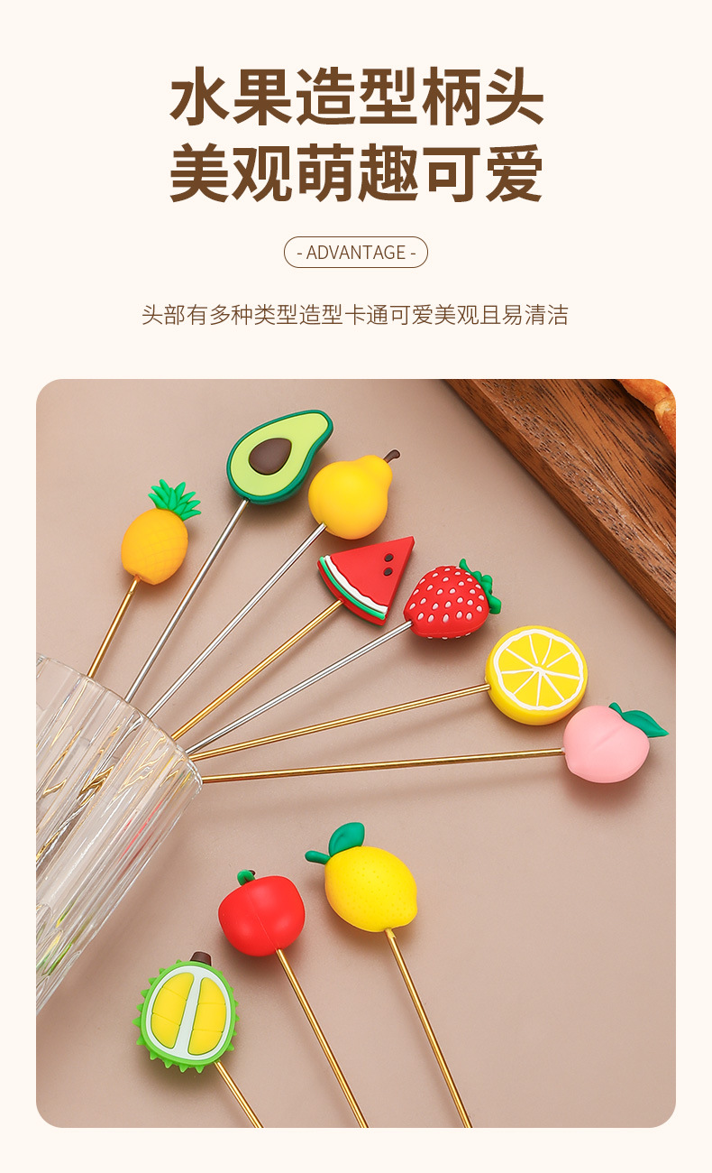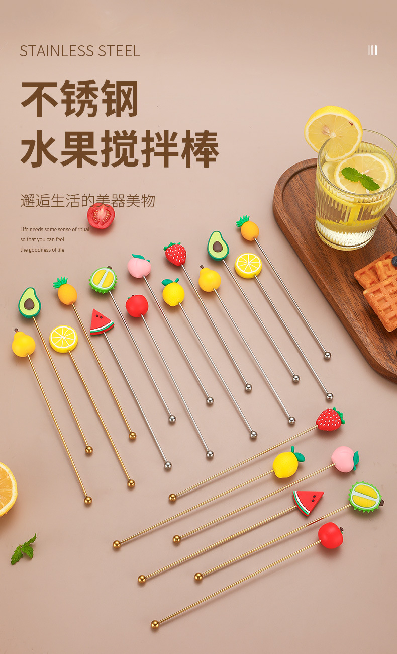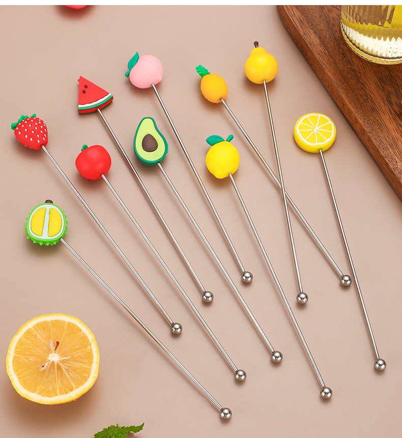 재고 304 스테인레스 스틸 믹서 바 창조적 인 실리콘 과일 커피 혼합 스푼 칵테일 바 혼합 바