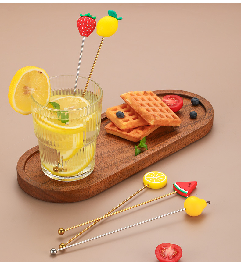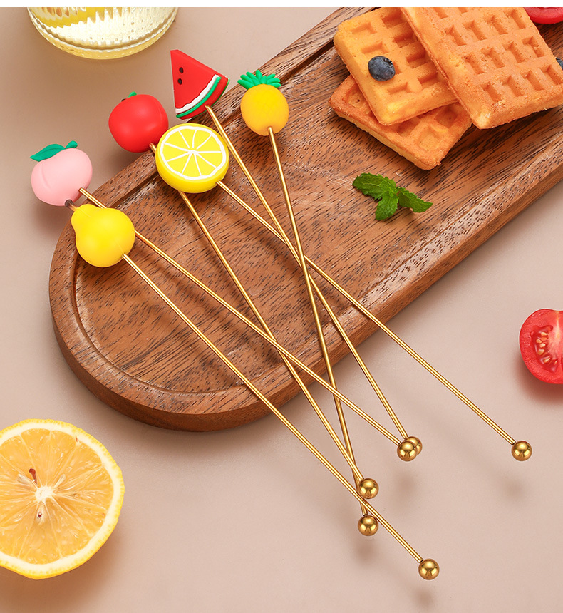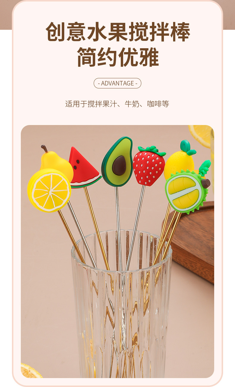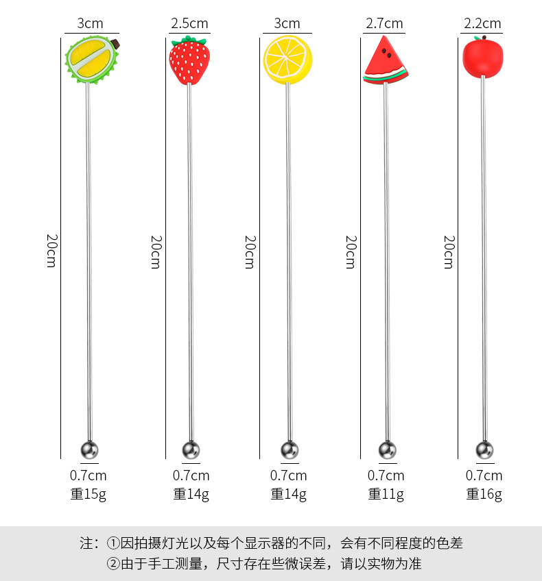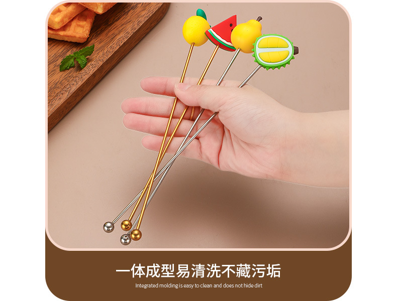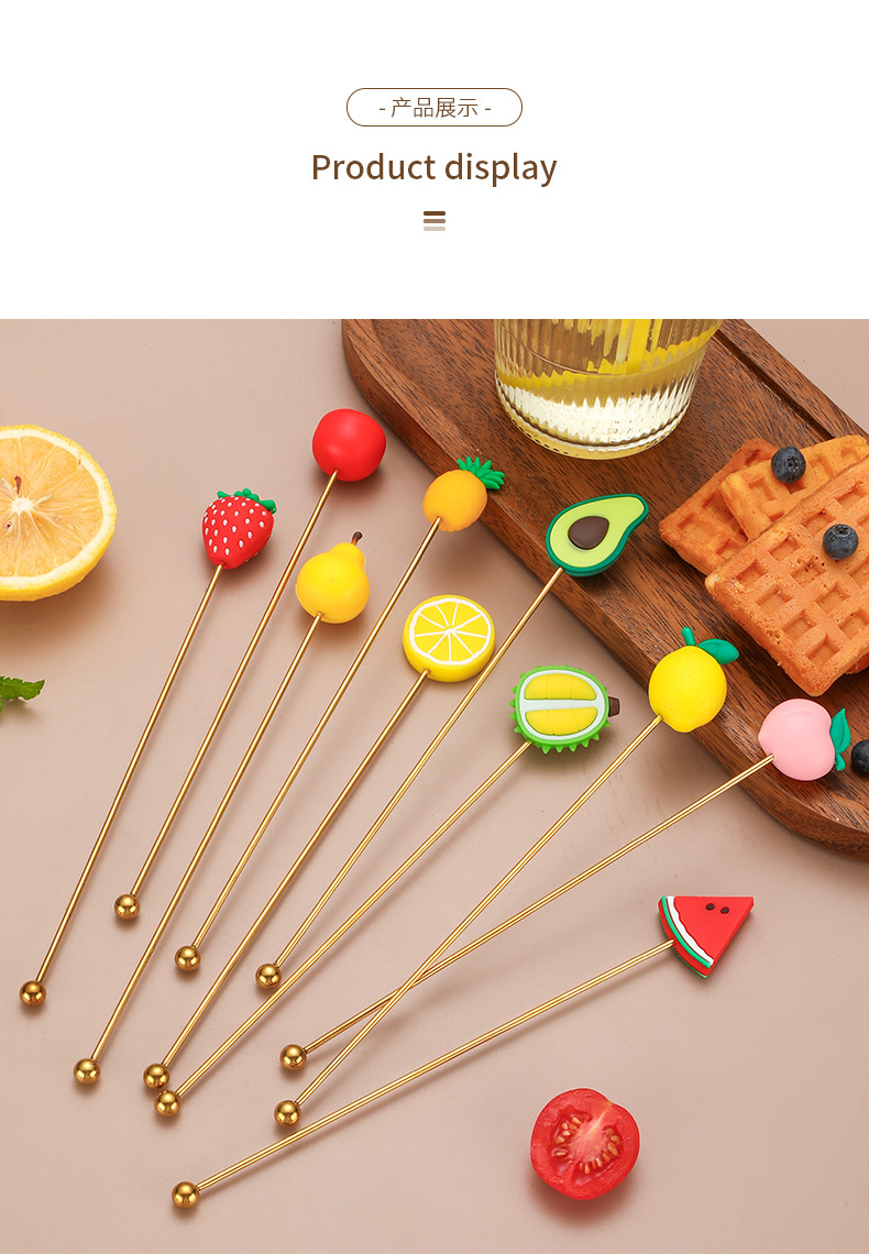 재고 304 스테인레스 스틸 믹서 바 창조적 인 실리콘 과일 커피 혼합 스푼 칵테일 바 혼합 바