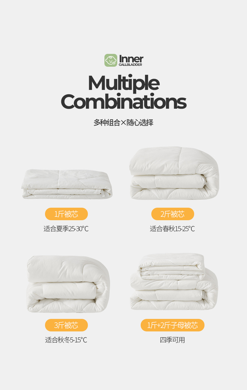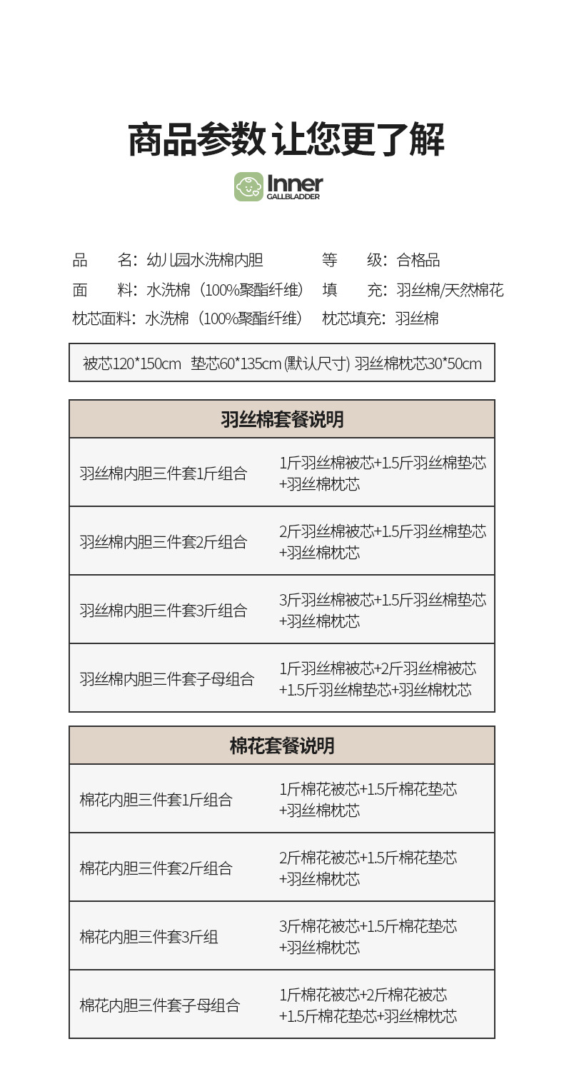 • 깃털 실크 면 이너 3종 세트 [이불심 0.5kg 개 + 이불심 1.0kg 개 + 쿠션심 0.75kg 개 + 깃털 실크 면 베개심 ]