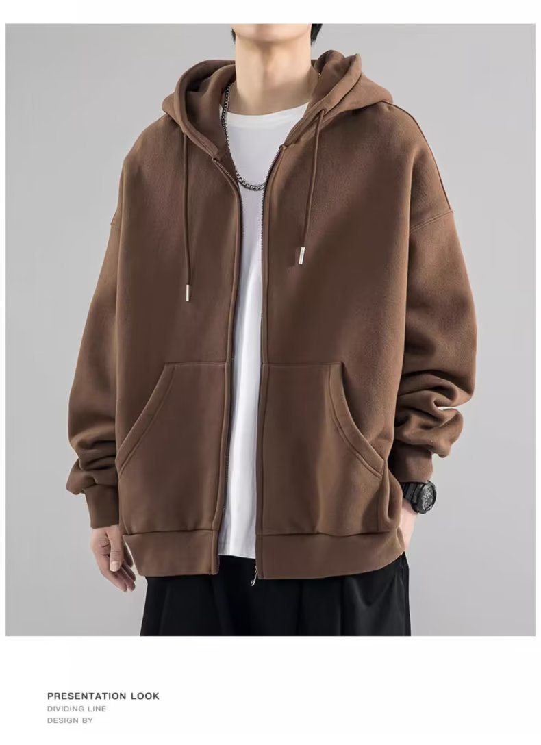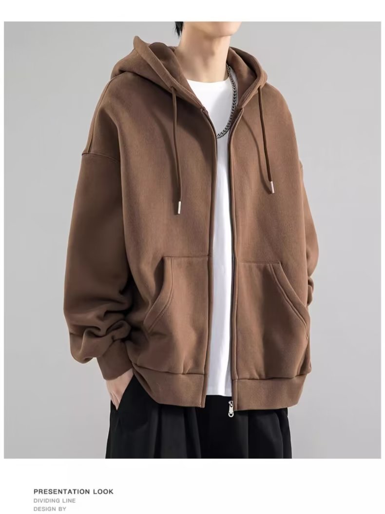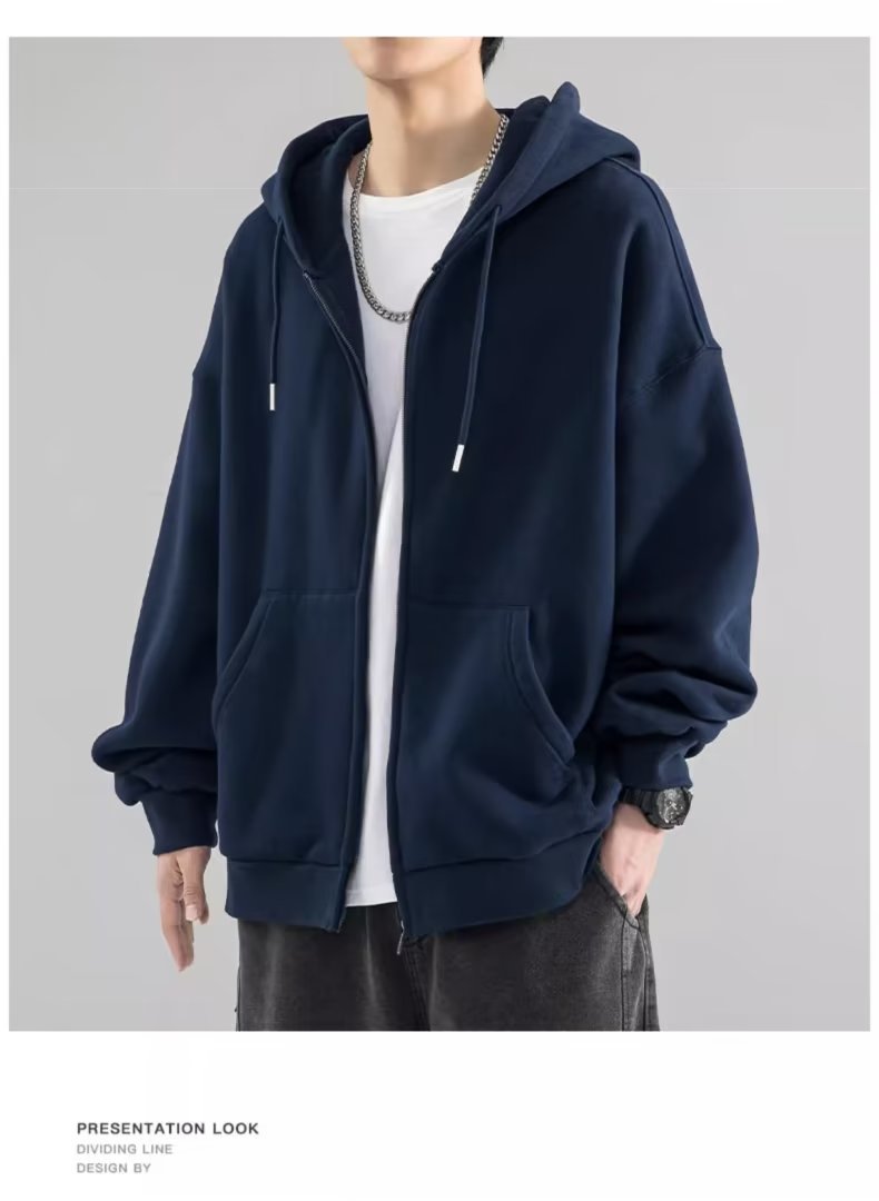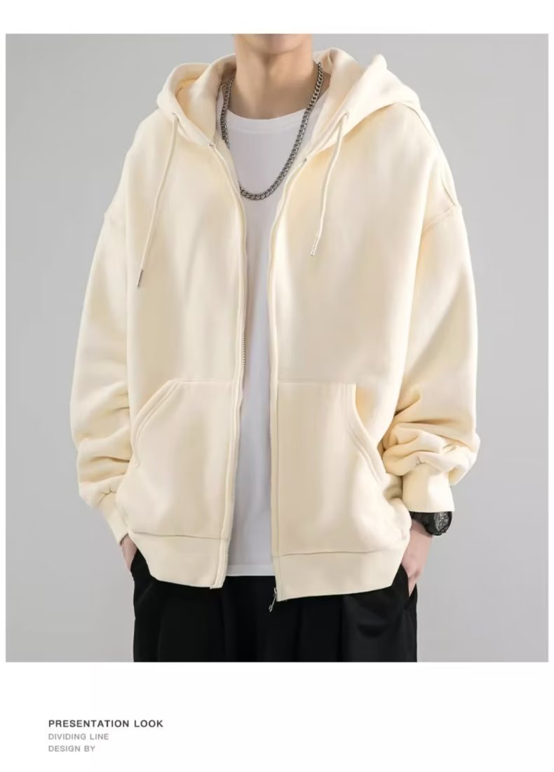 2024 봄과 가을 느슨한 올 매치 플러스 사이즈 단색 카디건 후드 지퍼 스웨터 남성 코트 가을과 겨울스토어 가기