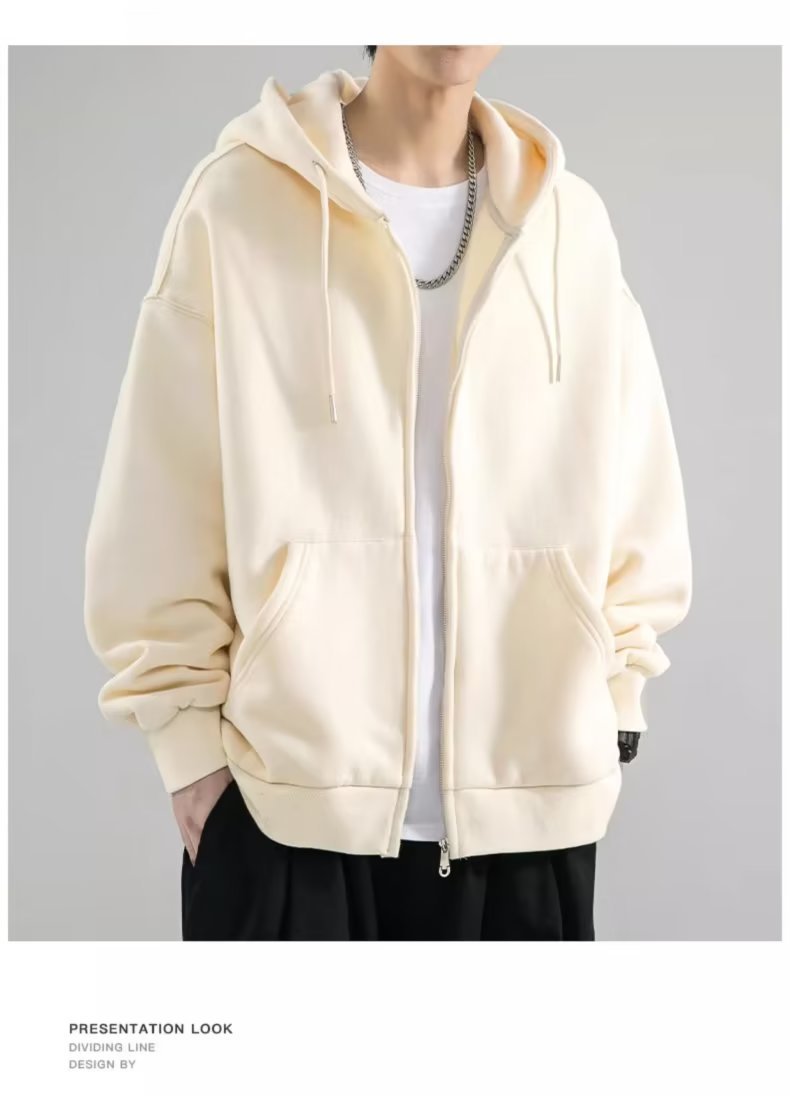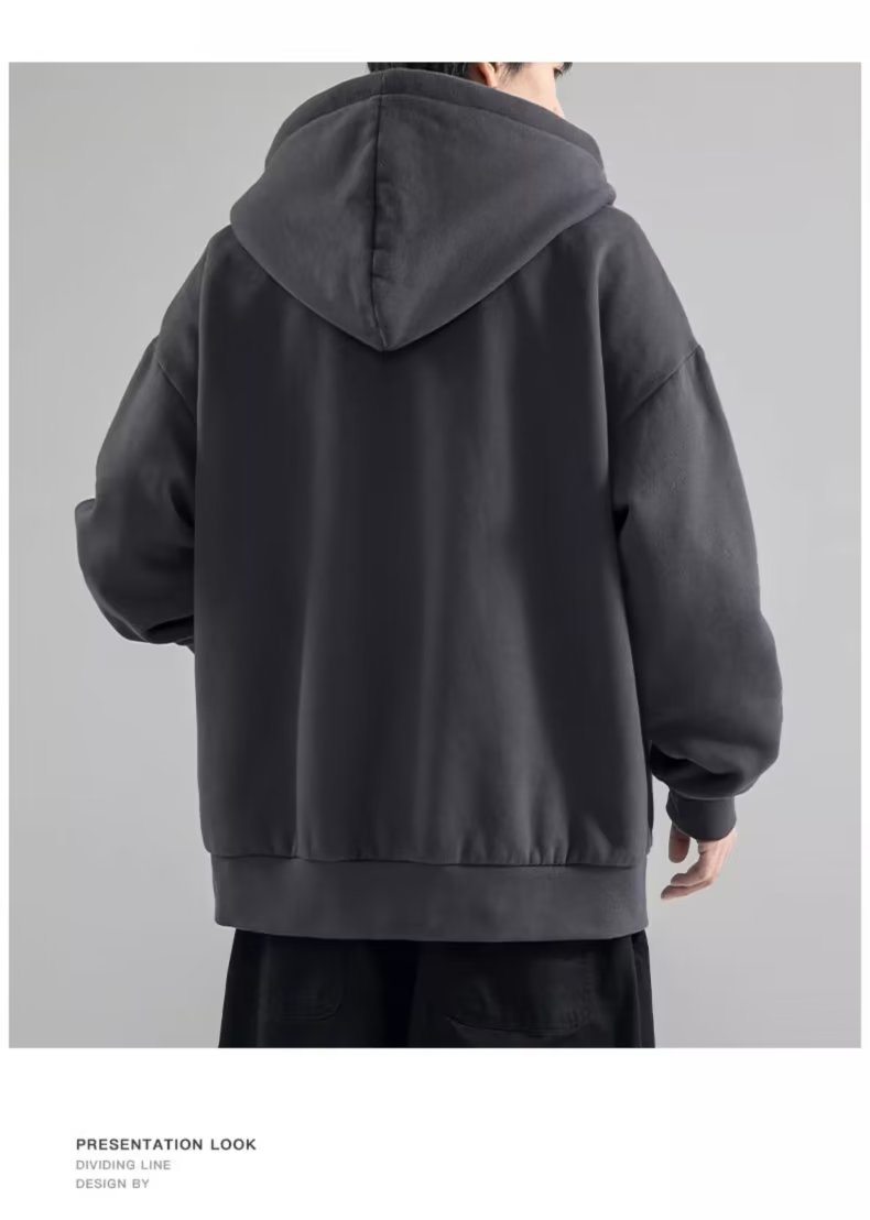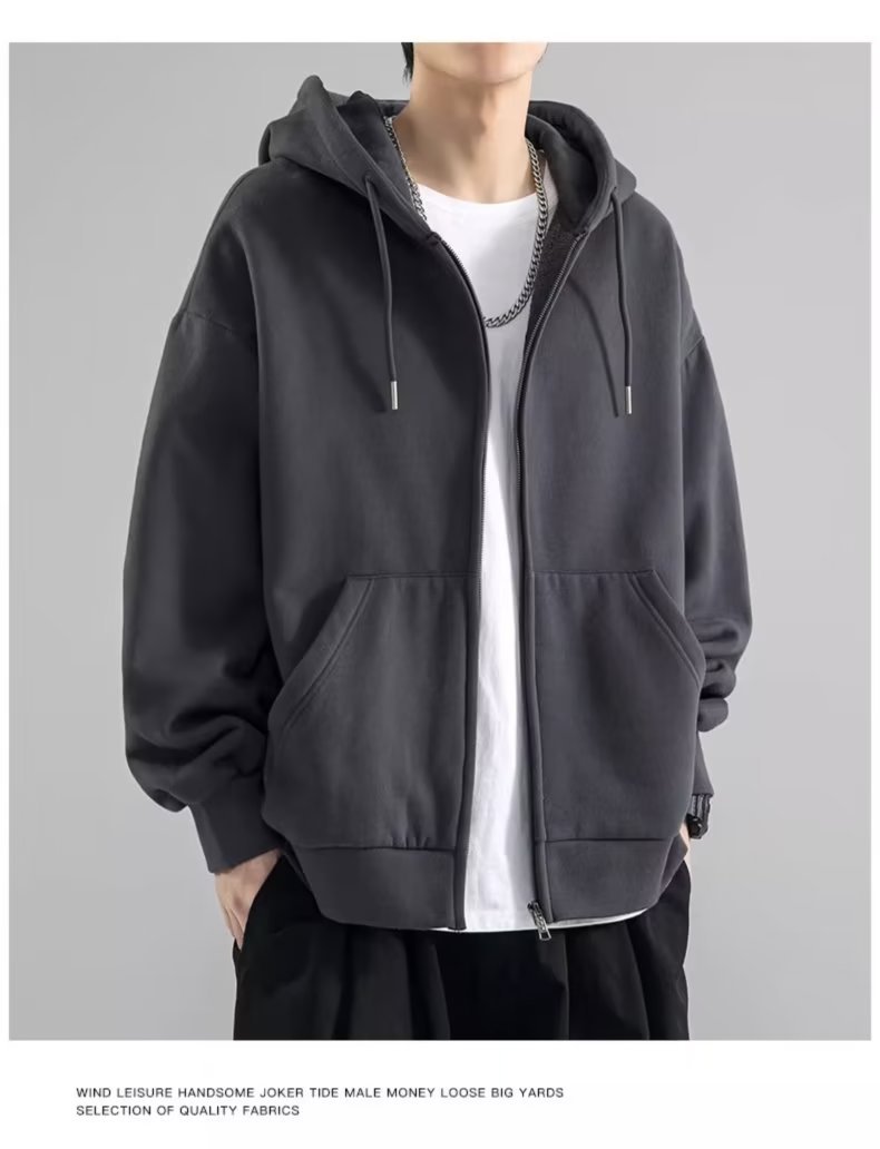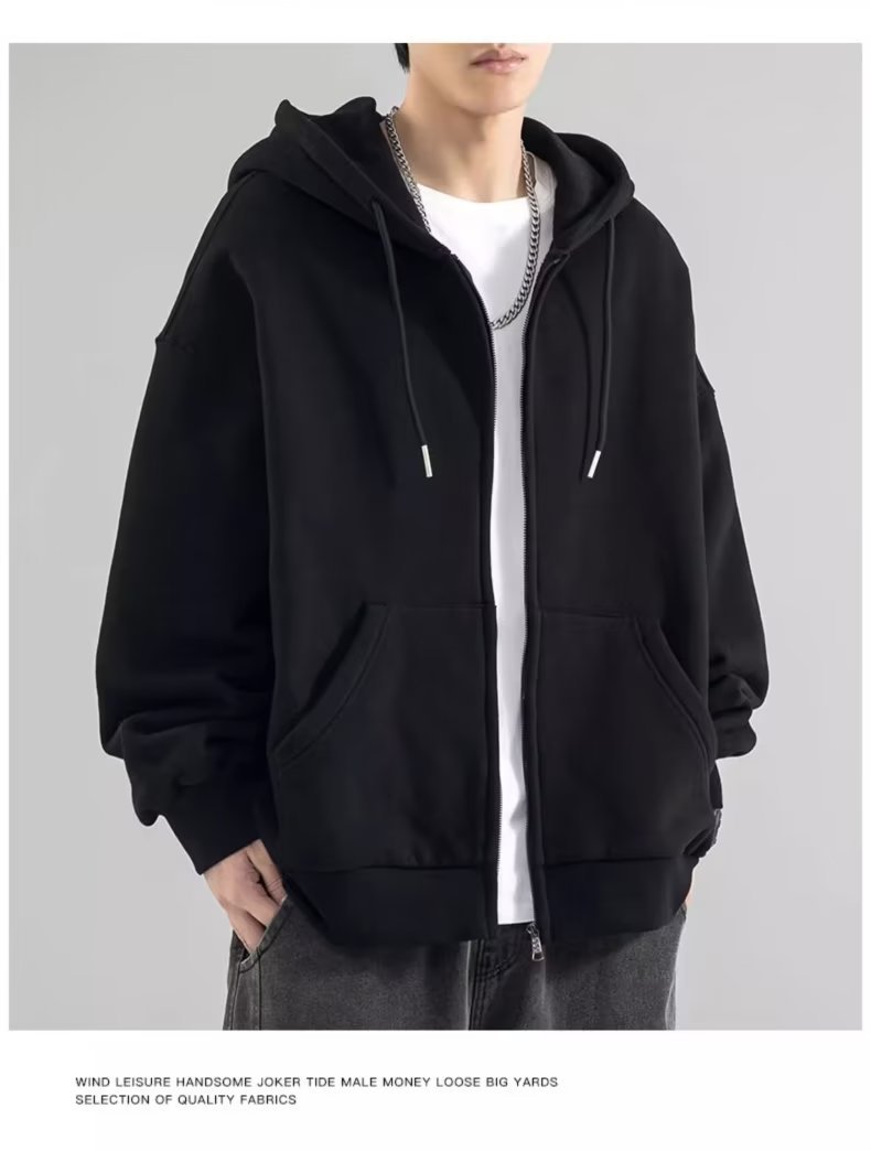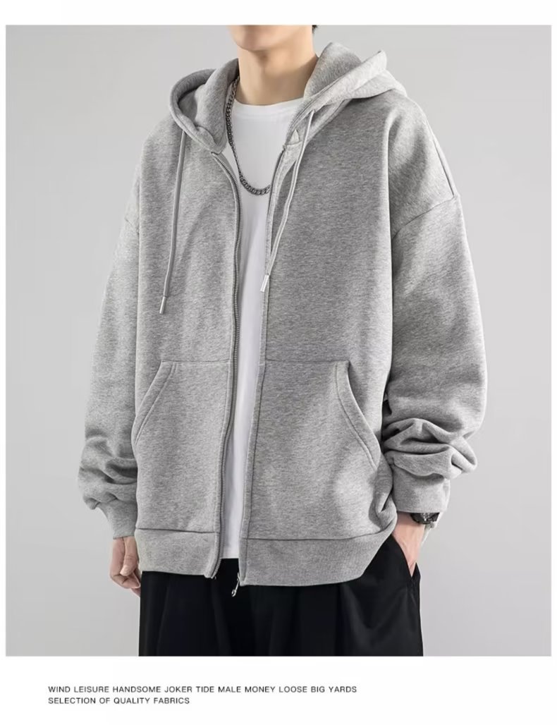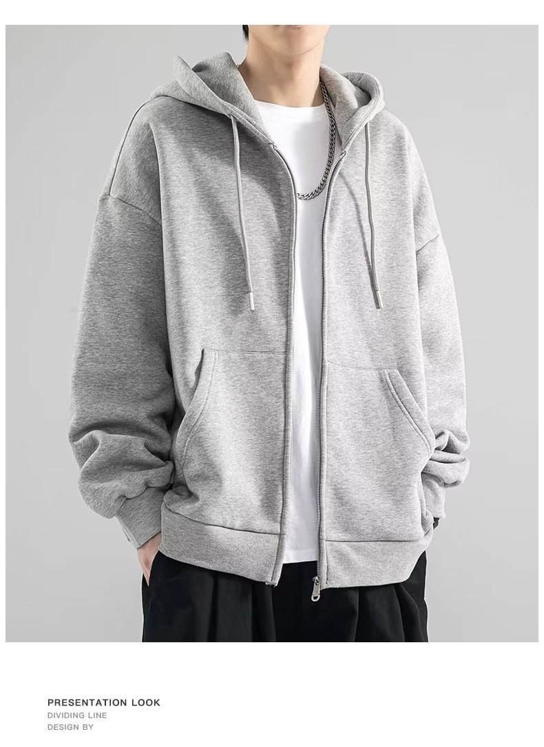 2024 봄과 가을 느슨한 올 매치 플러스 사이즈 단색 카디건 후드 지퍼 스웨터 남성 코트 가을과 겨울