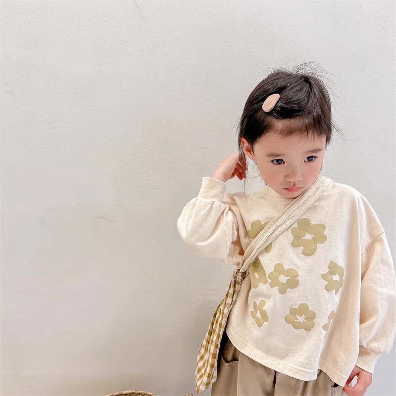 소녀 가을 긴팔 티셔츠 2024 어린이 의류 신식 어린이 스웨터 한국식 퓨어 코튼 베이스 셔츠 베이비 탑스토어 가기