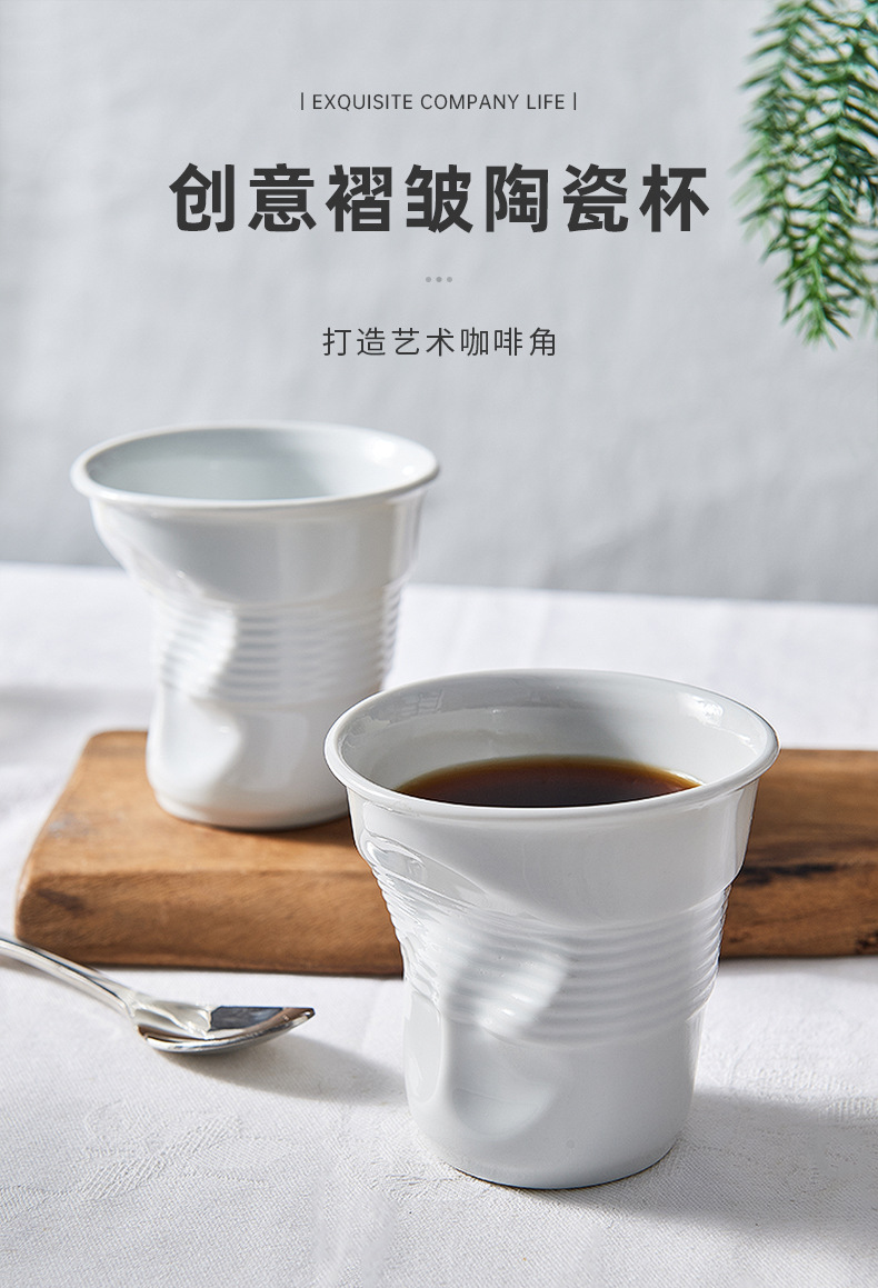 창조적 인 Ins 세라믹 주름 찻잔 맞춤형 커피 컵 간단한 불규칙한 오피스 컵 워터 컵 아침 식사 컵
