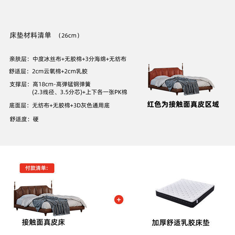 • [접촉면 천연가죽] 침대 + 두껍고 편안한 라텍스 매트리스
