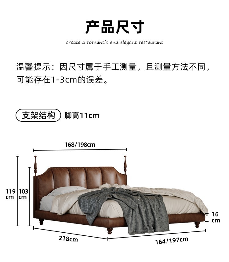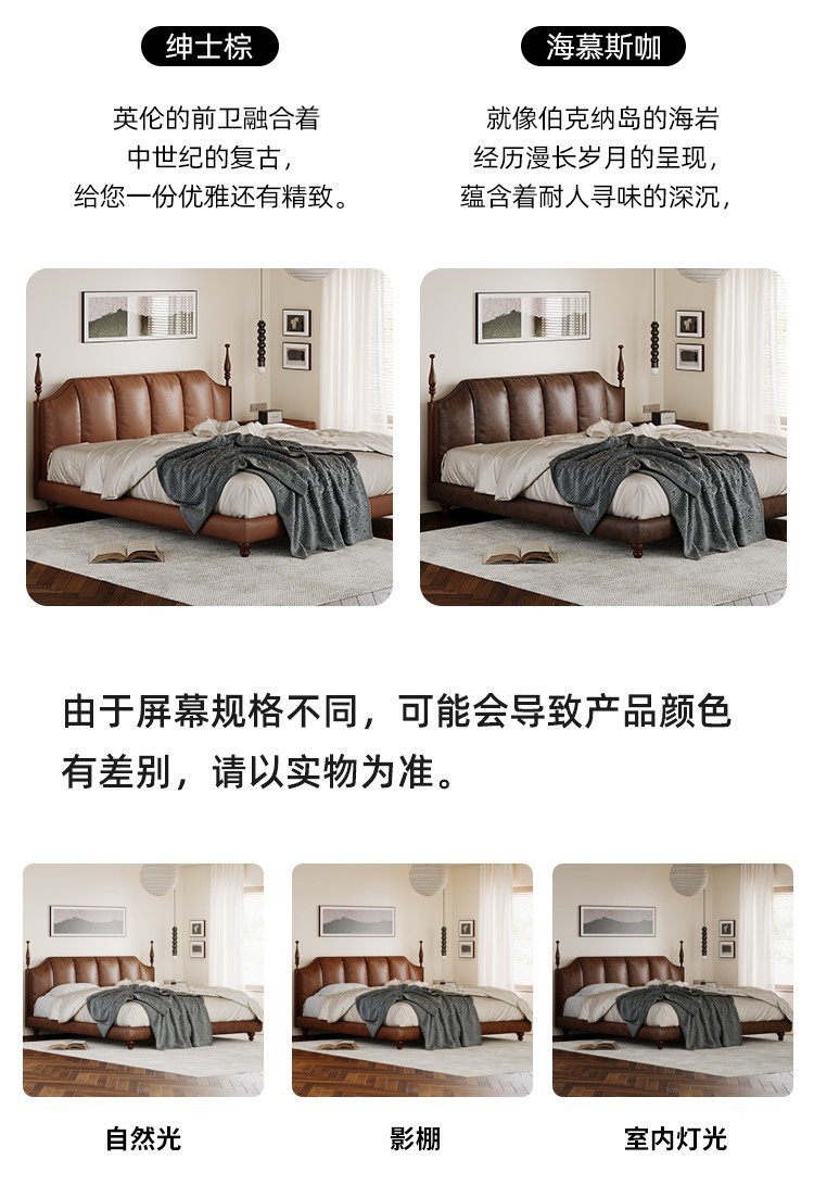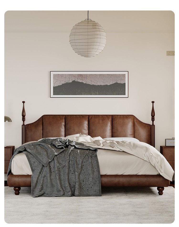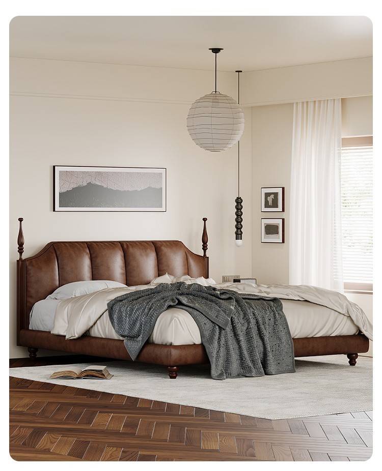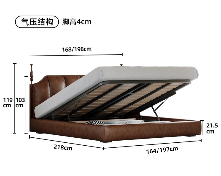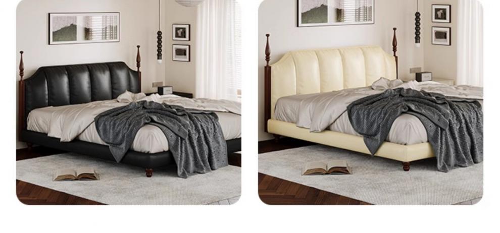 프랑스 복고풍 가죽 침대 높은 상자 저장 더블 침대 피아노 키 침대 옆 1.5 미터 큰 웨딩 침대 작은 아파트 골동품스토어 가기