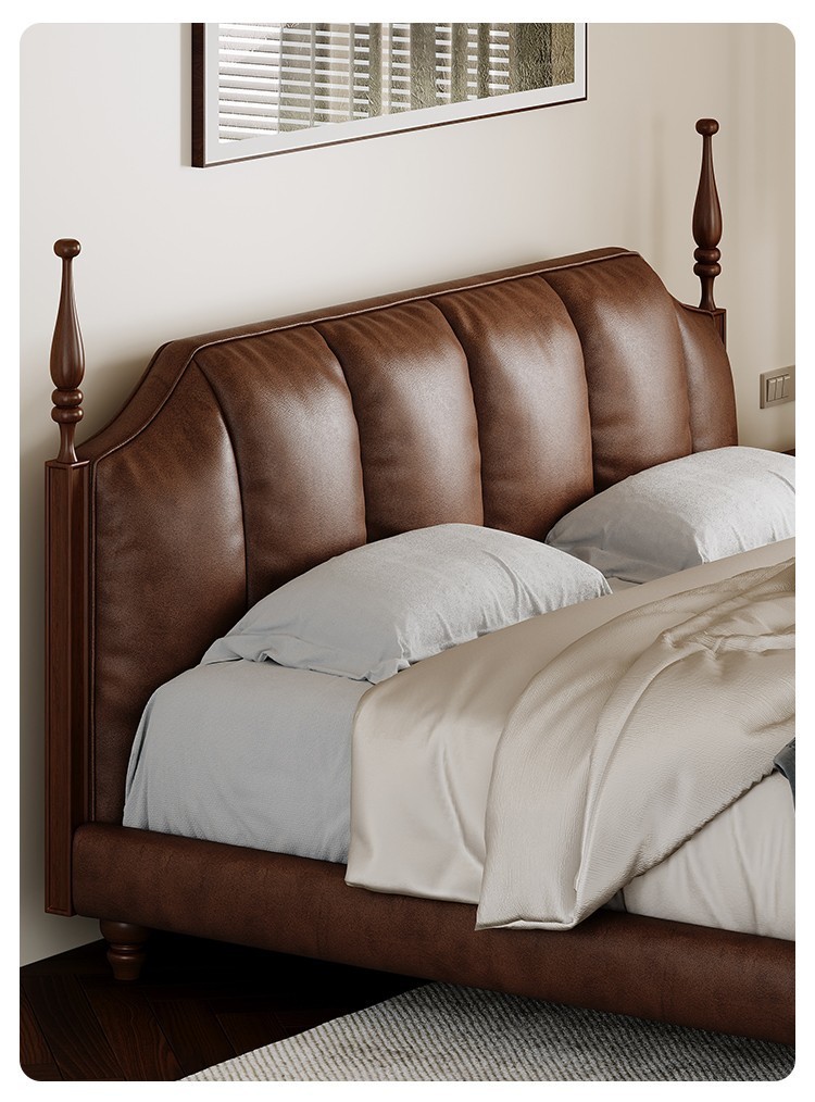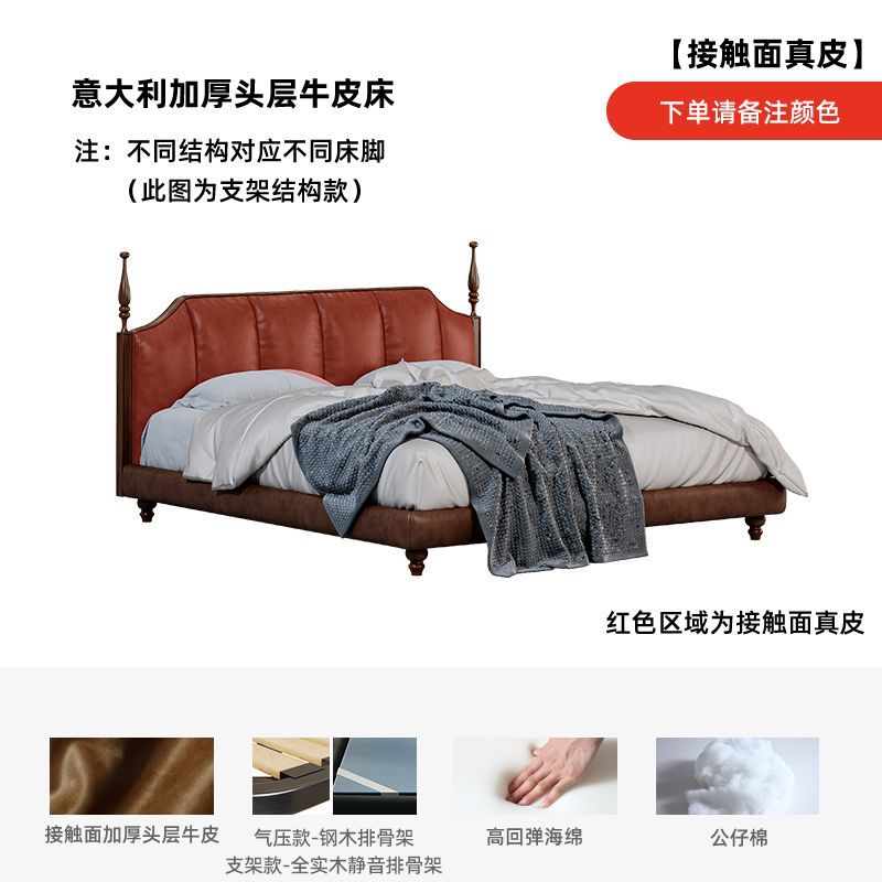 프랑스 복고풍 가죽 침대 높은 상자 저장 더블 침대 피아노 키 침대 옆 1.5 미터 큰 웨딩 침대 작은 아파트 골동품