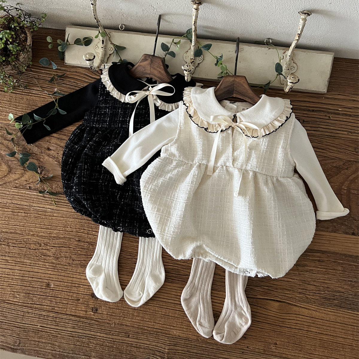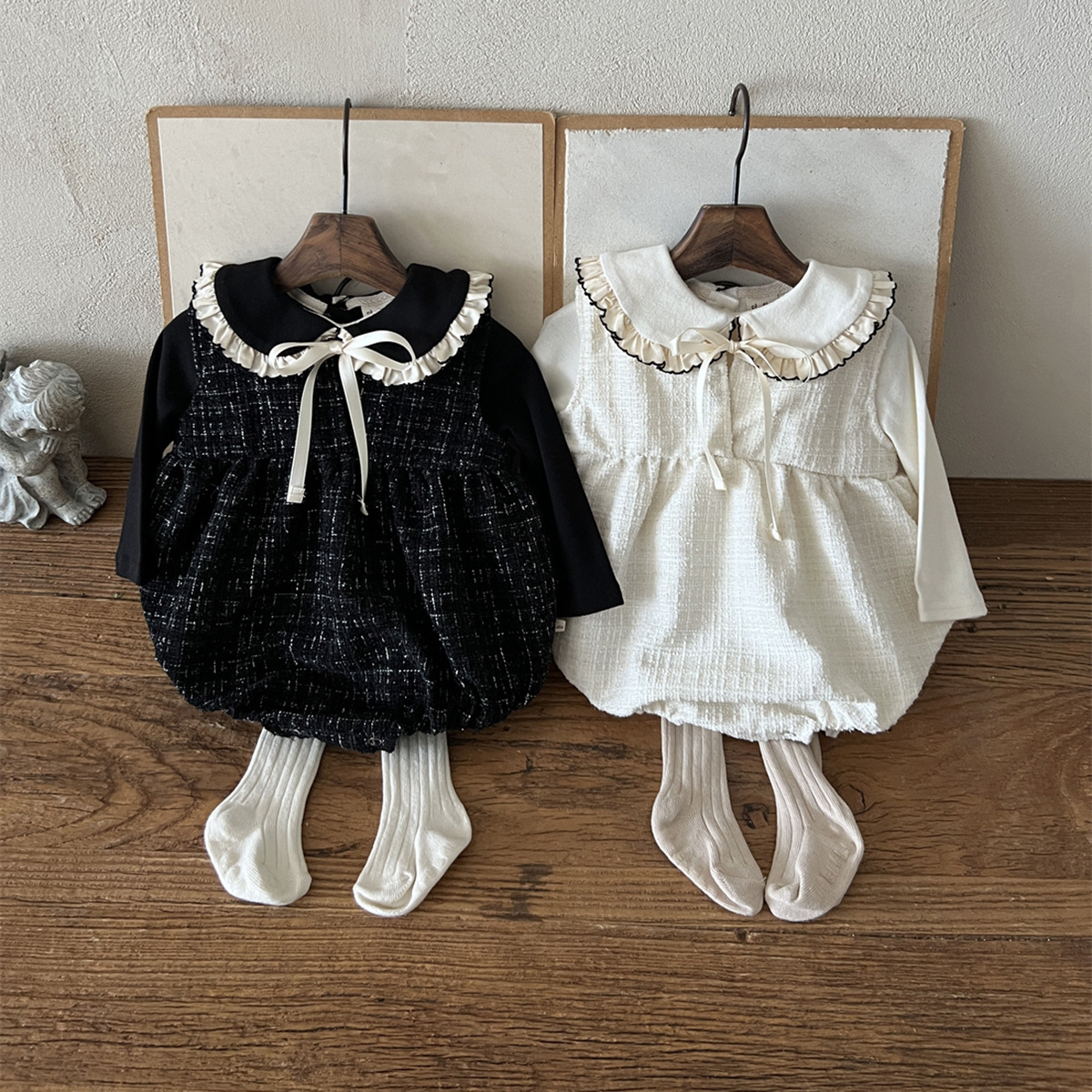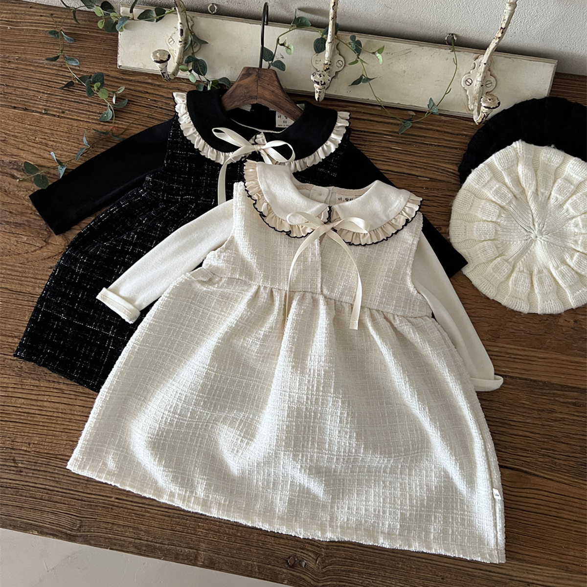 25 가을 한국어 버전 ins 아동복 유아 및 유아 아기 플라잉 에지 인형 칼라 긴팔 다목적 바닥 셔츠 티셔츠