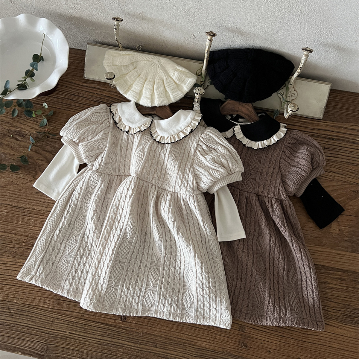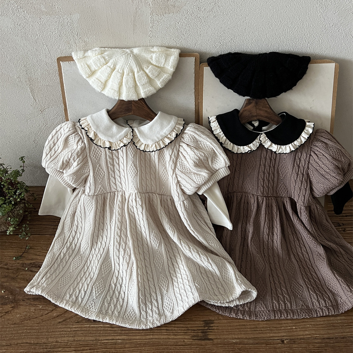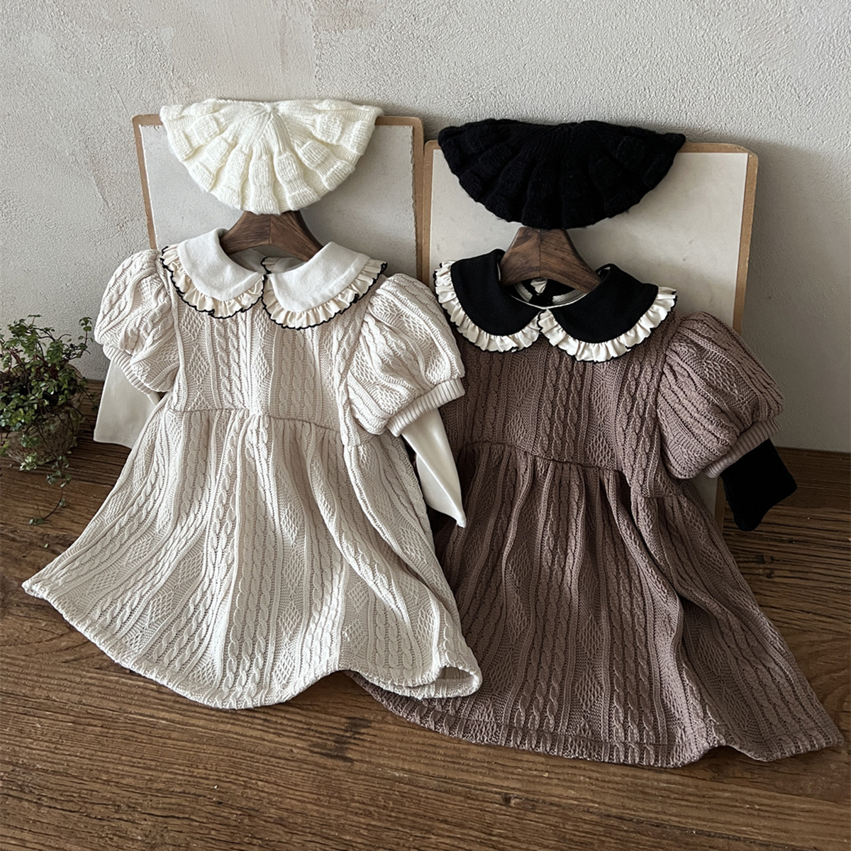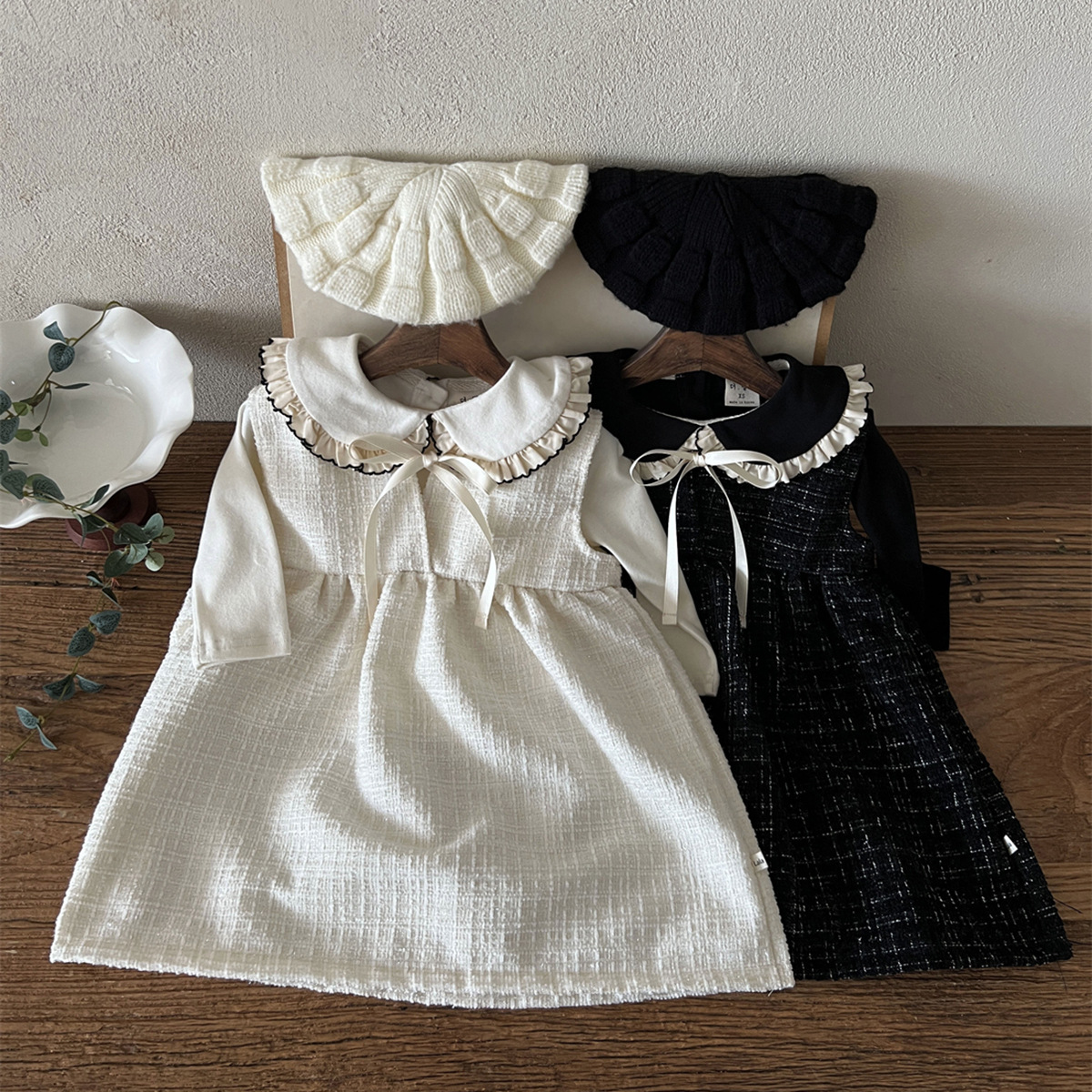 25 가을 한국어 버전 ins 아동복 유아 및 유아 아기 플라잉 에지 인형 칼라 긴팔 다목적 바닥 셔츠 티셔츠