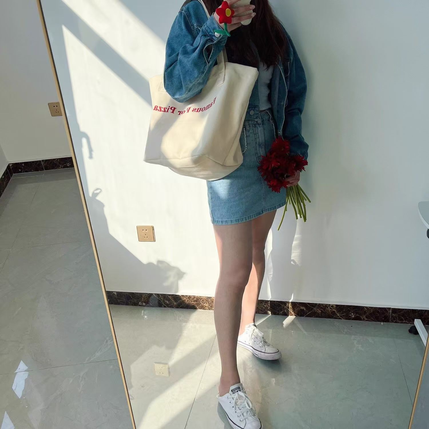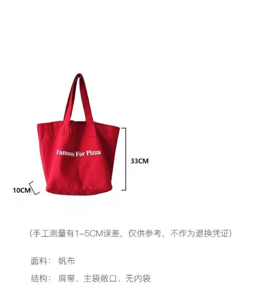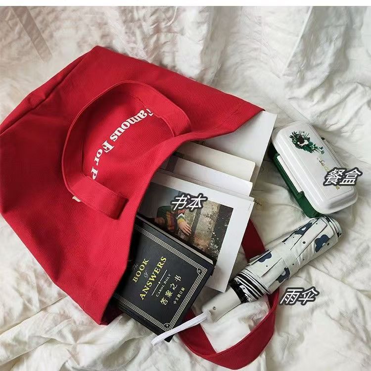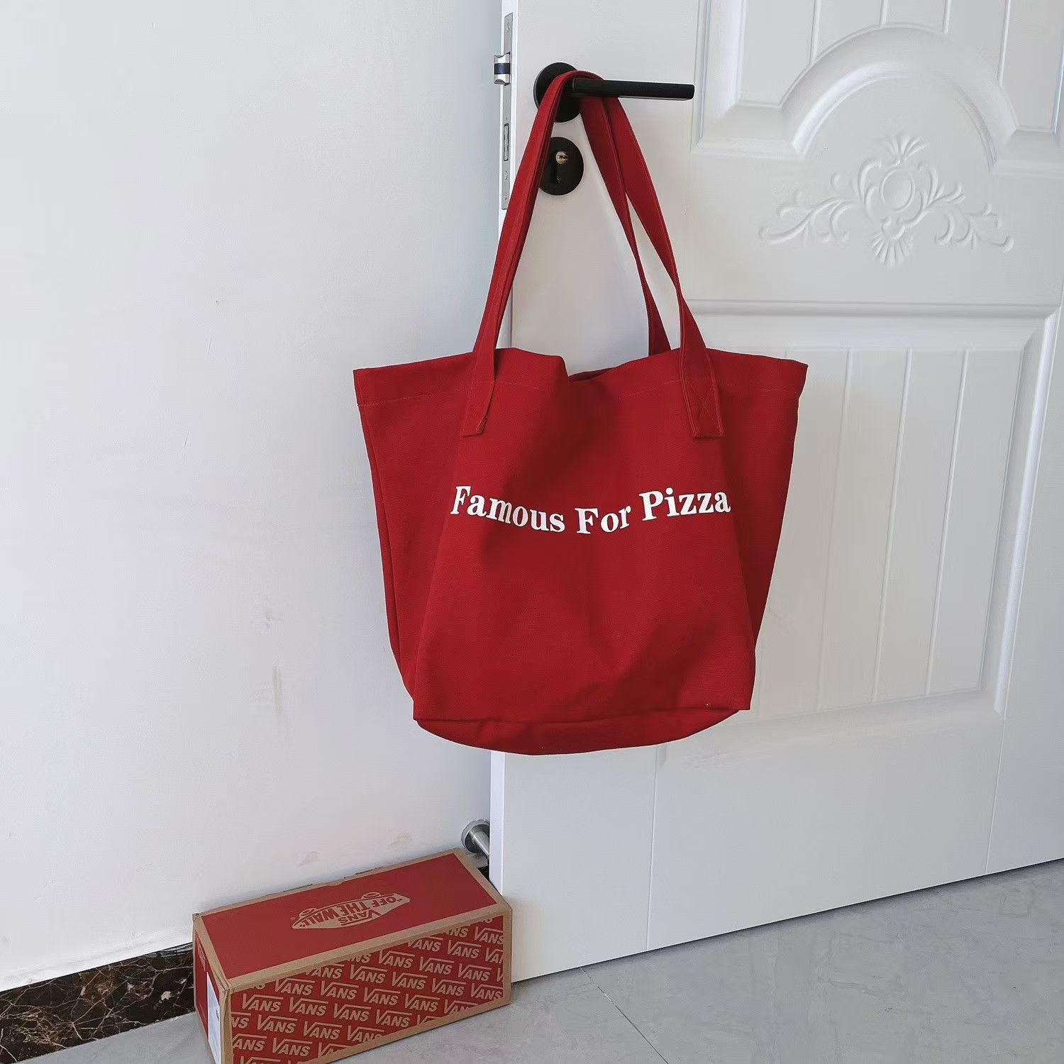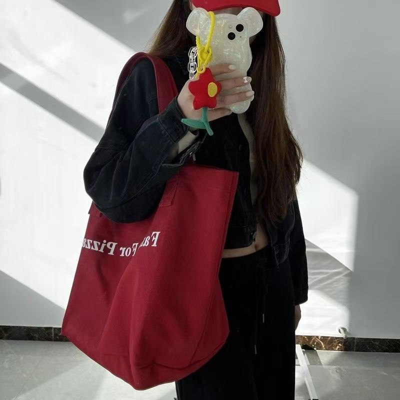 틈새 빨간 캔버스 가방 2024 새로운 캐주얼 편지 인쇄 캔버스 어깨 가방 대용량 학생 토트 백