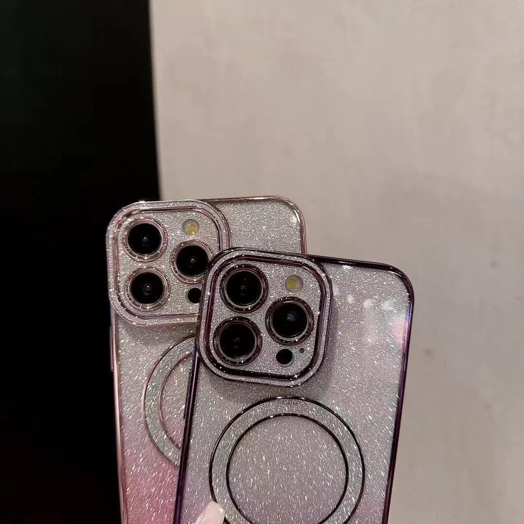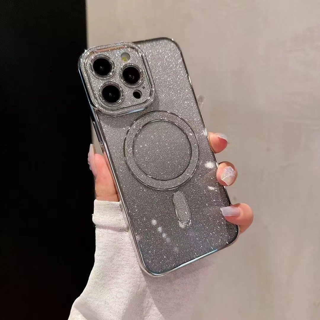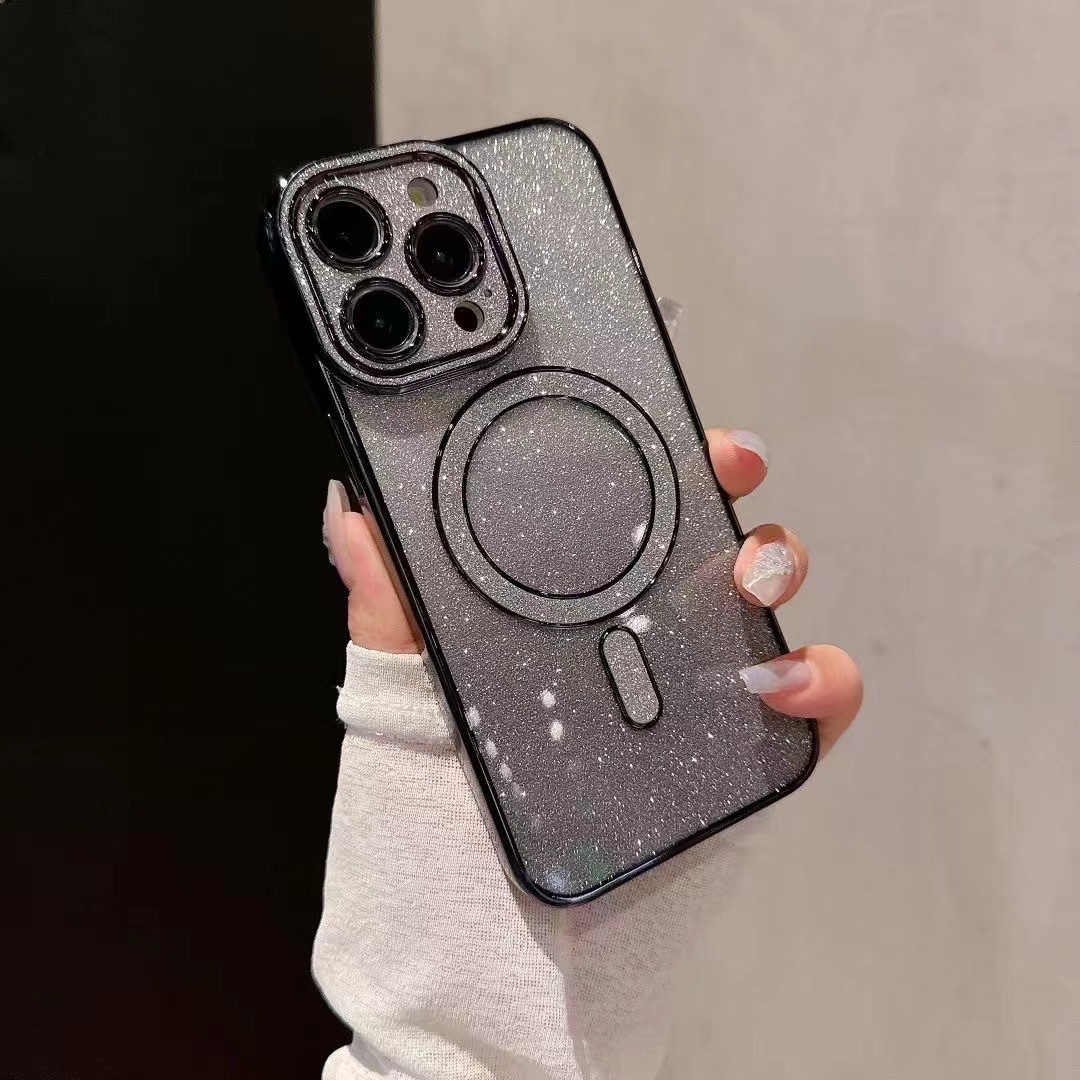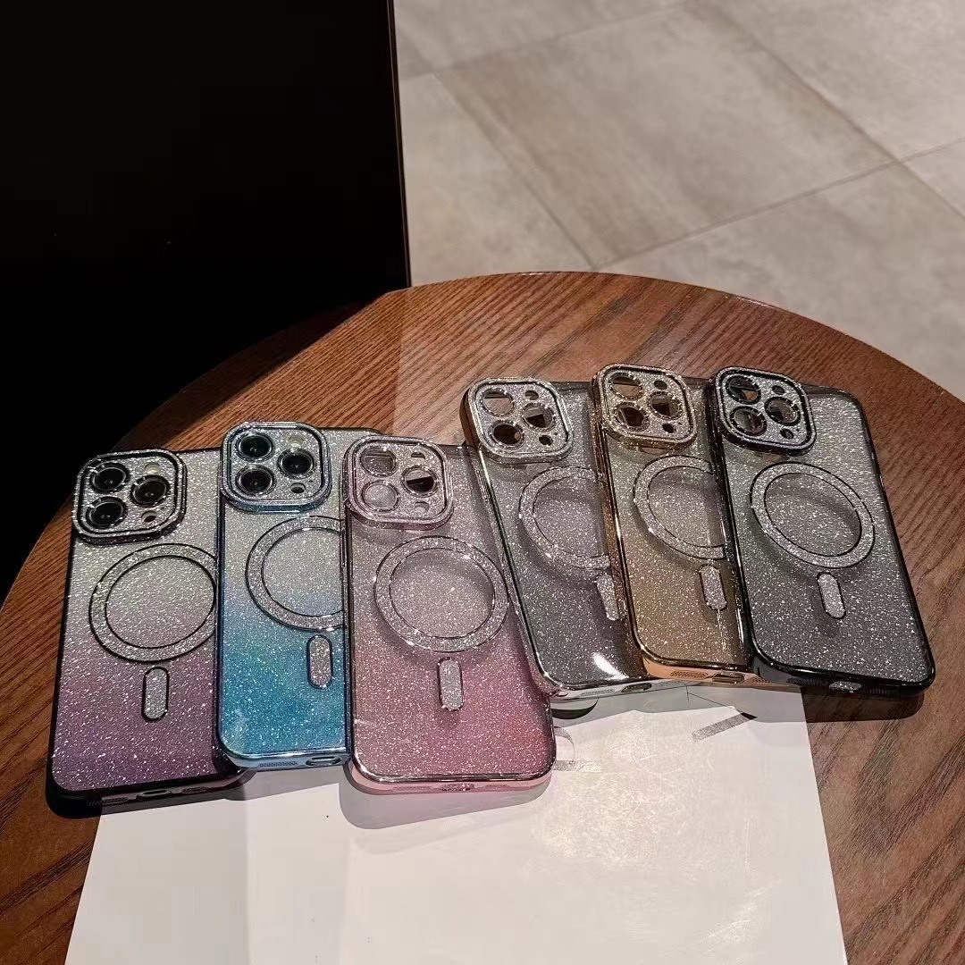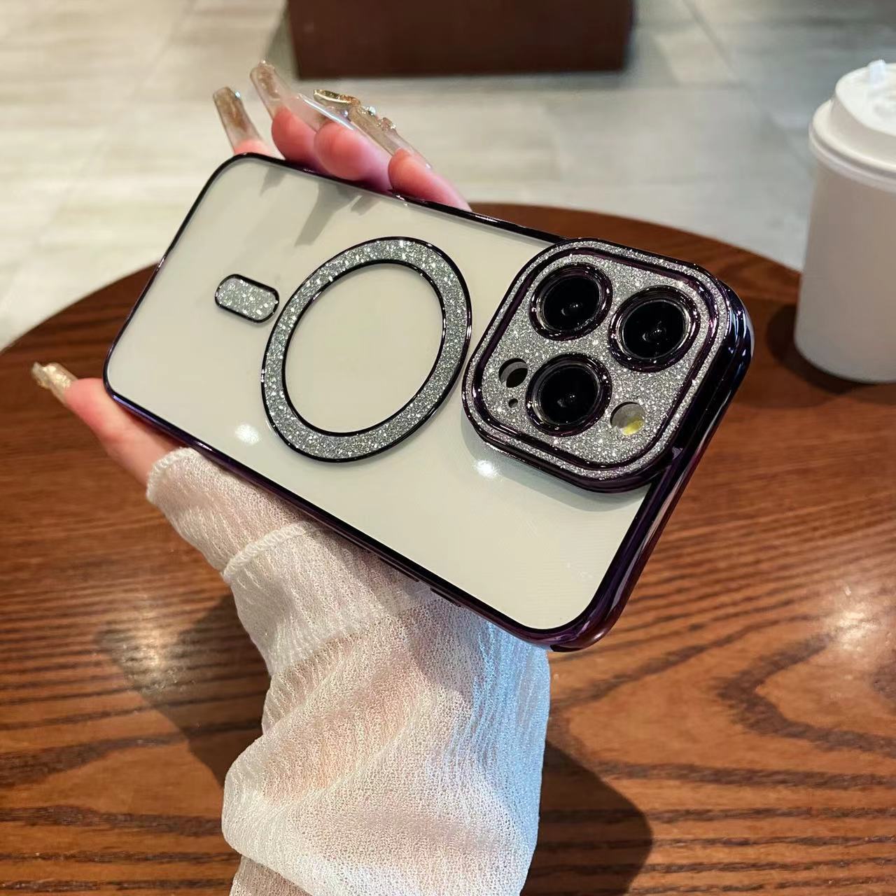 애플 16ProMax 전화 케이스 새로운 iphone15/14/13 투명 용 반짝이 마그네틱 무선 충전