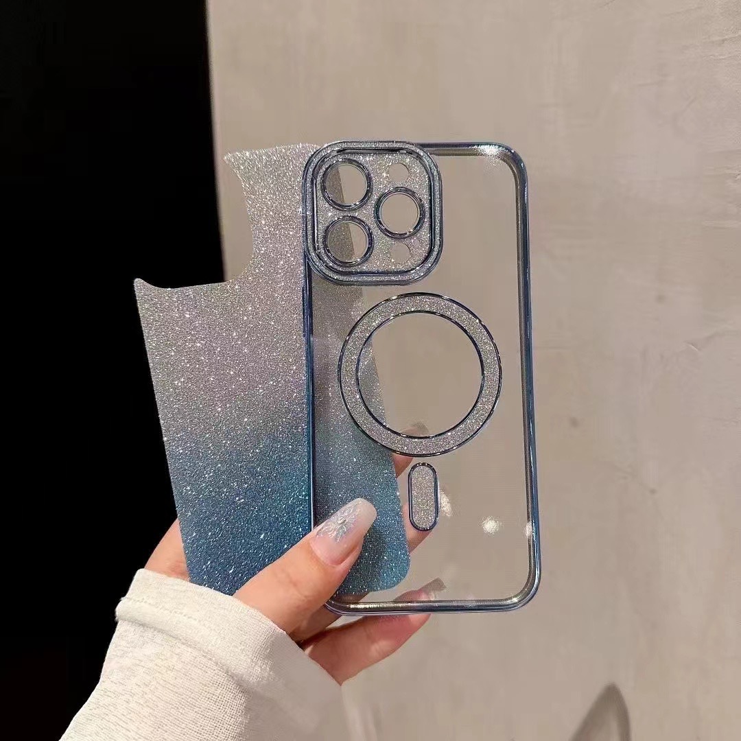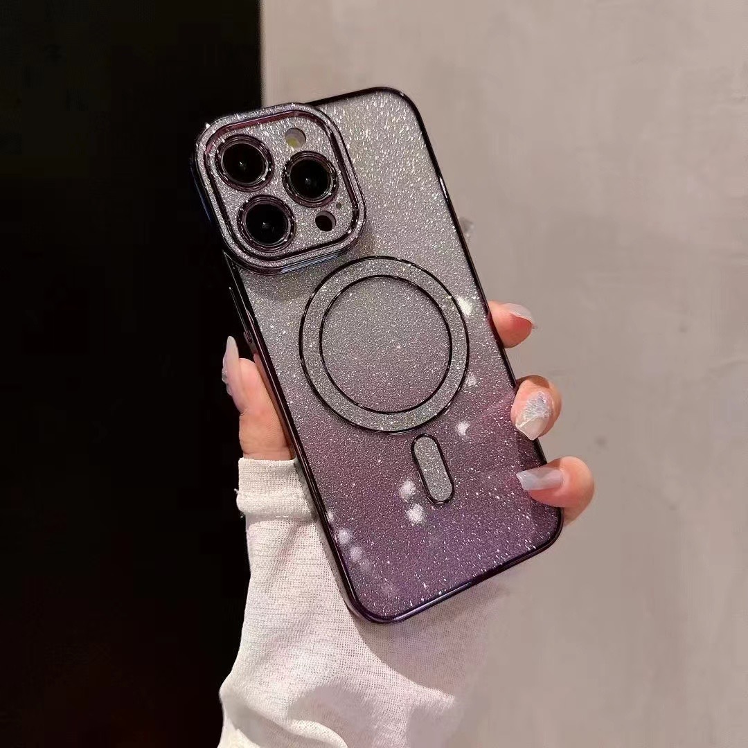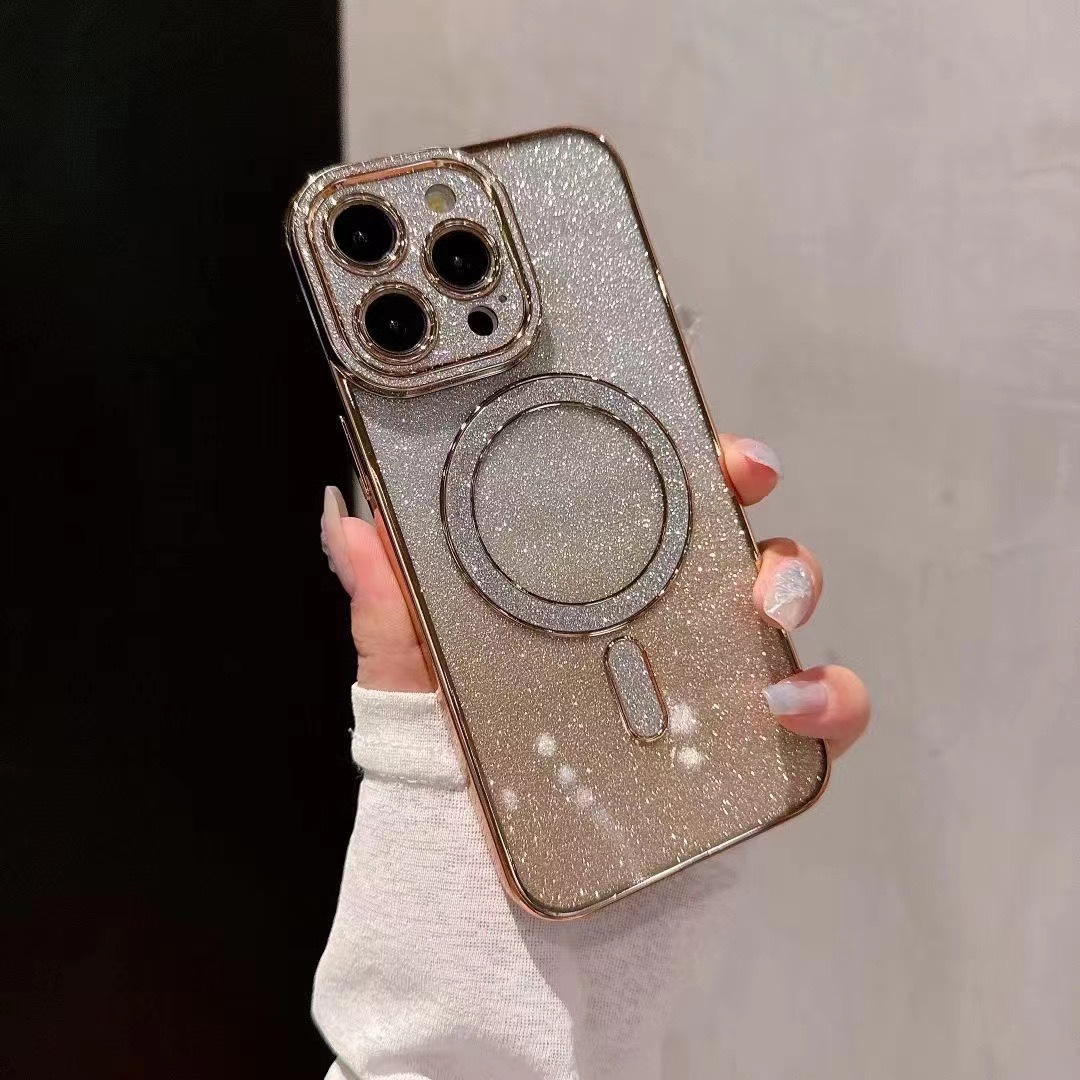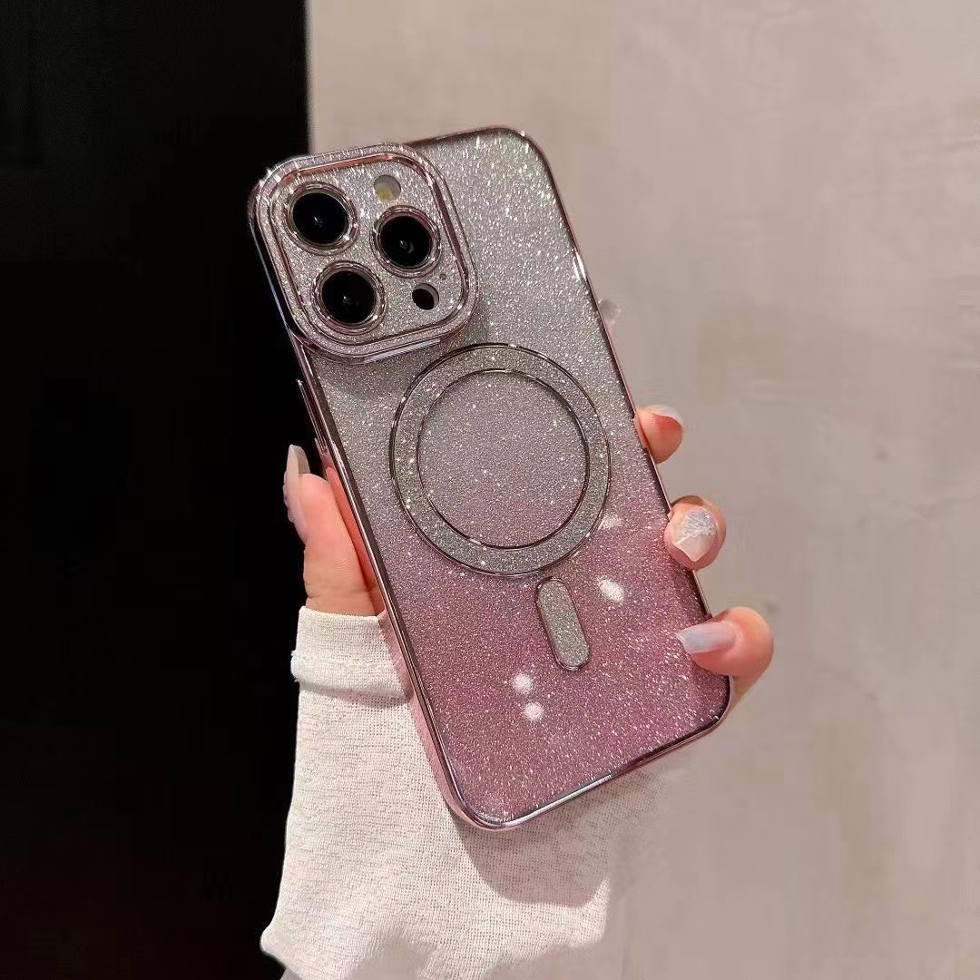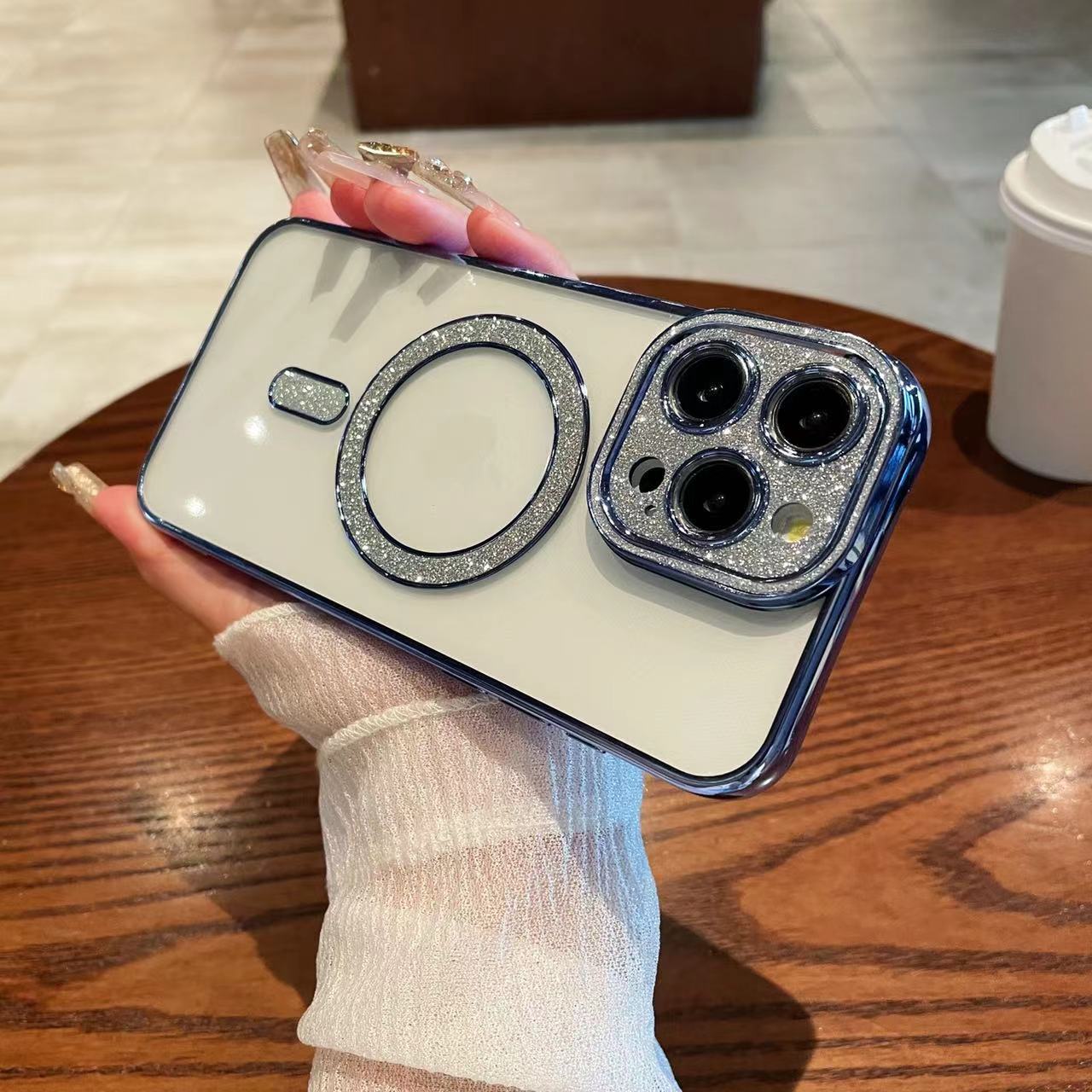 애플 16ProMax 전화 케이스 새로운 iphone15/14/13 투명 용 반짝이 마그네틱 무선 충전
