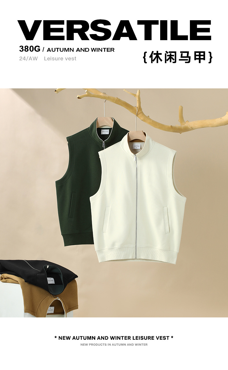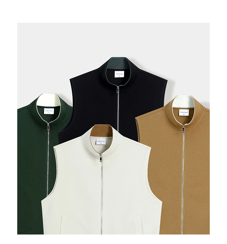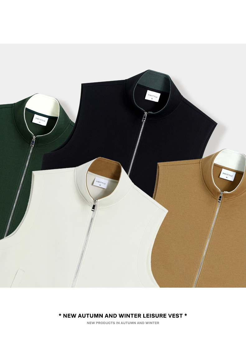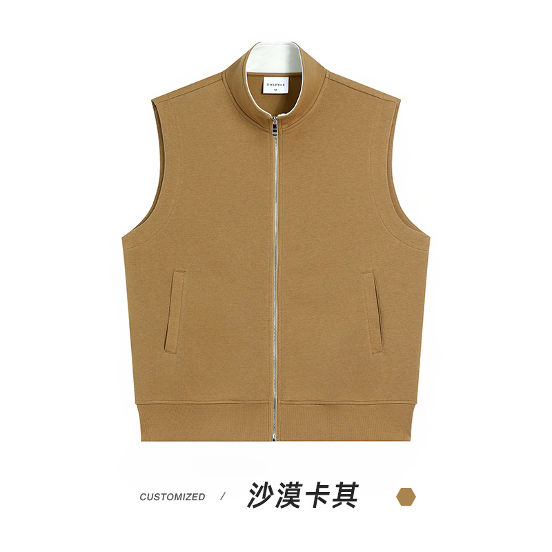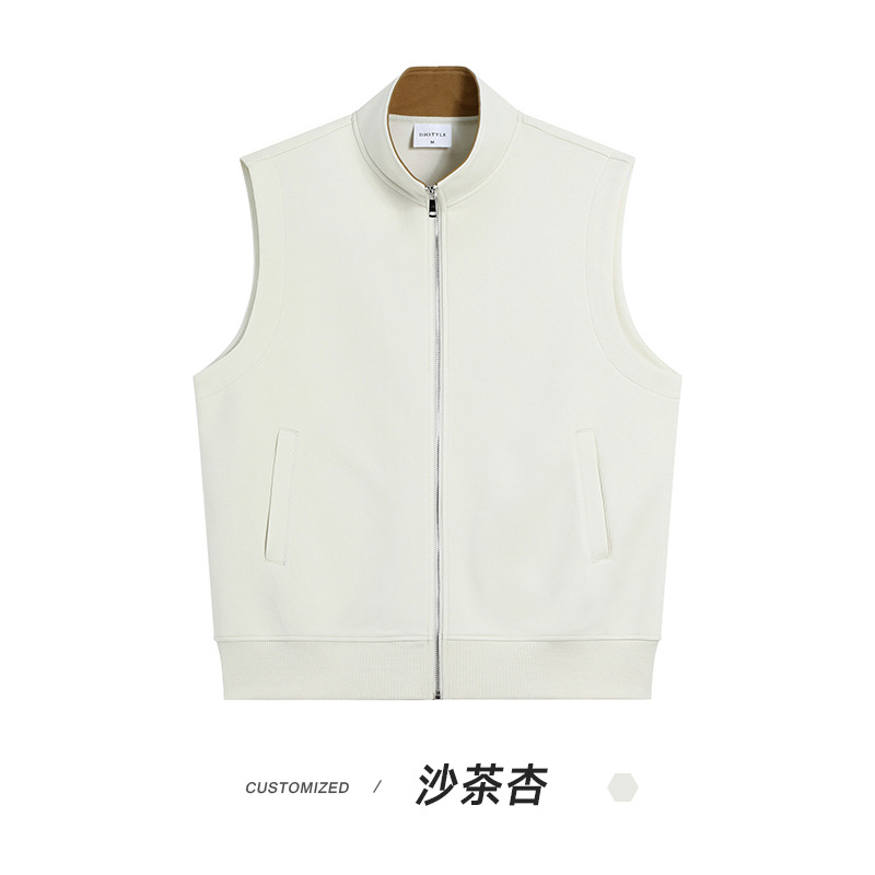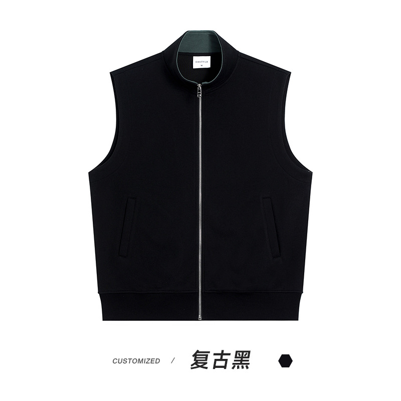 이른 가을 380g 헤비 칼라 조끼 재킷 남성 봄과 여름 새로운 단색 레저 스포츠 느슨한 지퍼 조끼스토어 가기