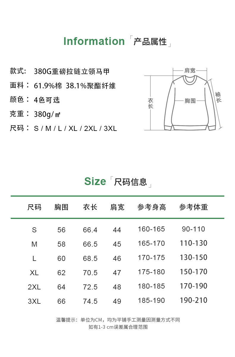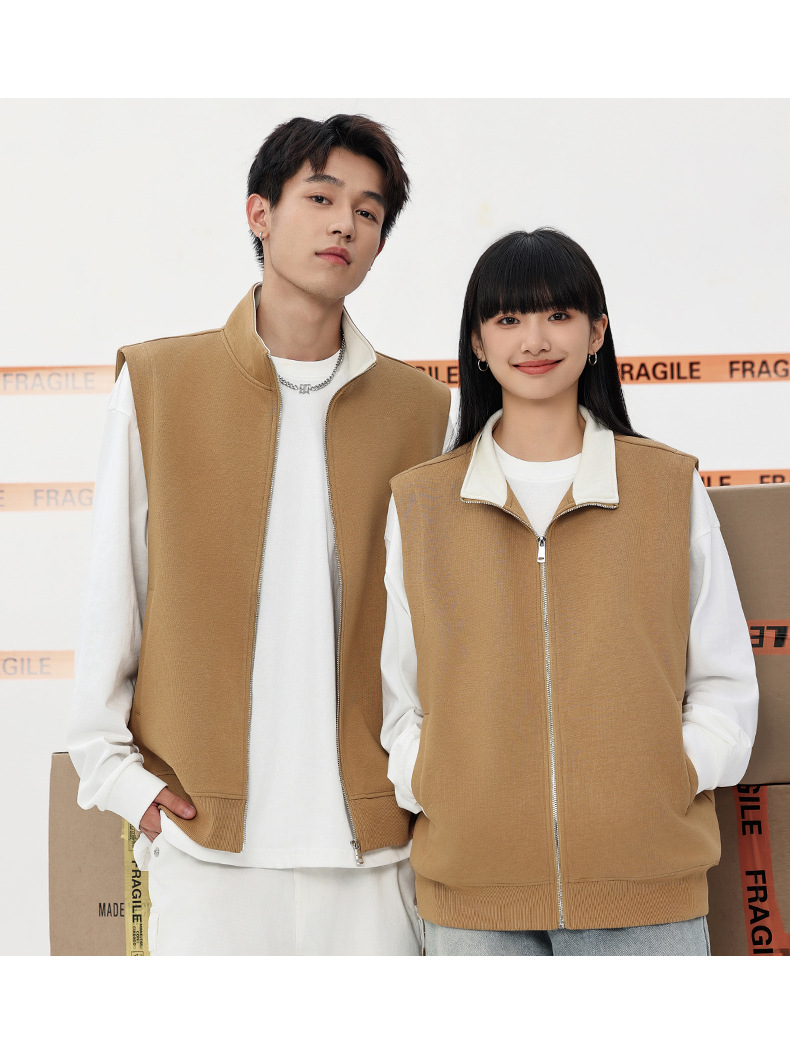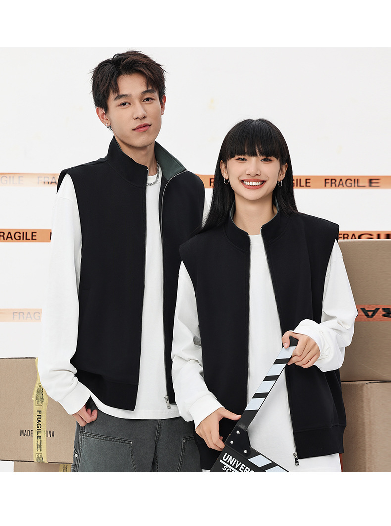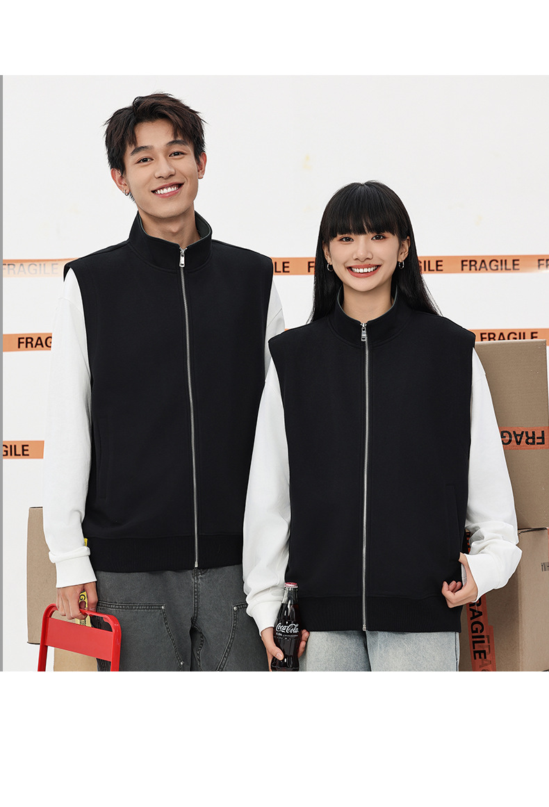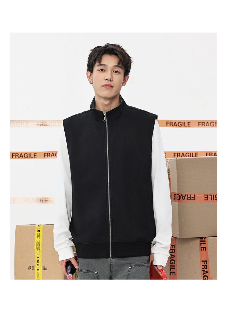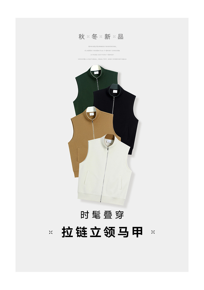 이른 가을 380g 헤비 칼라 조끼 재킷 남성 봄과 여름 새로운 단색 레저 스포츠 느슨한 지퍼 조끼스토어 가기