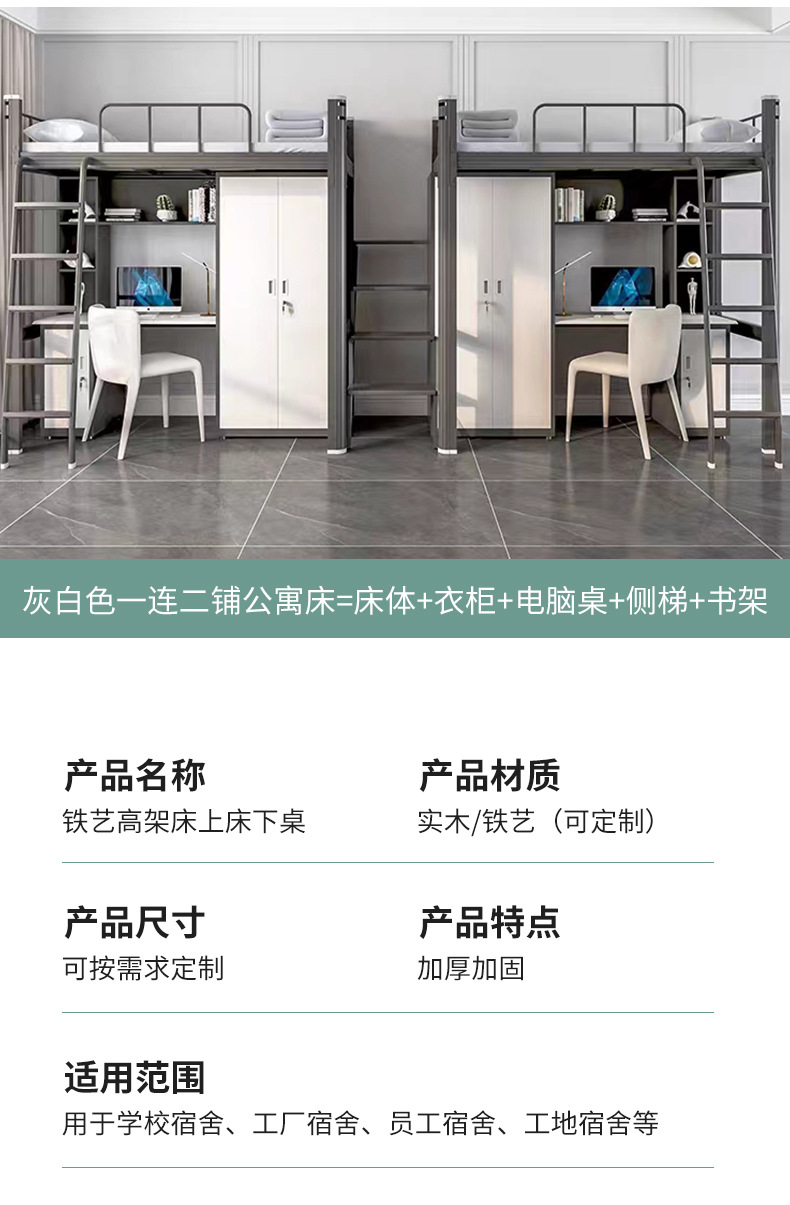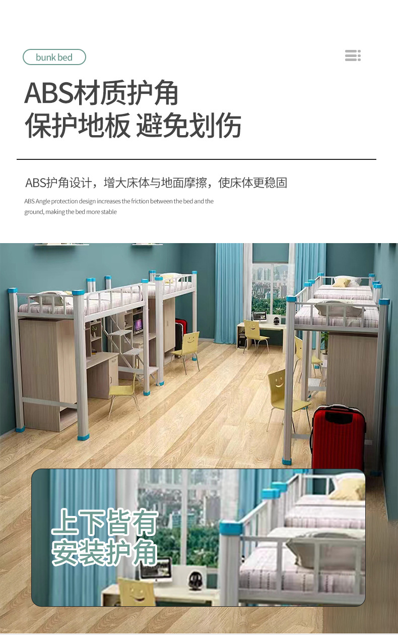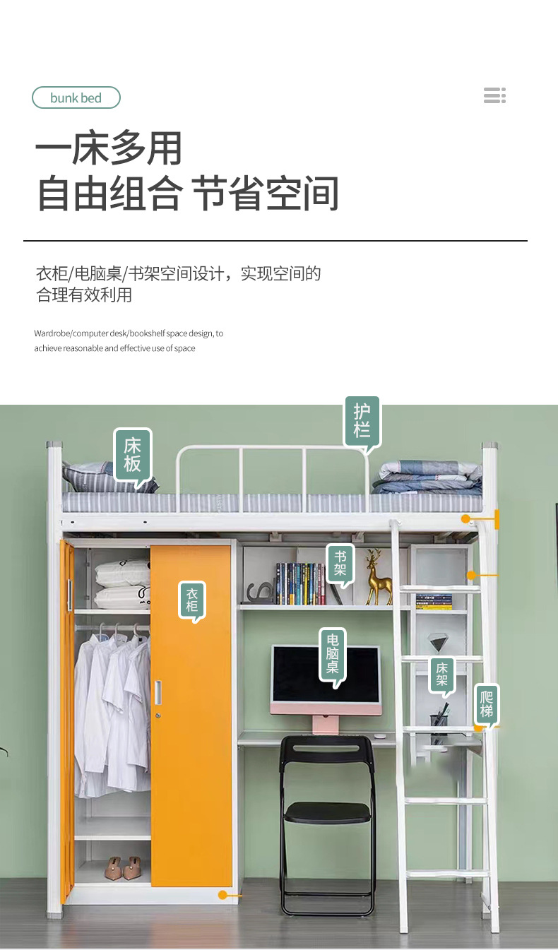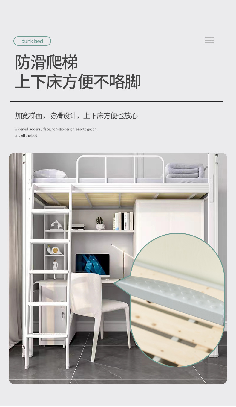 침대 위에 책상이 있는 철제 침대, 학교 기숙사 이층 침대, 철제 침대, 직원 기숙사 이층 침대, 더블 침대, 학생 침대