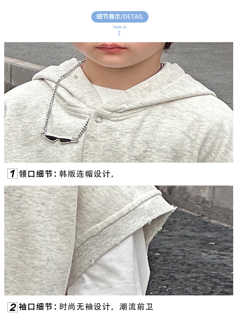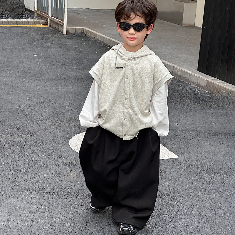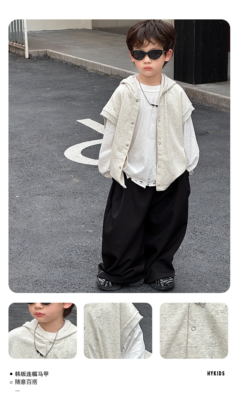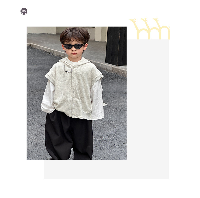 2025 봄, 가을 새 조끼 소년 잘 생긴 패션 민소매 탑 어린이 후드 소년 솔리드 컬러 봄, 가을 셔츠스토어 가기
