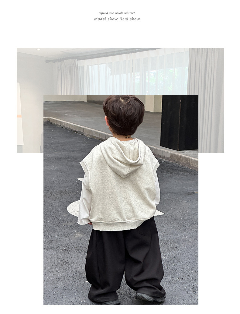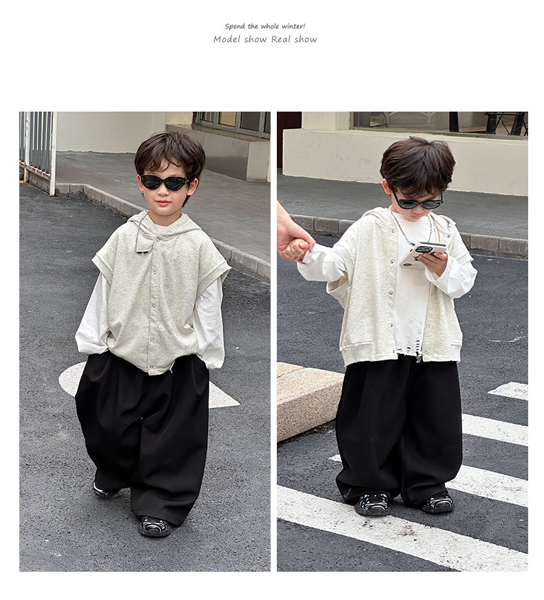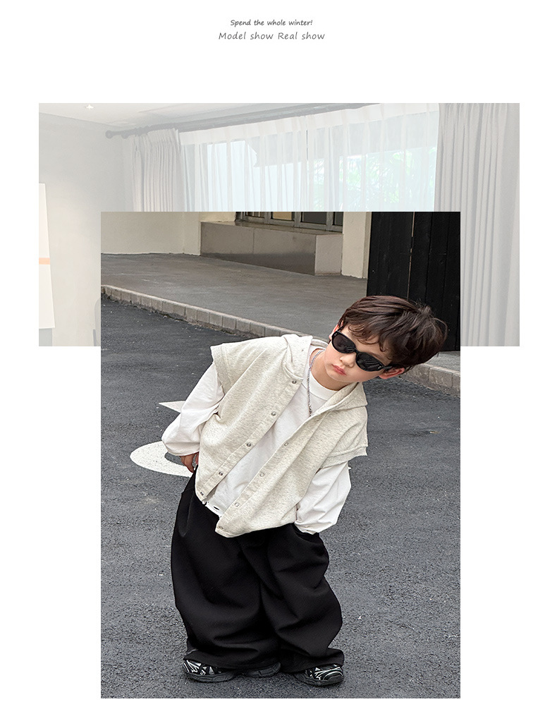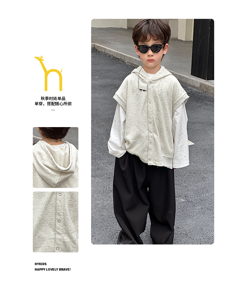 2025 봄, 가을 새 조끼 소년 잘 생긴 패션 민소매 탑 어린이 후드 소년 솔리드 컬러 봄, 가을 셔츠스토어 가기