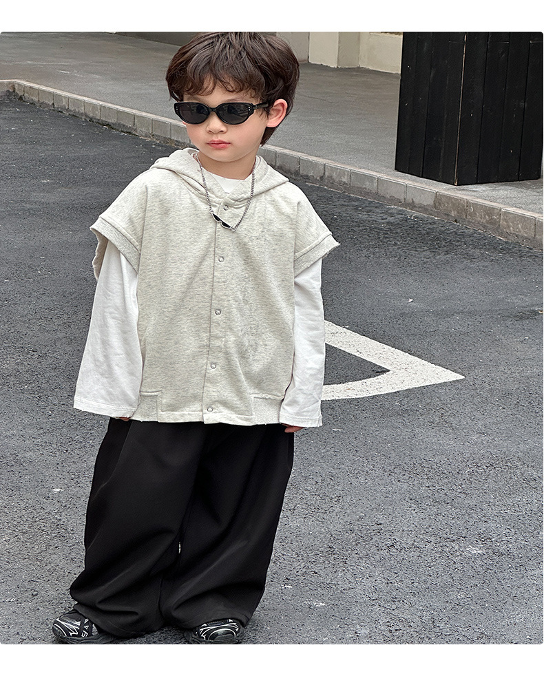 2025 봄, 가을 새 조끼 소년 잘 생긴 패션 민소매 탑 어린이 후드 소년 솔리드 컬러 봄, 가을 셔츠