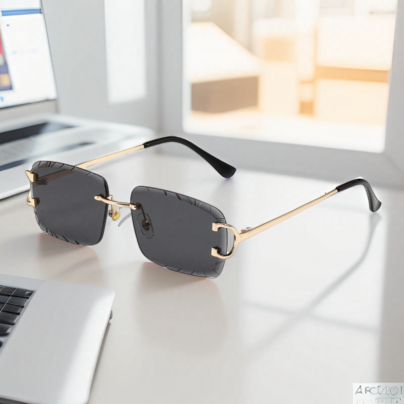2025 Cut-Edge Rimless Glasses Square Reverted Edge 남성과 여성의 선글라스 금속 유럽 및 미국 거리 사진 촬영 트렌디 크로스 보더 선글라스