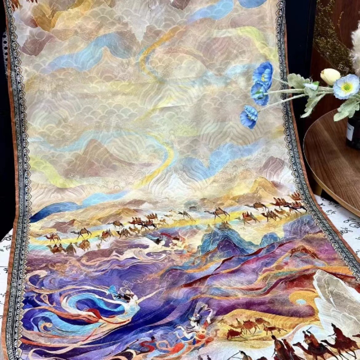 [Zhaojun out the plug] 새로운 국가 스타일 컷 꽃 스카프 여성의 여름 얇은 자외선 차단제 통기성 목도리 스카프