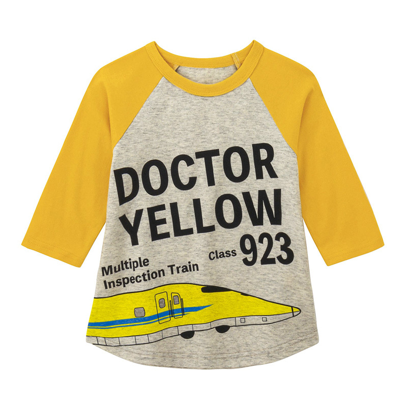 소년 면 세븐-소매 티셔츠 봄과 가을 새 아기의 중간 소매 셔츠 캐주얼 신칸센 기차 아동복 베이스 셔츠스토어 가기