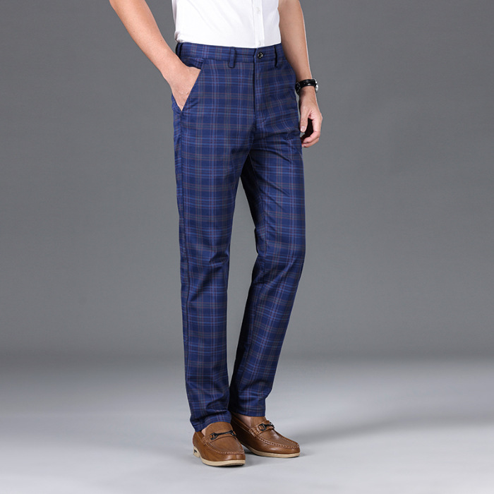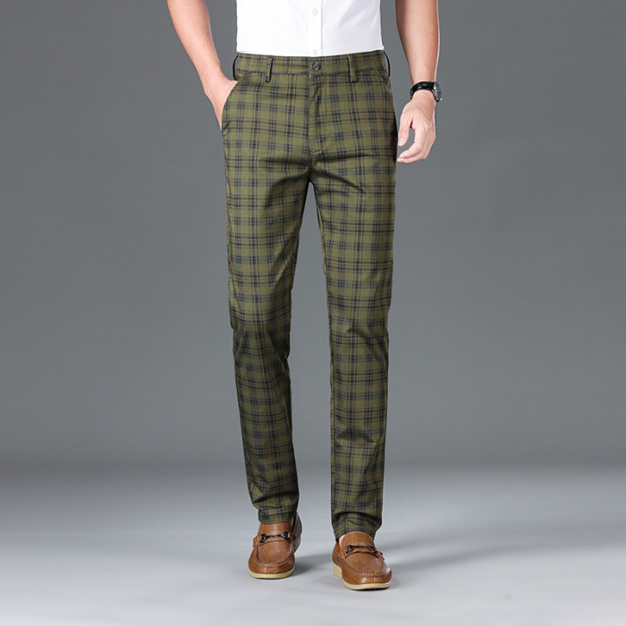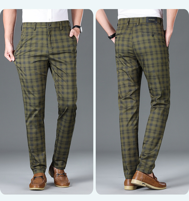 사계절 캐주얼 바지 남성용 유행 바지 슬림 핏 스트레이트 일본 스타일 봄과 가을 격자 무늬 한국 스타일 트렌디 뉴 남성용 바지