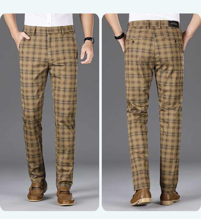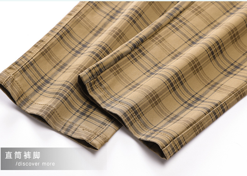 사계절 캐주얼 바지 남성용 유행 바지 슬림 핏 스트레이트 일본 스타일 봄과 가을 격자 무늬 한국 스타일 트렌디 뉴 남성용 바지스토어 가기
