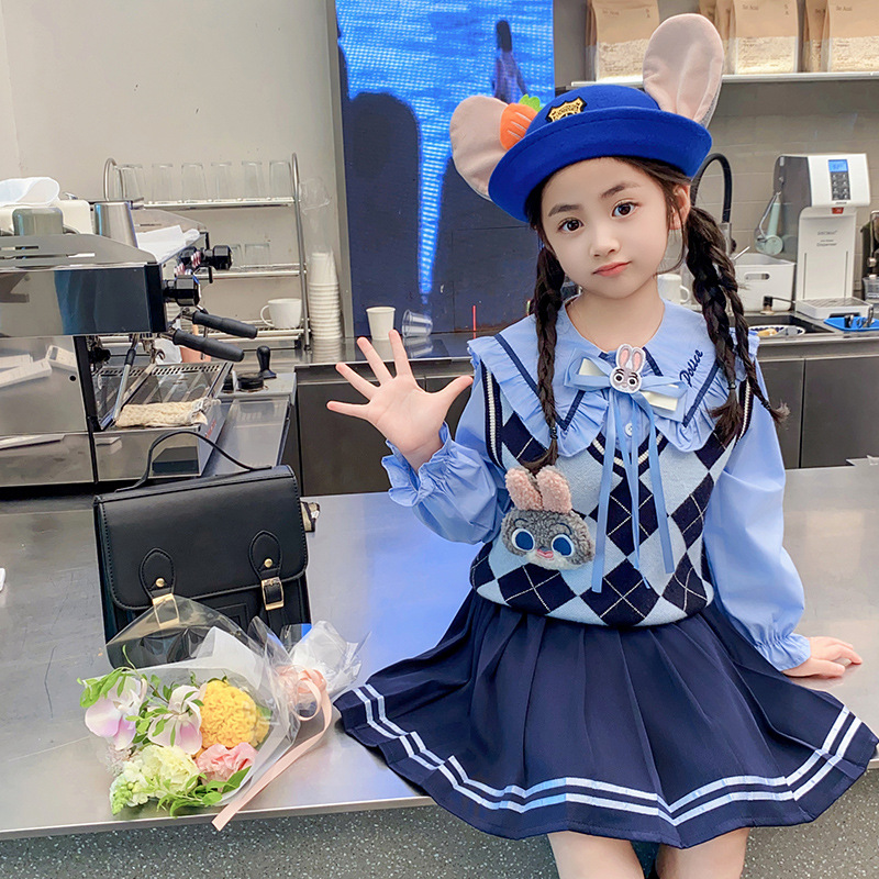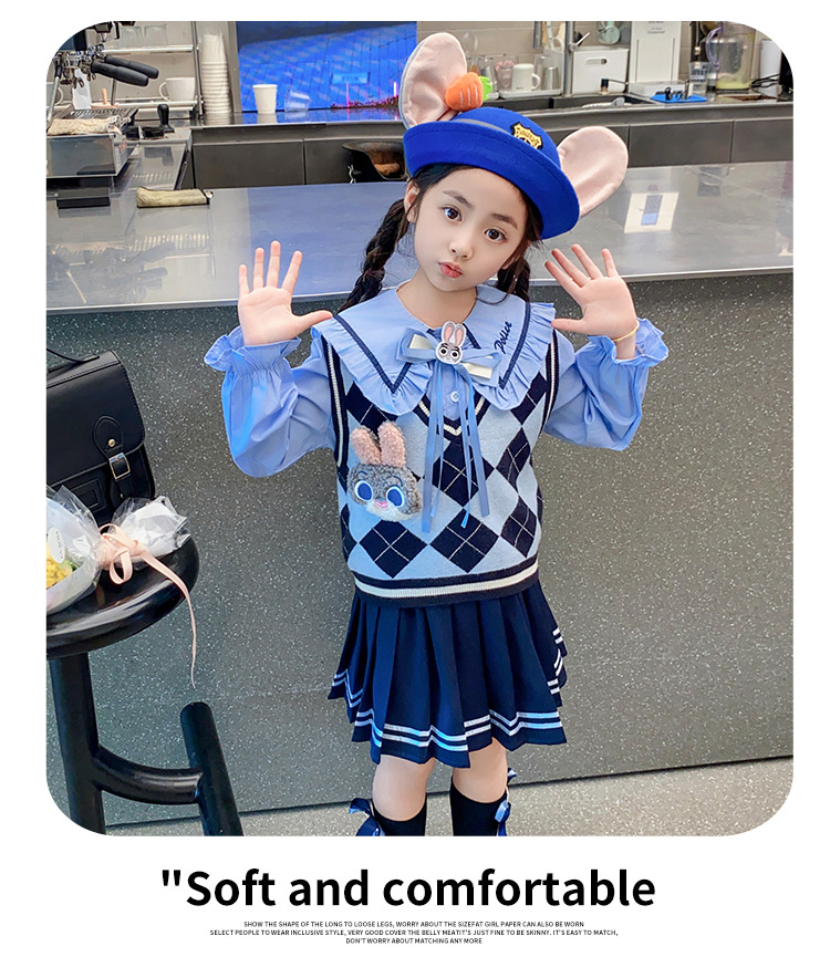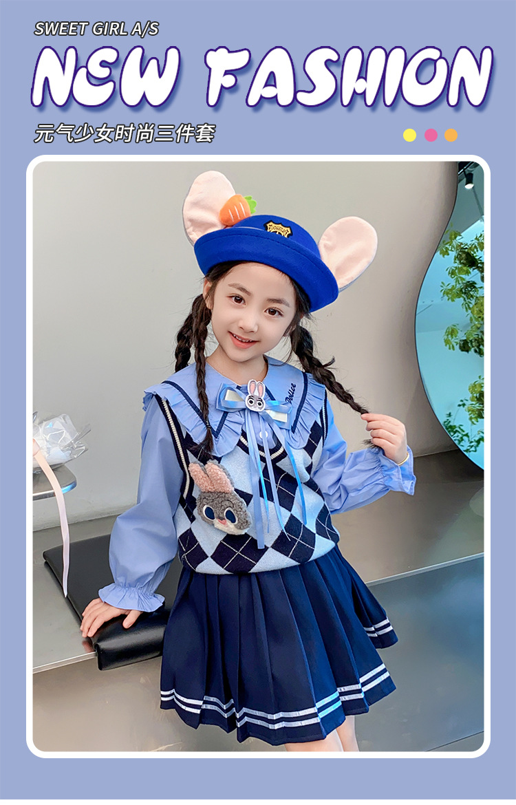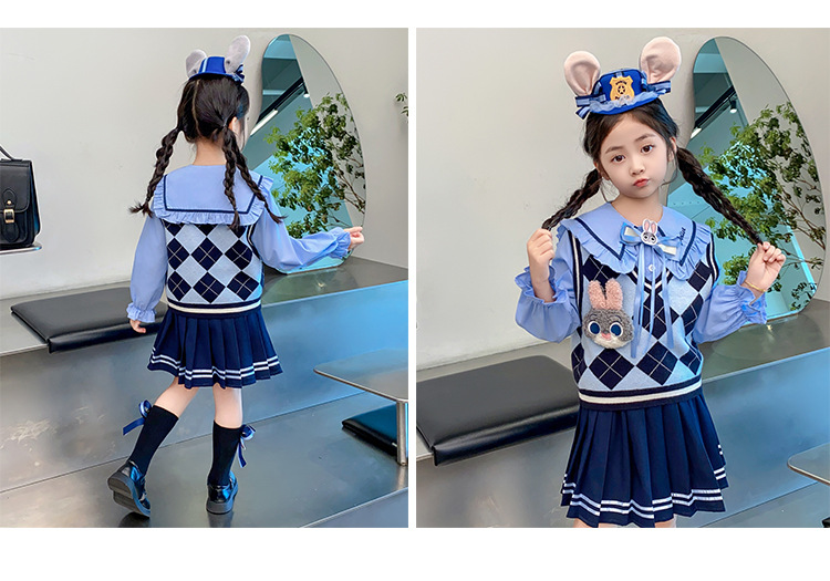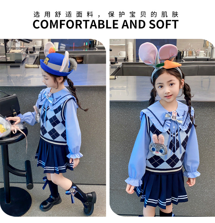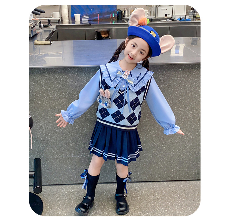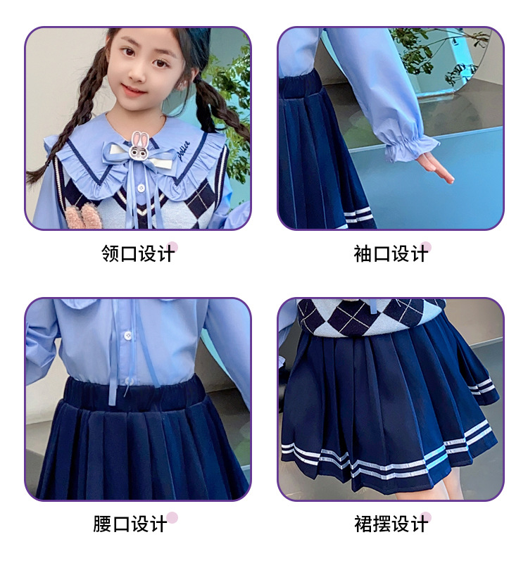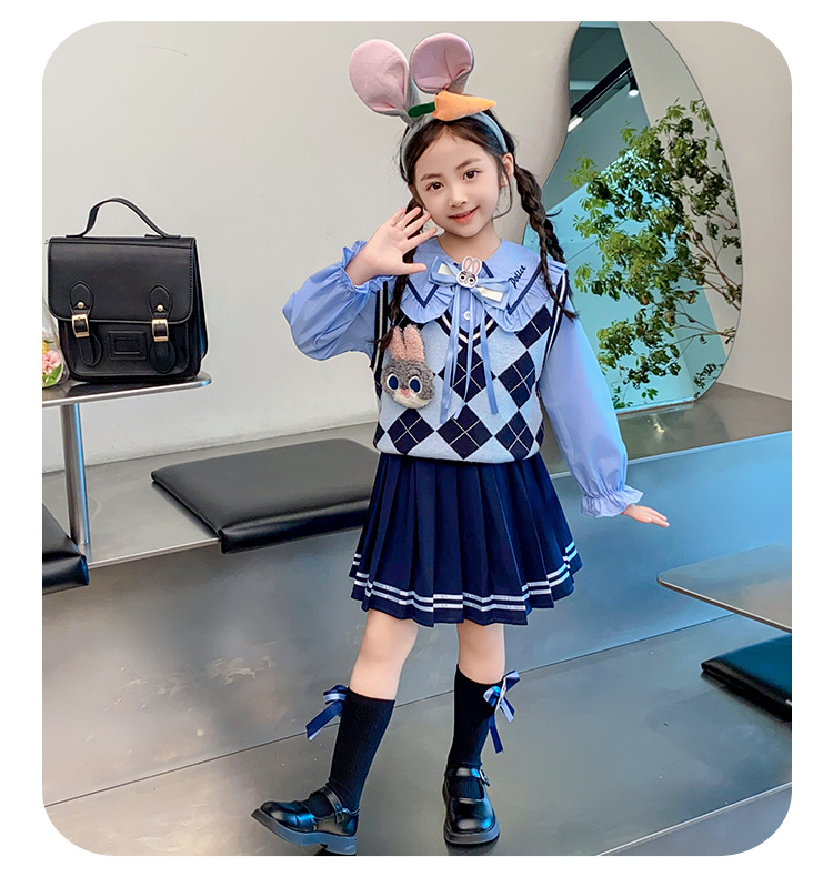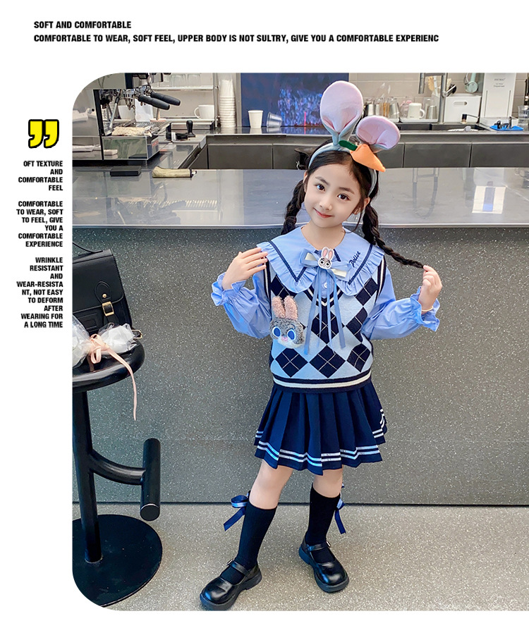 2026 봄 신상품 여아 니트 조끼 3종 세트 아동용 스타일리시 셔츠 플리츠 스커트 컬리지 스타일 정장 스커트스토어 가기