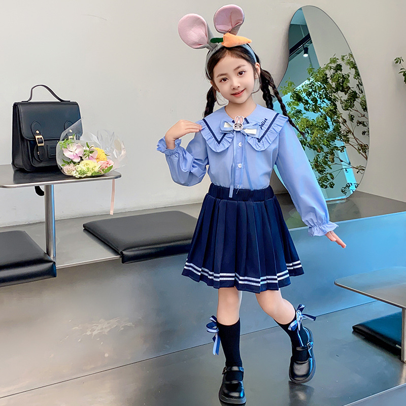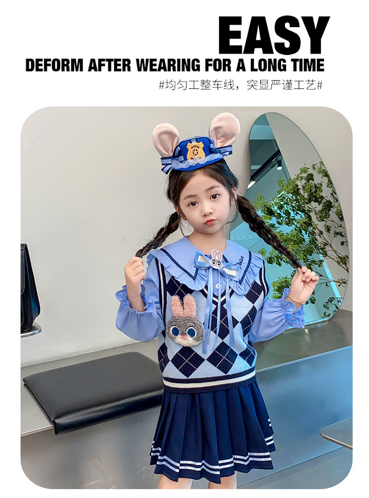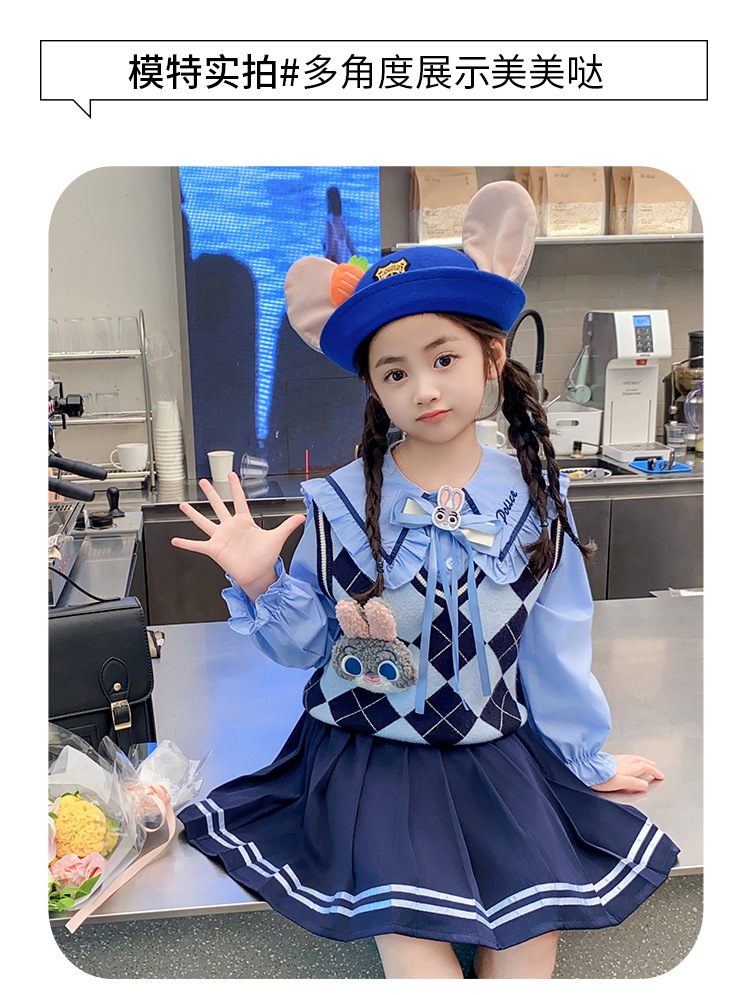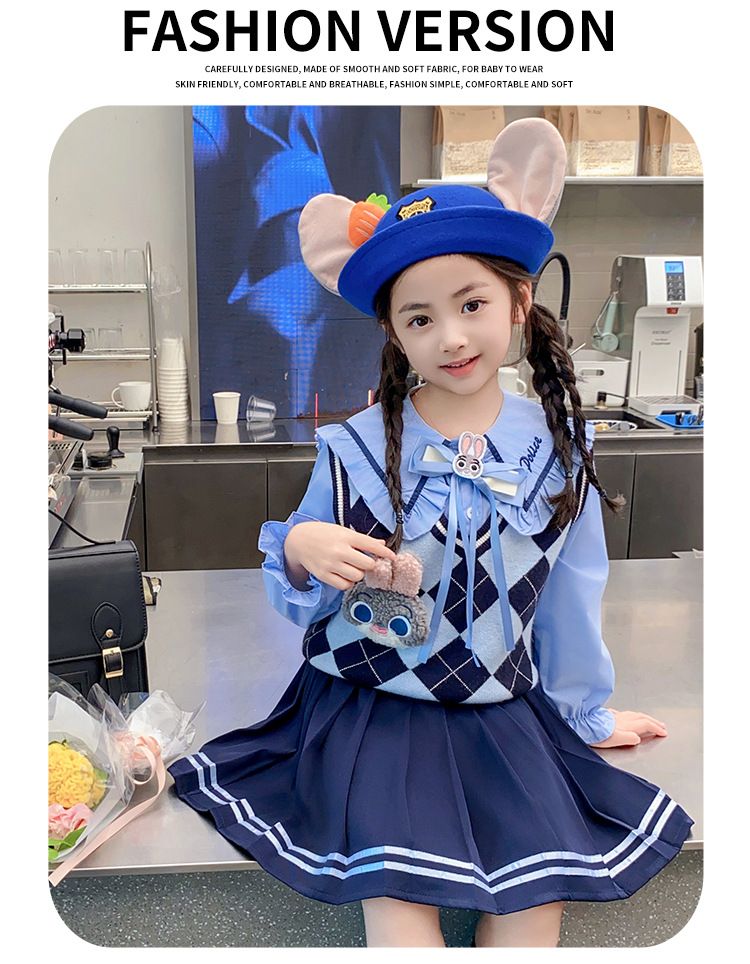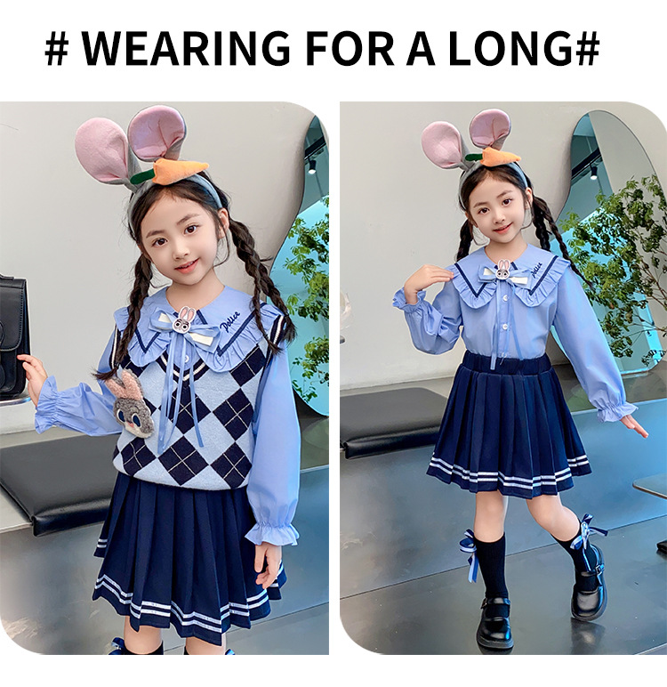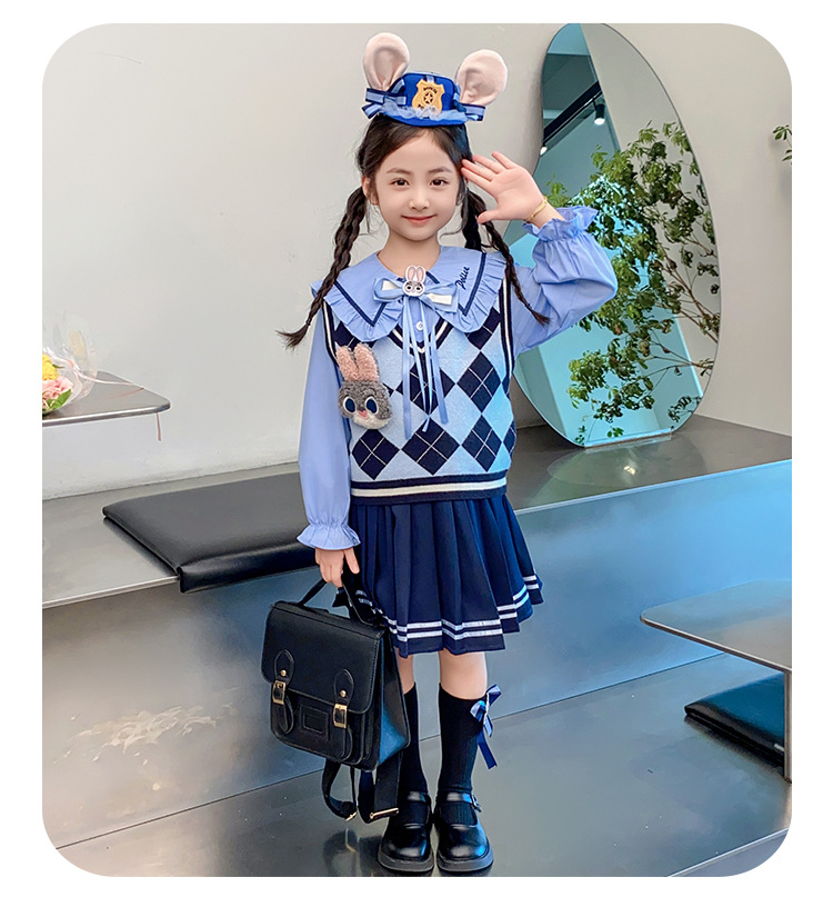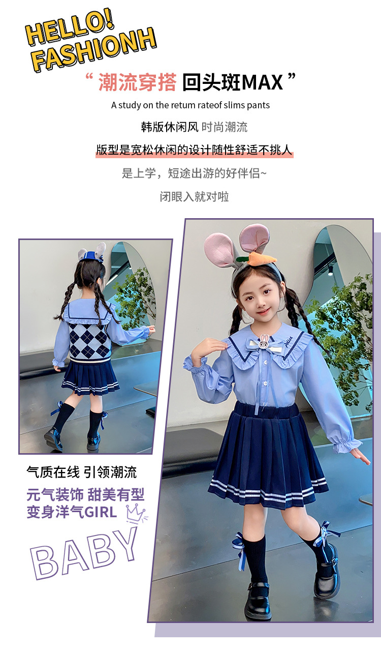 2026 봄 신상품 여아 니트 조끼 3종 세트 아동용 스타일리시 셔츠 플리츠 스커트 컬리지 스타일 정장 스커트스토어 가기