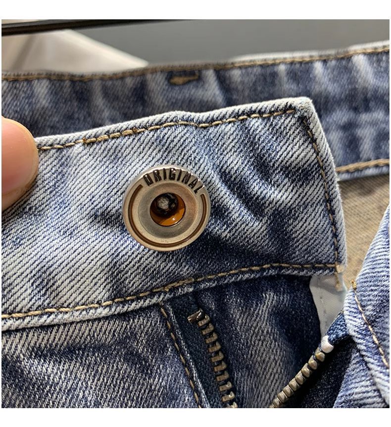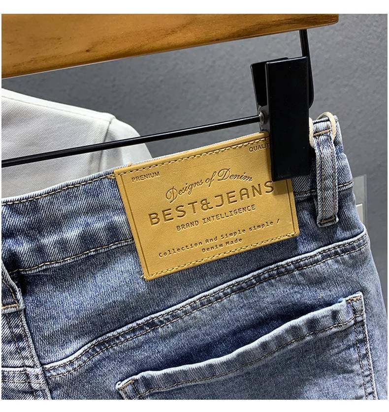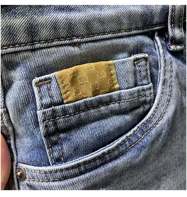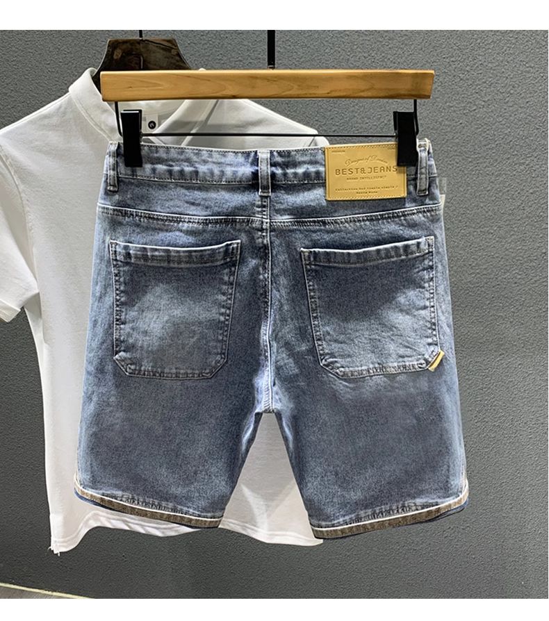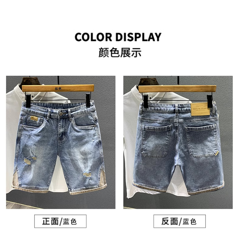 여름 얇은 빛 럭셔리 트렌디 브랜드 하이 엔드 레트로 거지의 찢어진 데님 반바지 남자 스티칭 중간 길이 바지 스트레치 바지스토어 가기