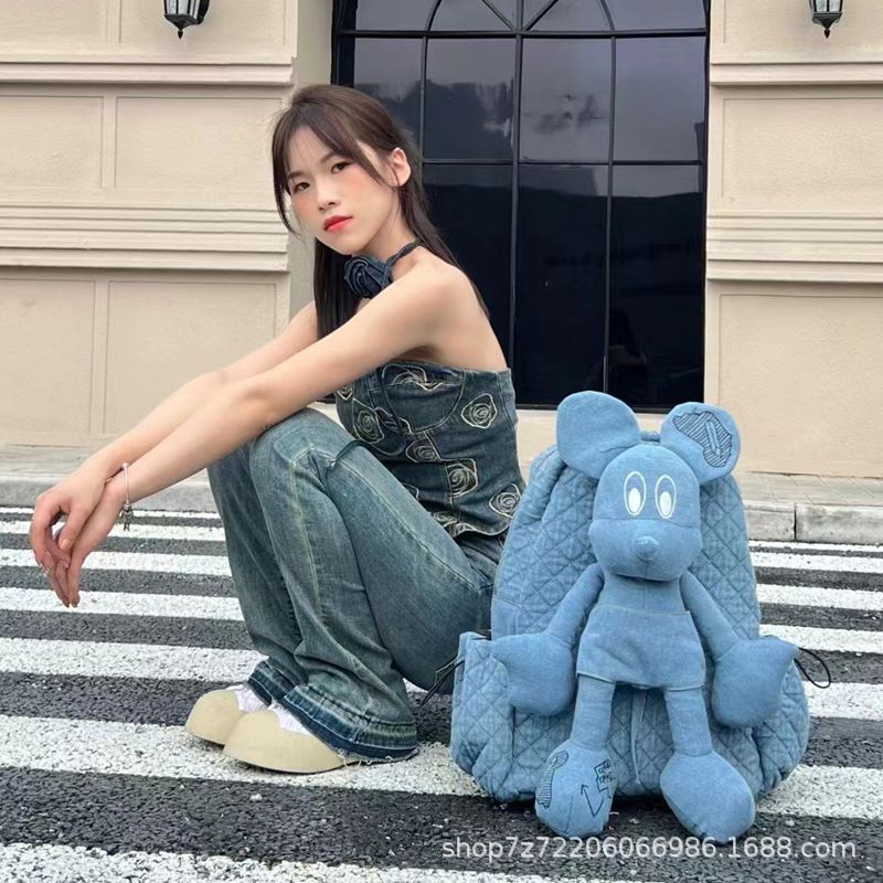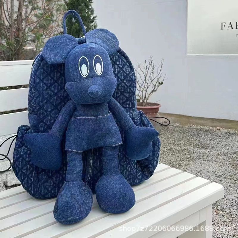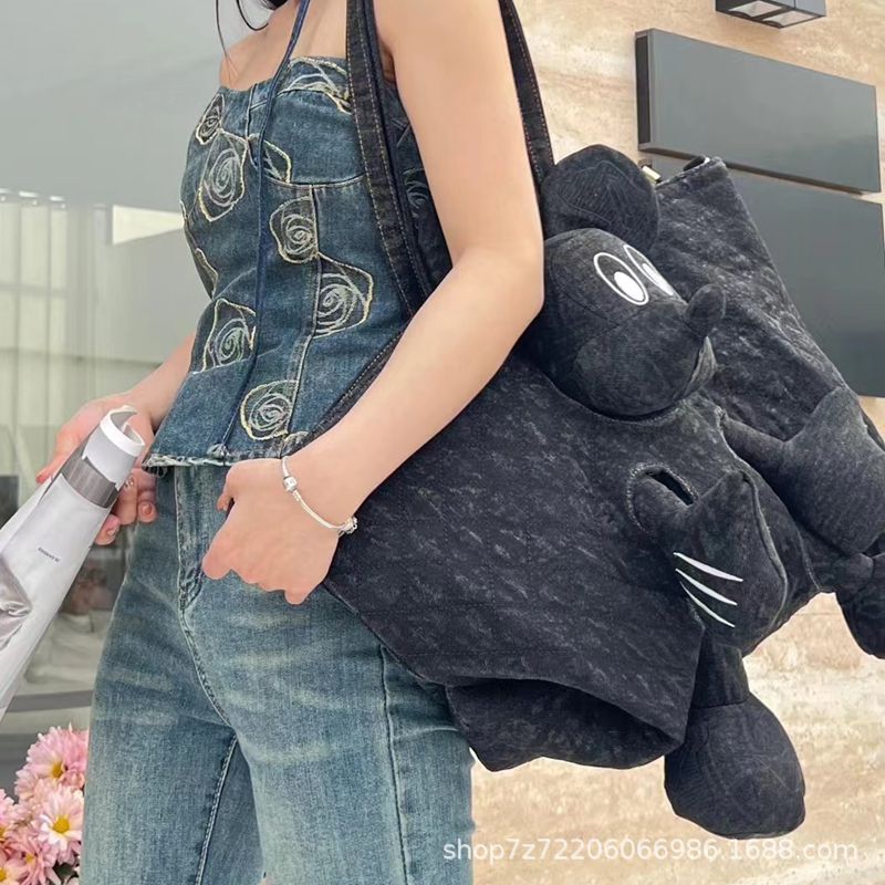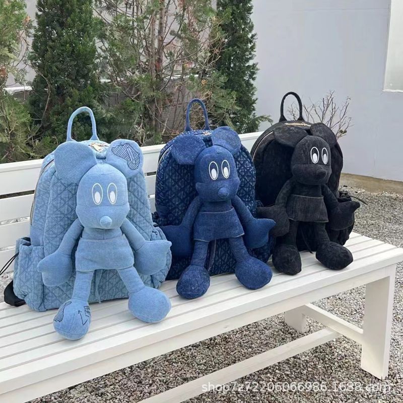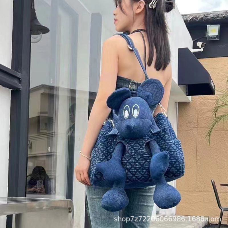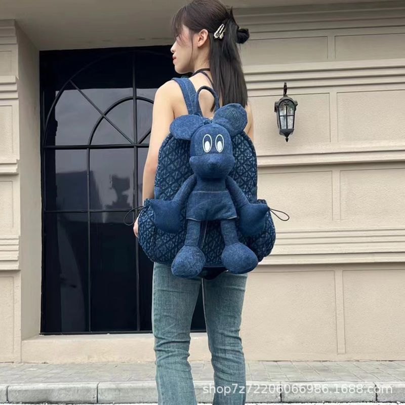 패션 캐주얼 여성 배낭 맞춤형 데님 미키 피겨 가방 유행 어깨 크로스 바디 가방 핸드백스토어 가기