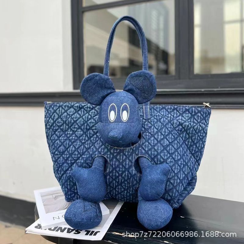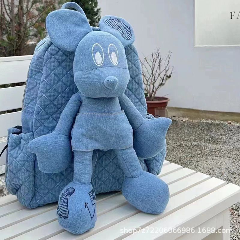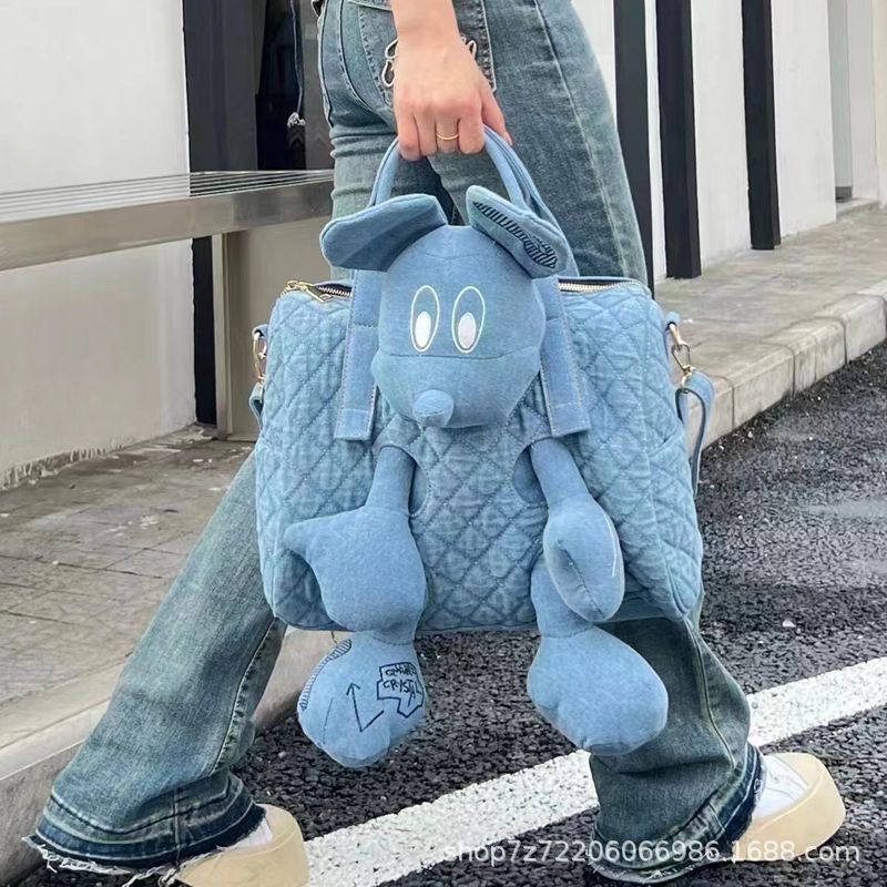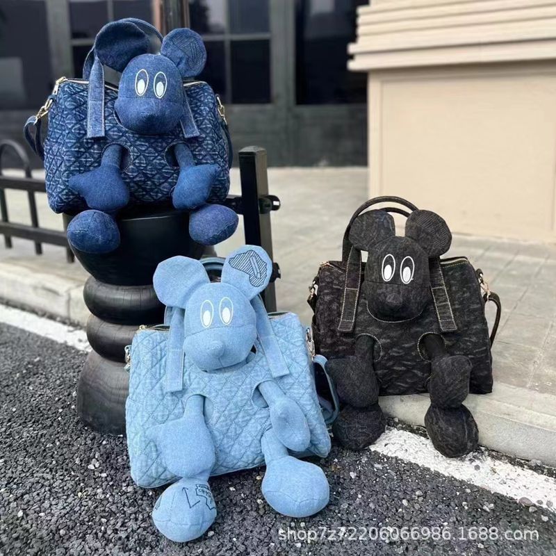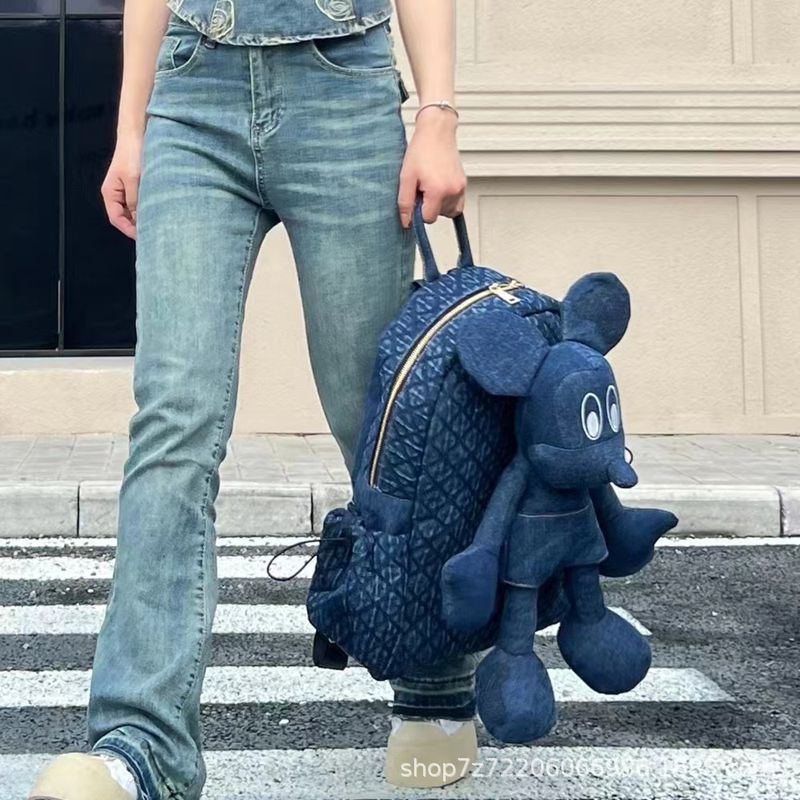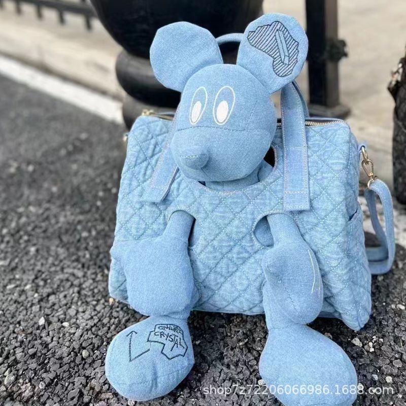 패션 캐주얼 여성 배낭 맞춤형 데님 미키 피겨 가방 유행 어깨 크로스 바디 가방 핸드백