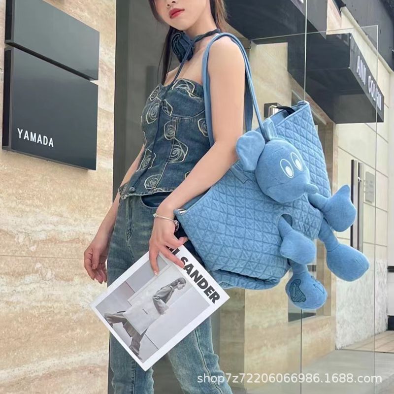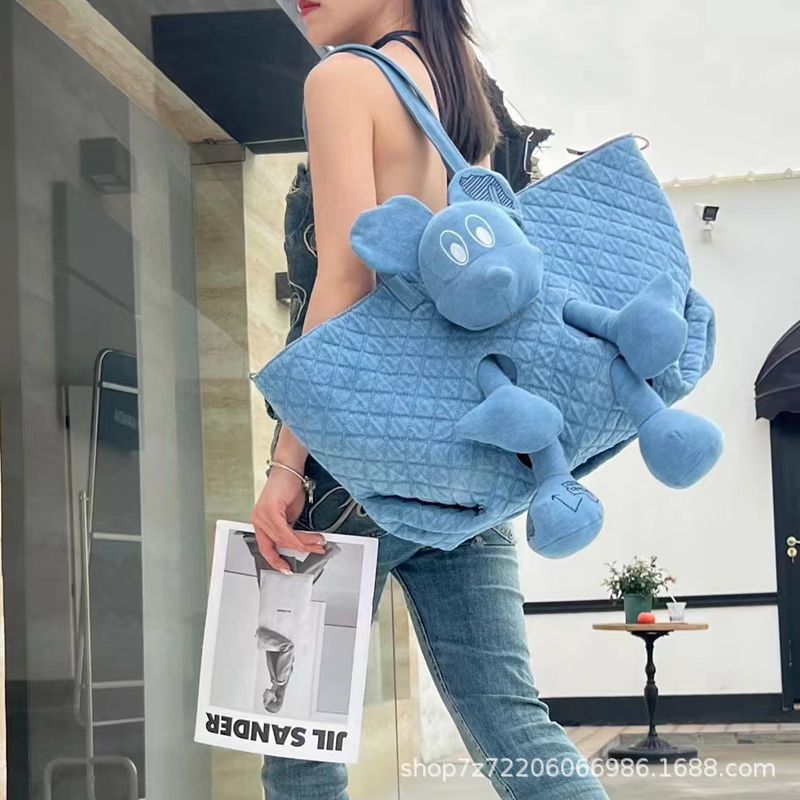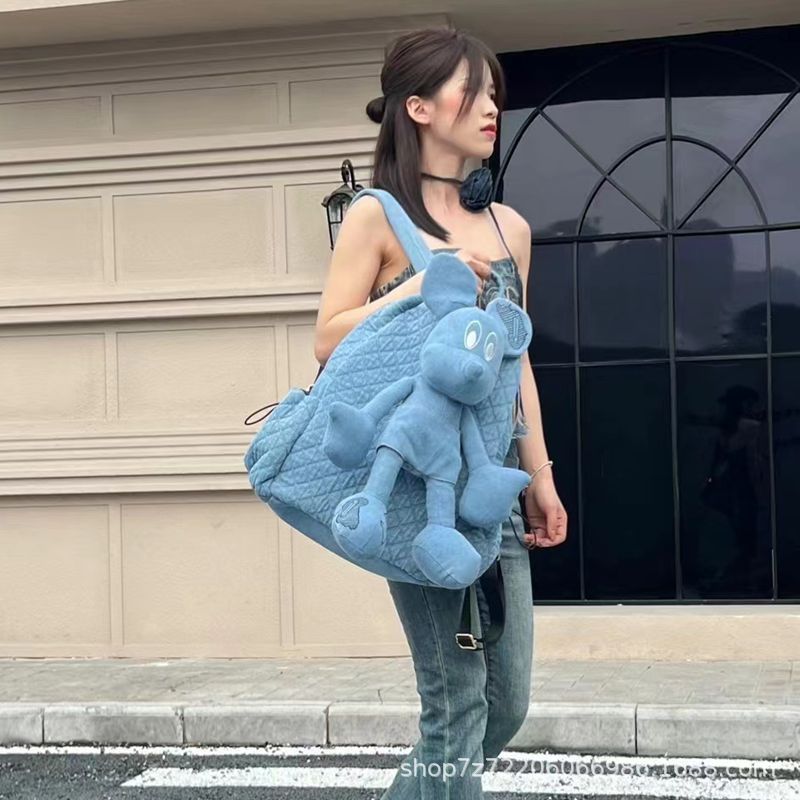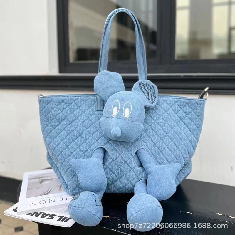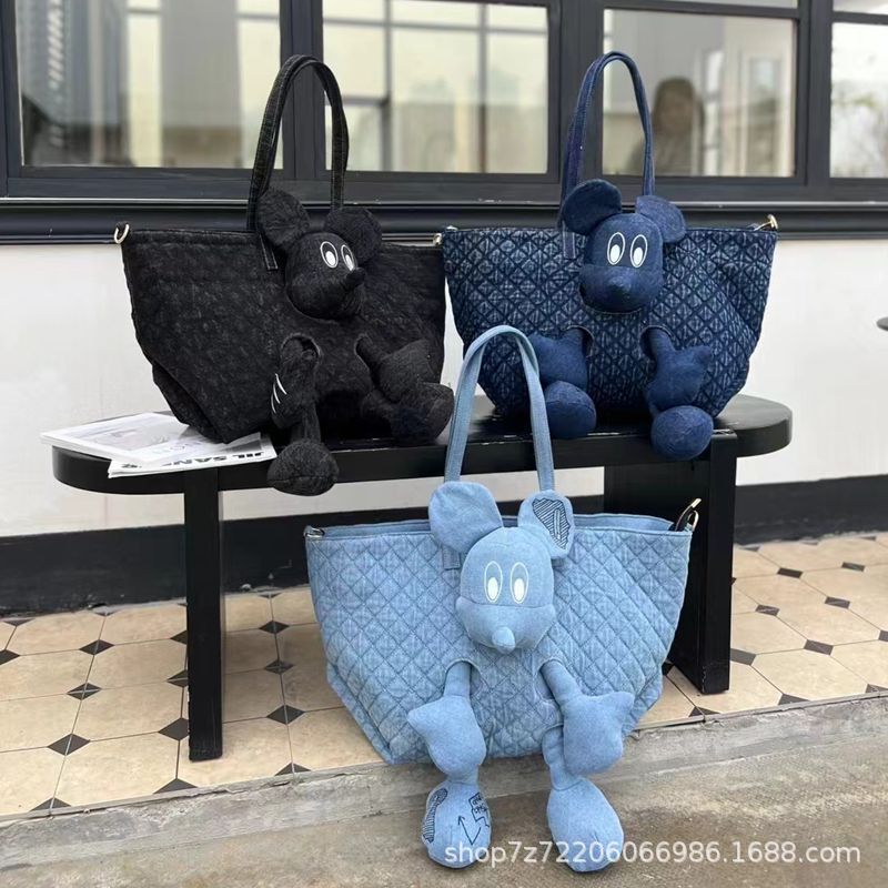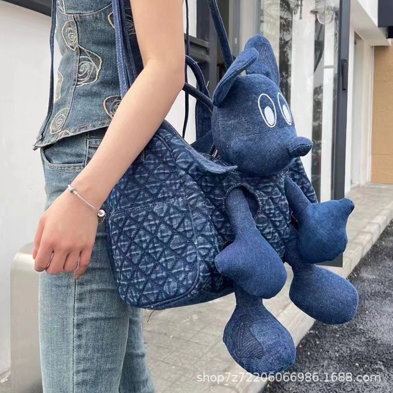 패션 캐주얼 여성 배낭 맞춤형 데님 미키 피겨 가방 유행 어깨 크로스 바디 가방 핸드백