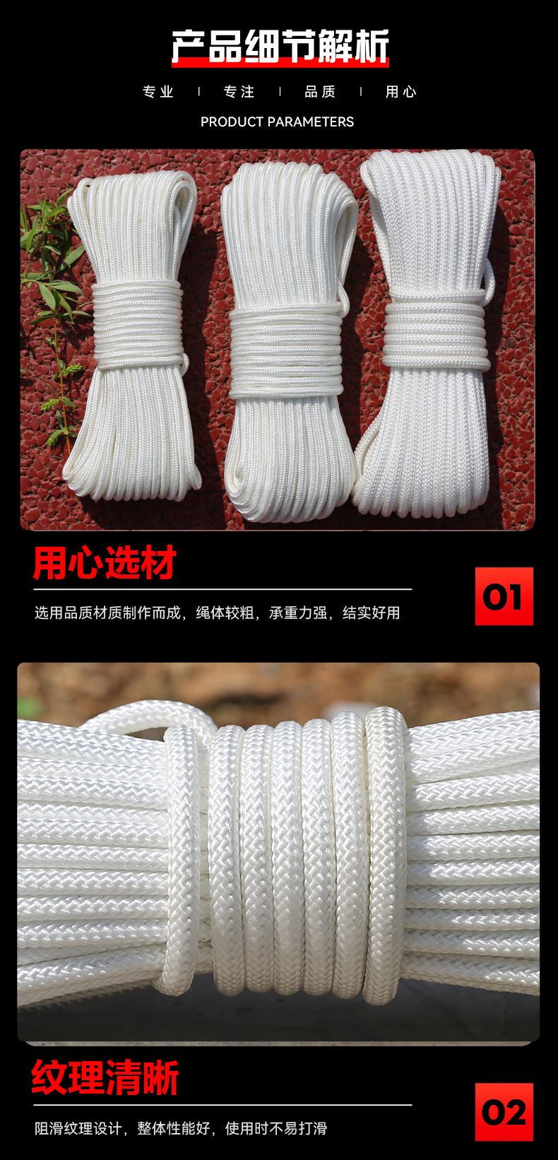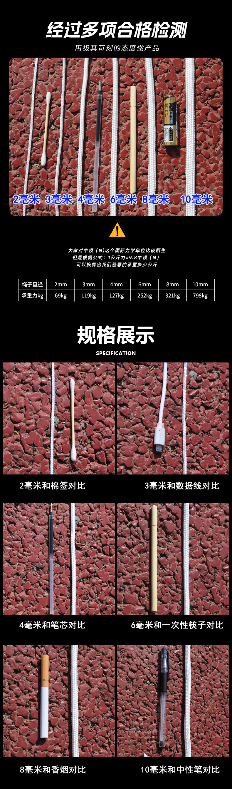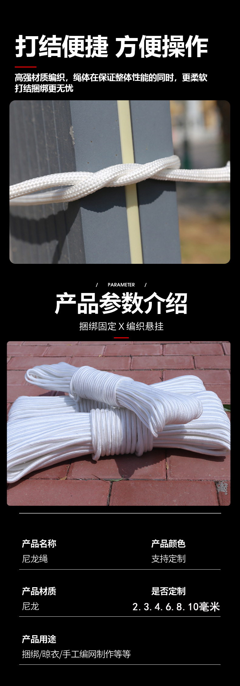 공장 도매 나일론 로프 옷 바인딩 로프 드로 스트링 화이트 코어 꼰 로프 야외 텐트 차양 돛 드로 스트링