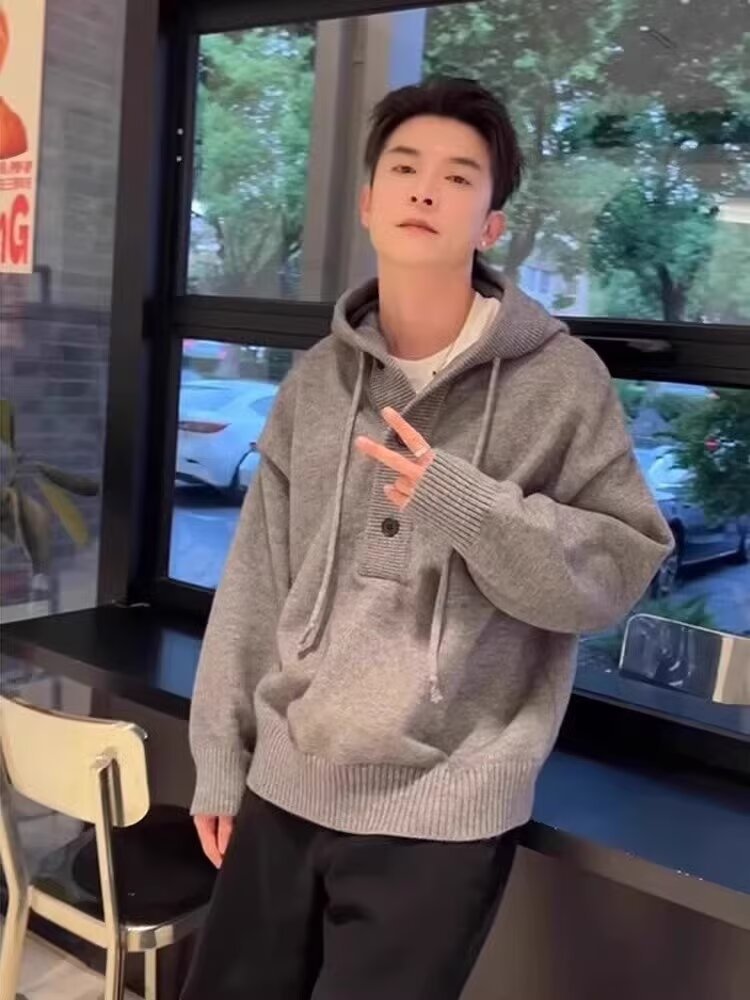 남성용 후드 풀오버 탑 2024 가을 겨울 새로운 다목적 니트 스웨터 재킷 맞춤형 탑 트렌디스토어 가기