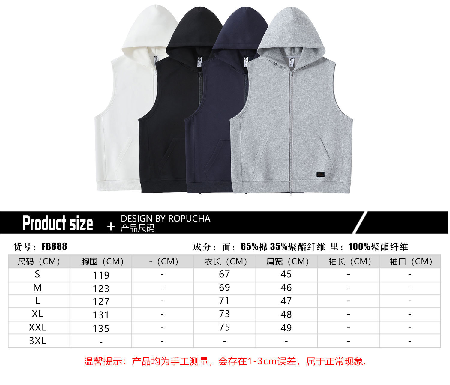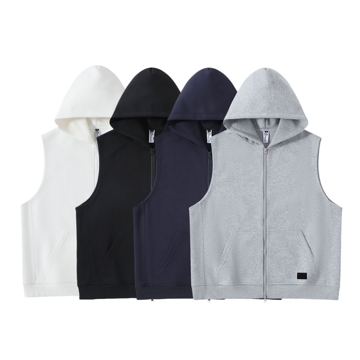 RUIIENRS x Ropucha 2024 가을 단색 420g 후드 캐주얼 조끼 남성 라벨 조끼 FB888스토어 가기