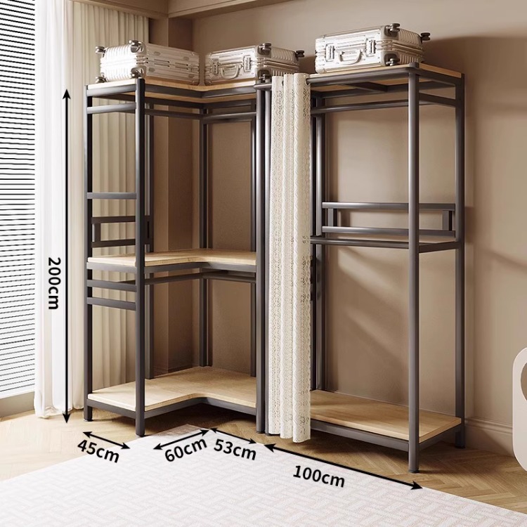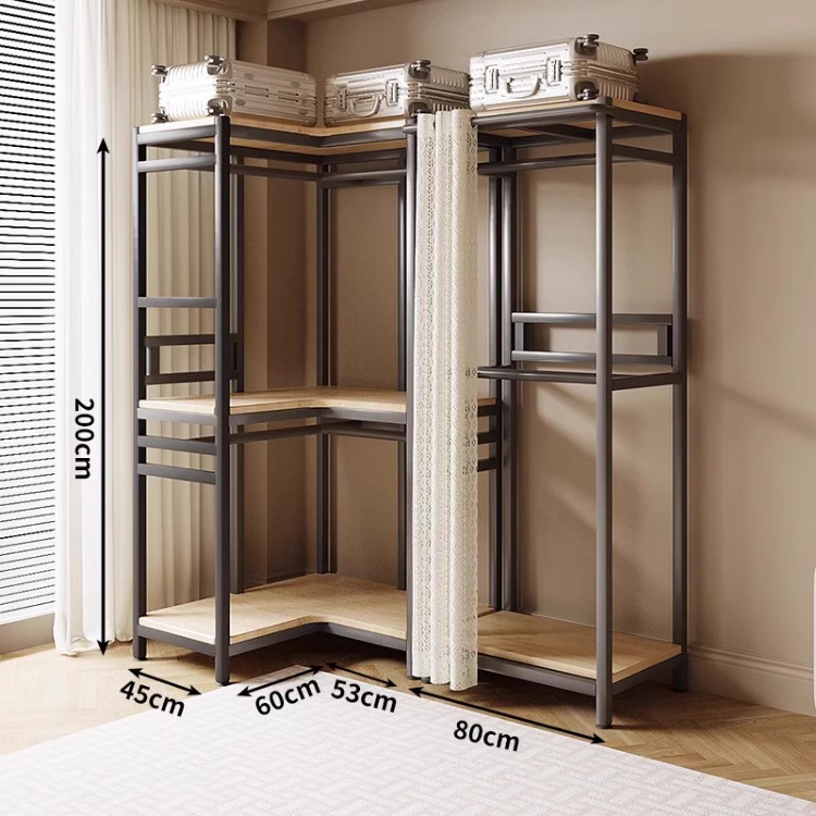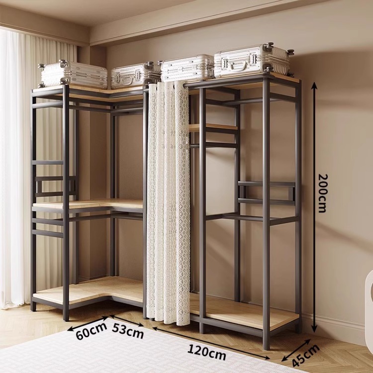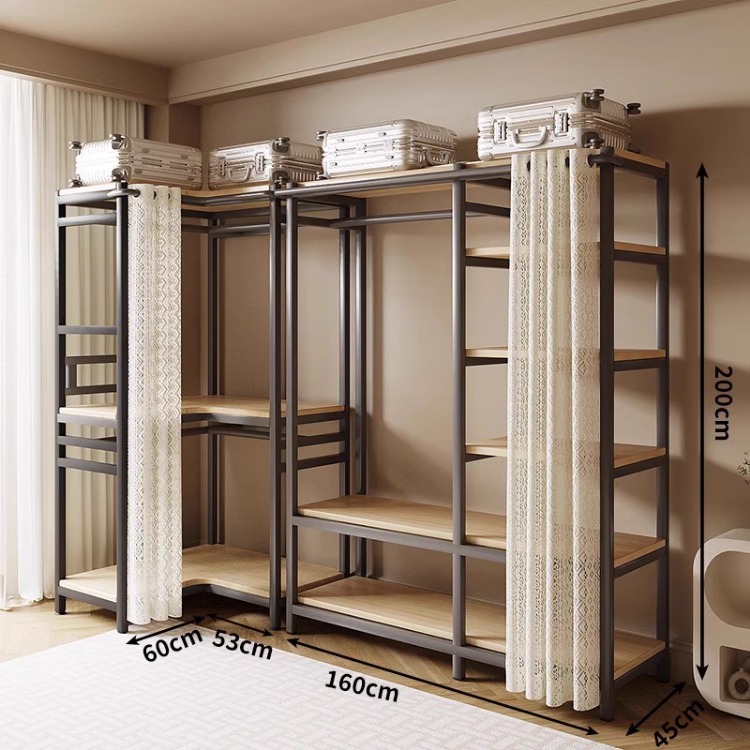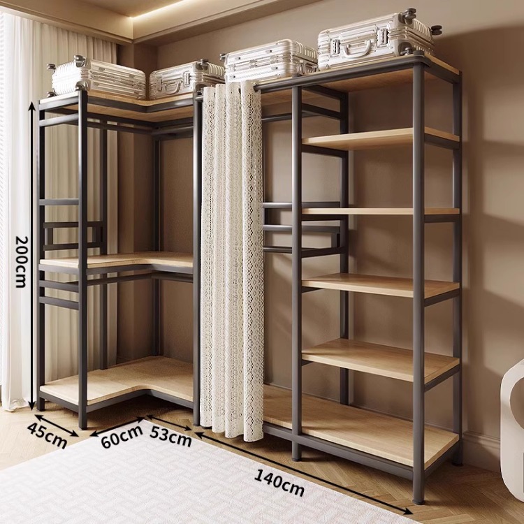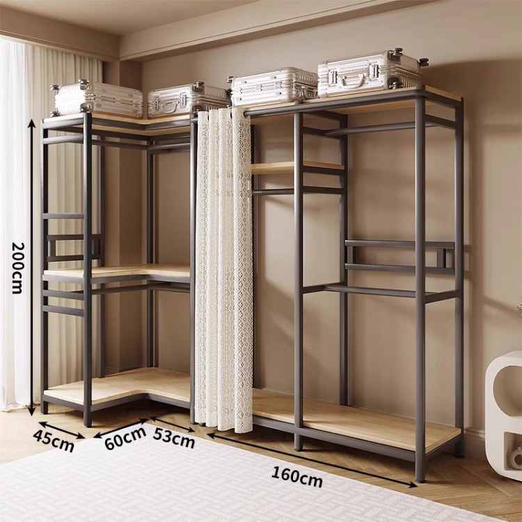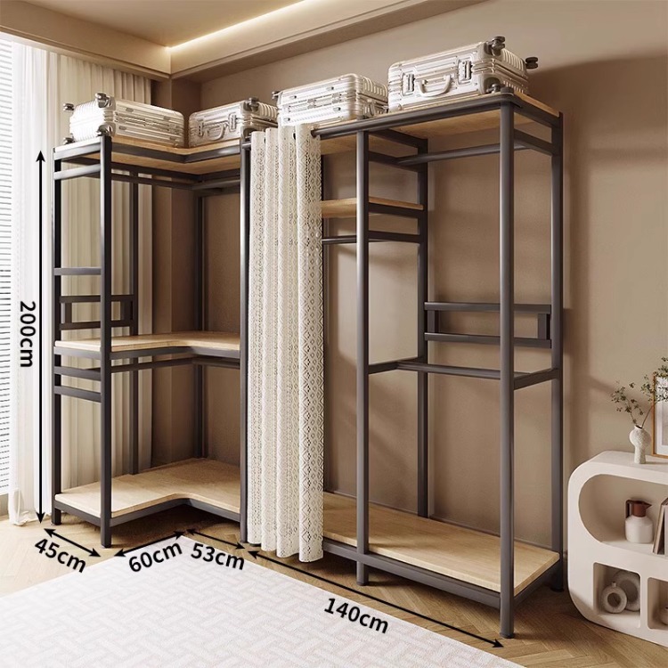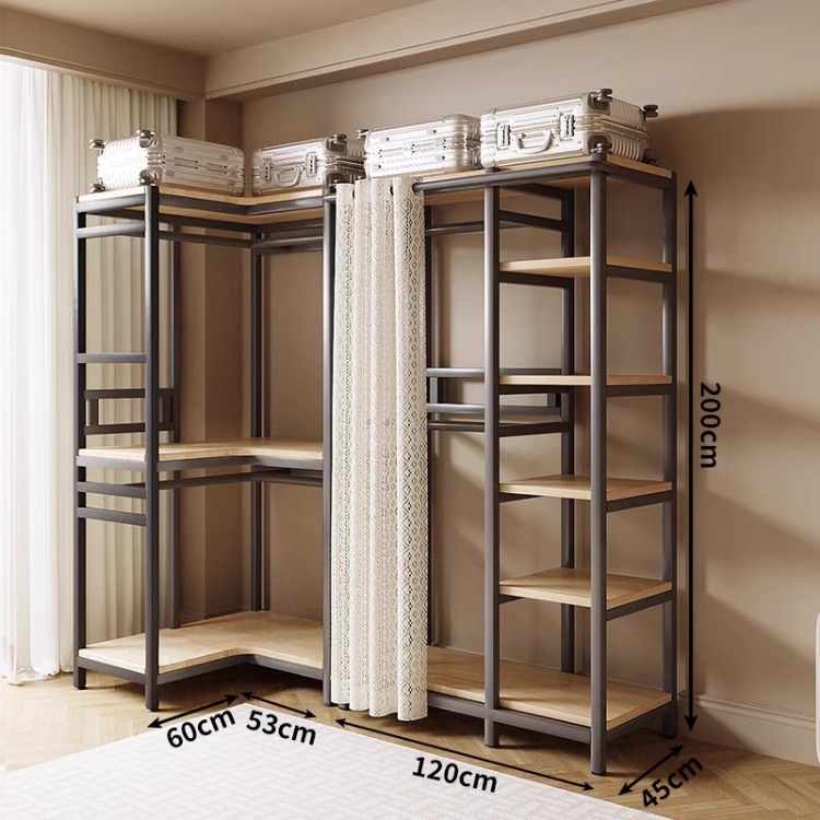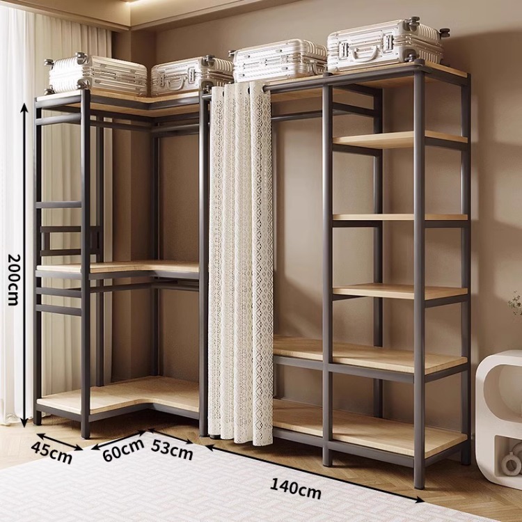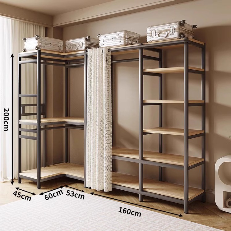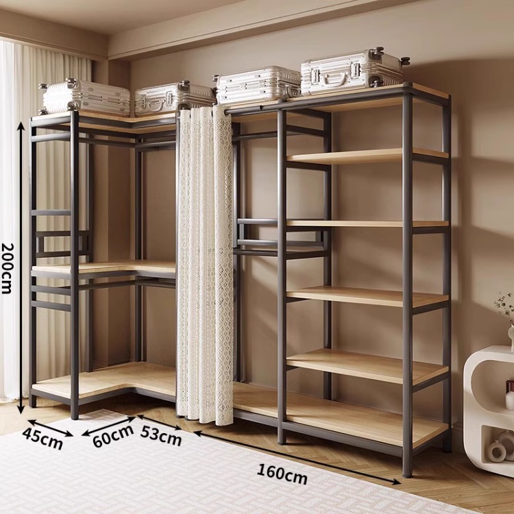 • 커튼리스 코너 캐비닛 + 거즈 커튼 B형 스태킹 공간 + 이중 걸이 의류 - 160cm